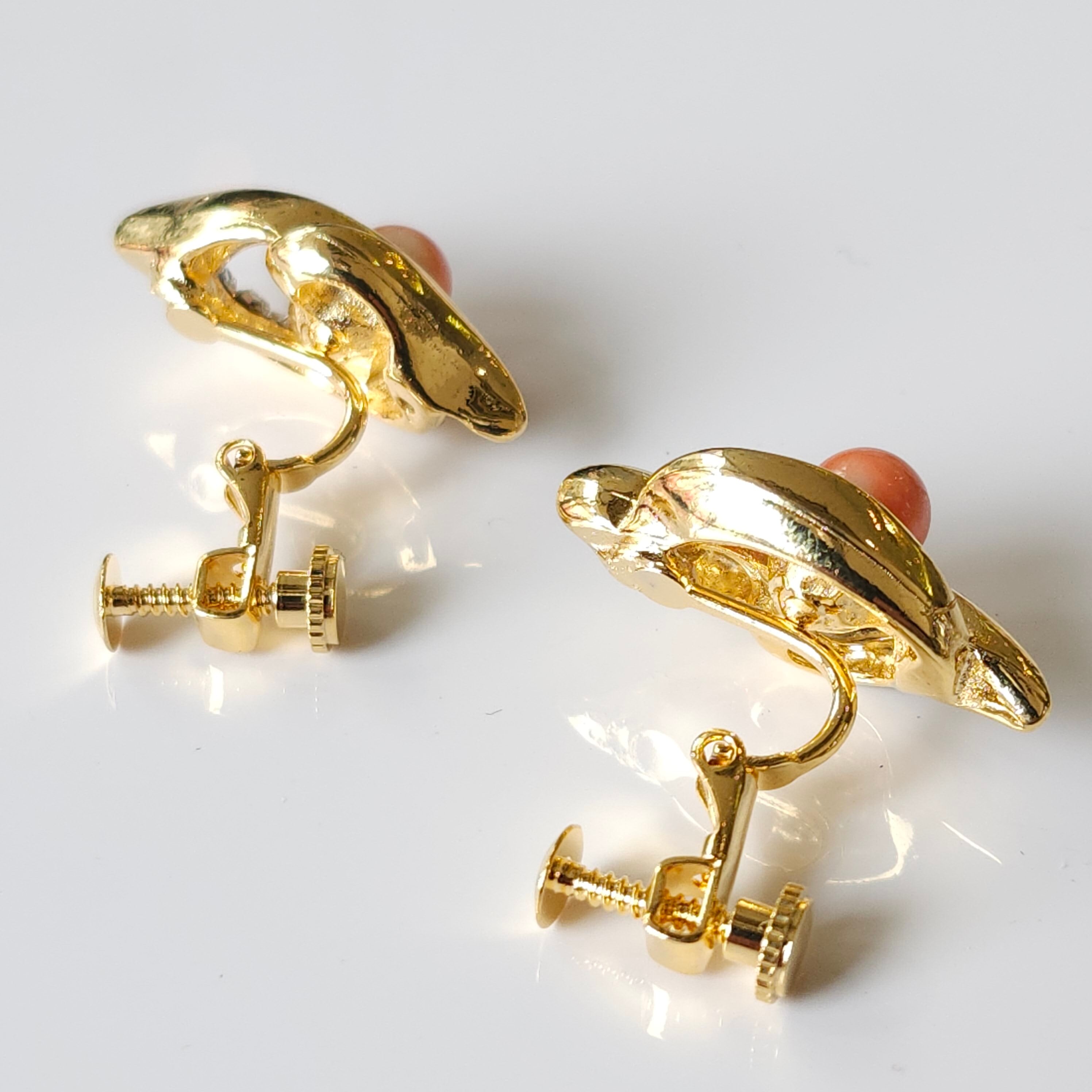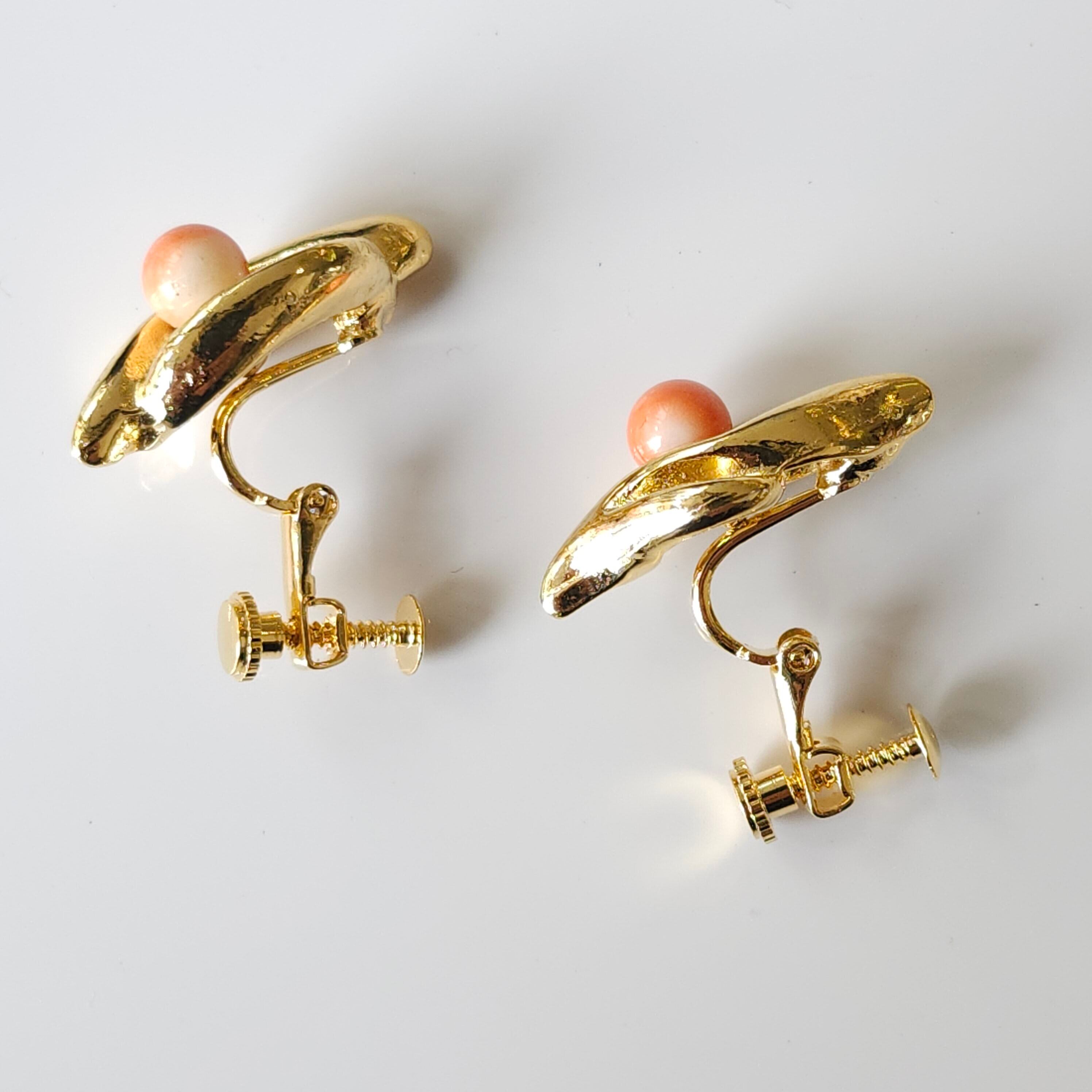 深海珊瑚の玉を配したイヤリングです。