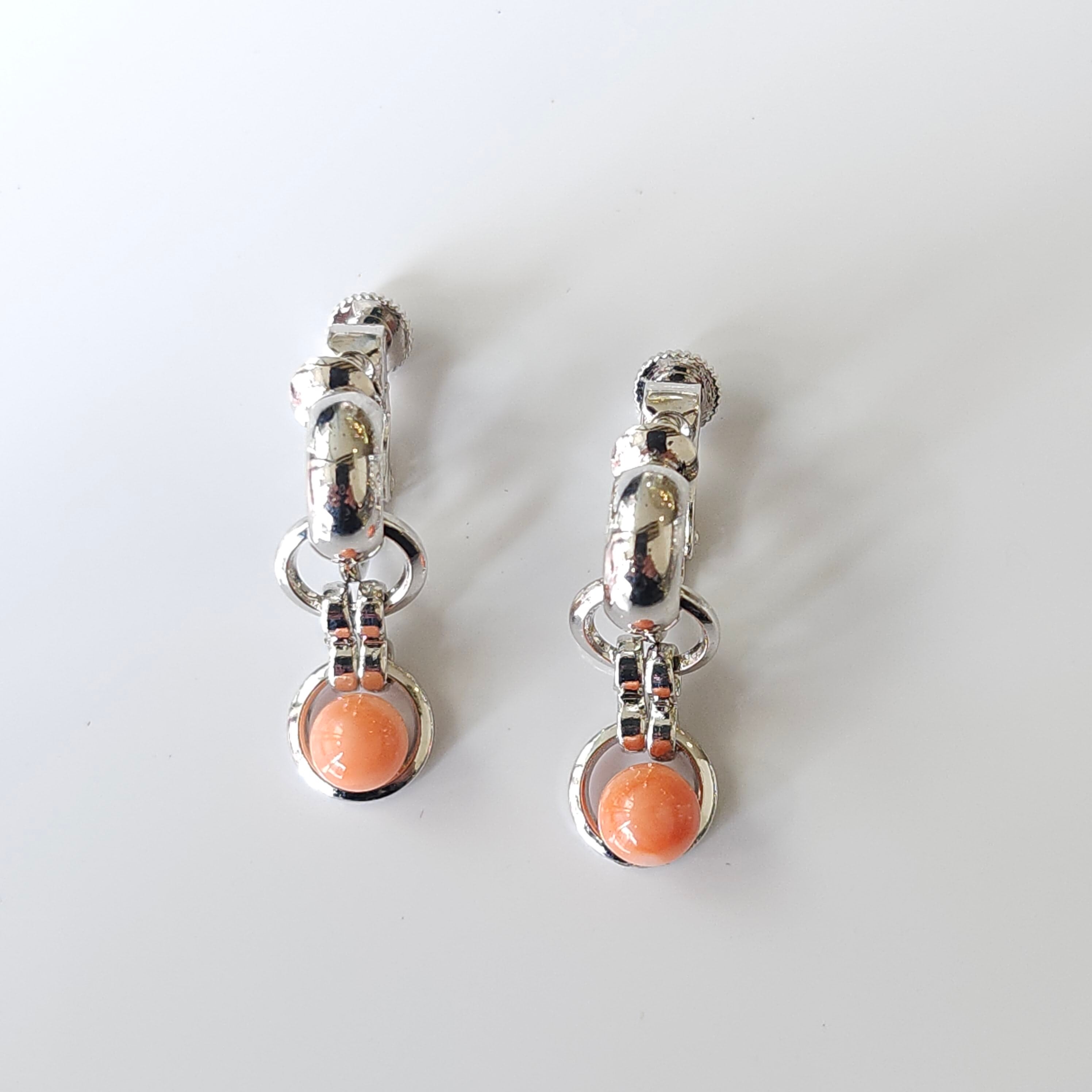 深海珊瑚の玉を配したイヤリングです。