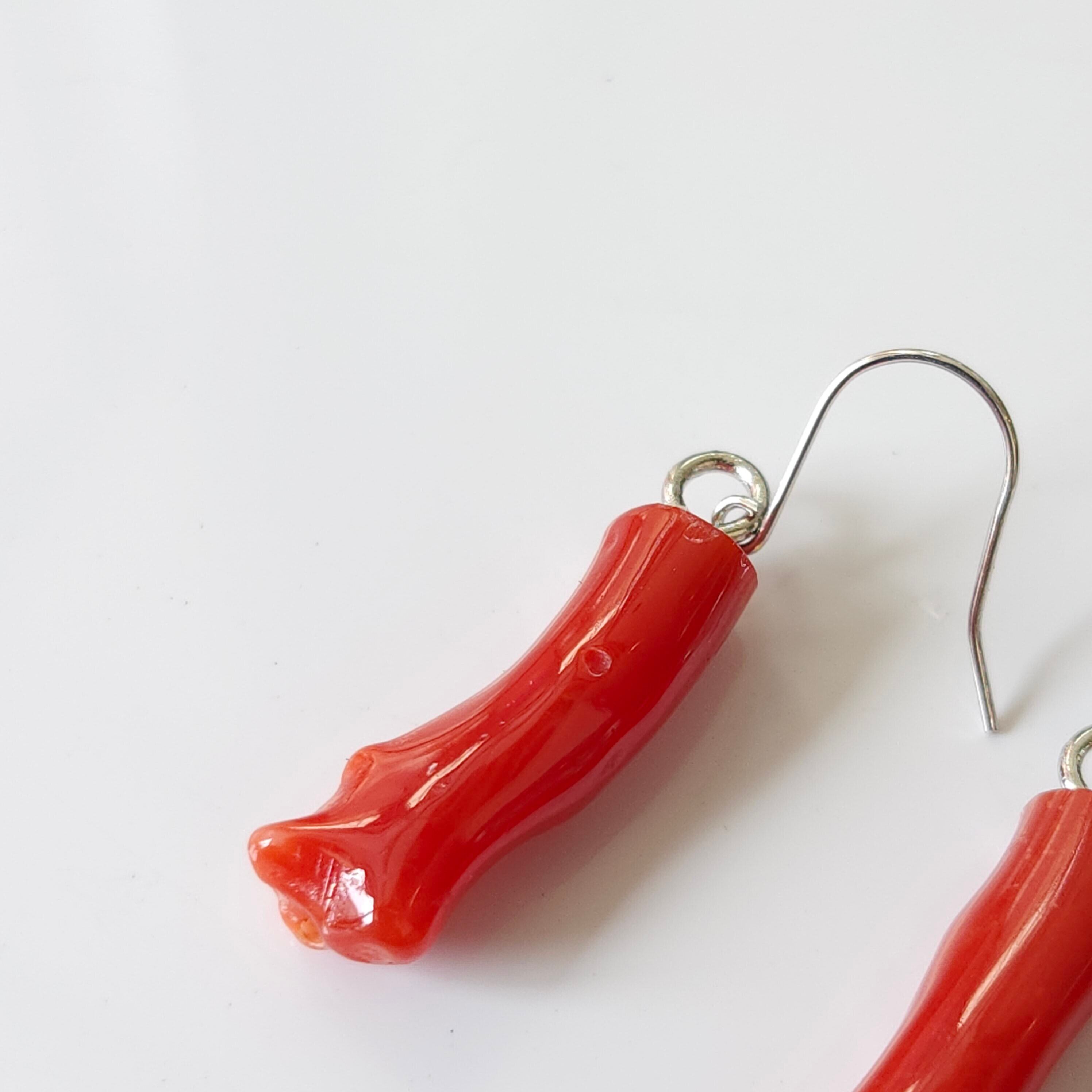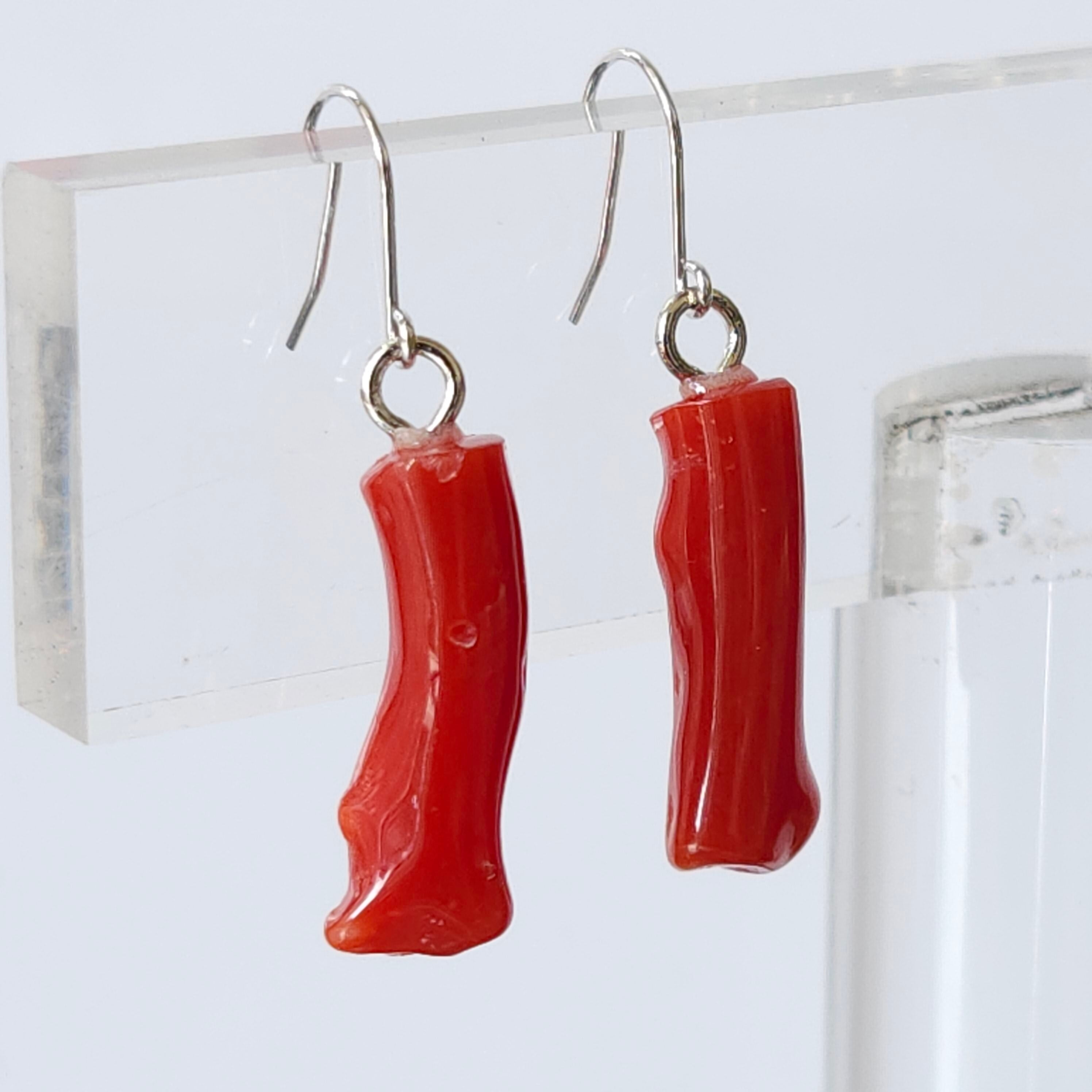 赤珊瑚枝の形を活かし製作したこのピアスは