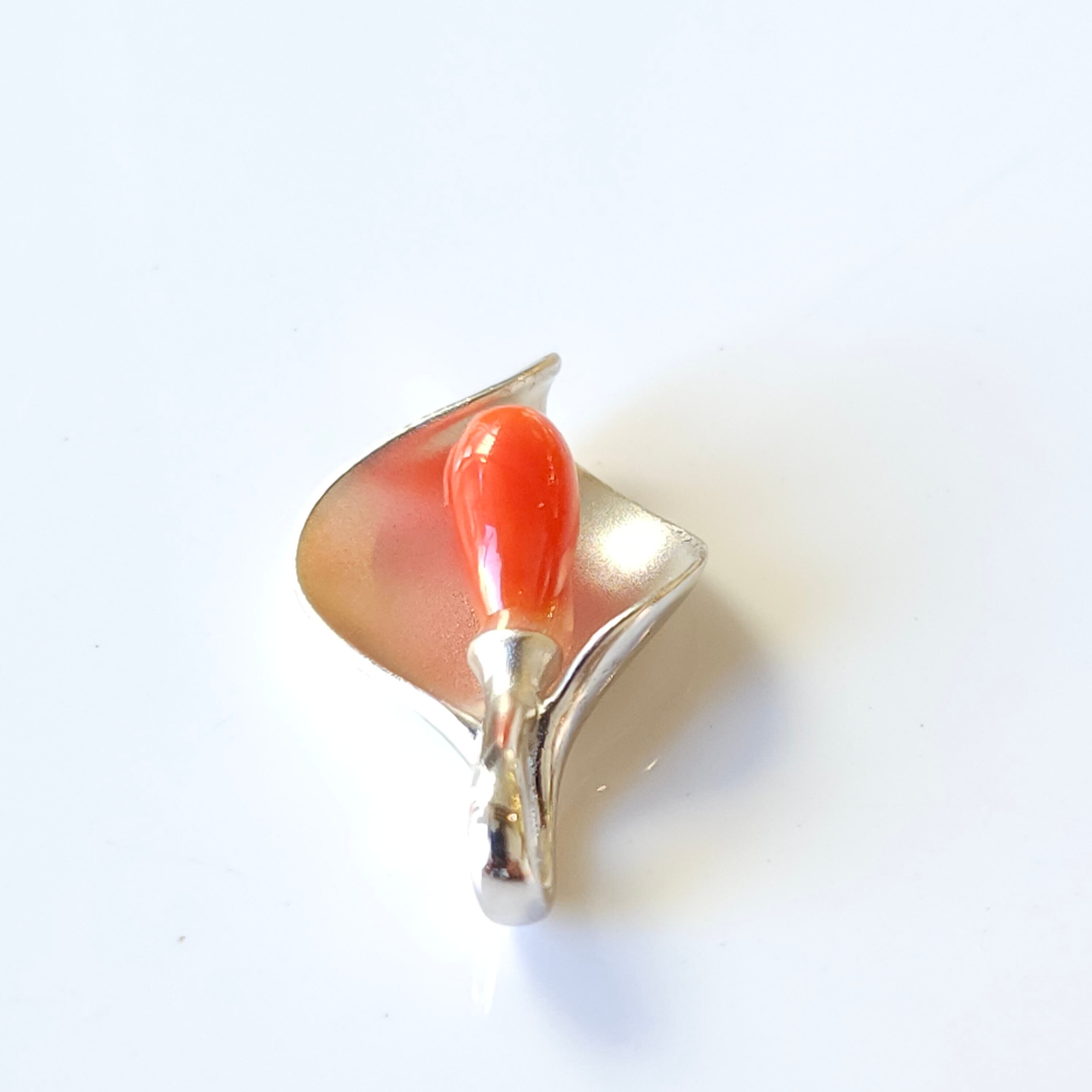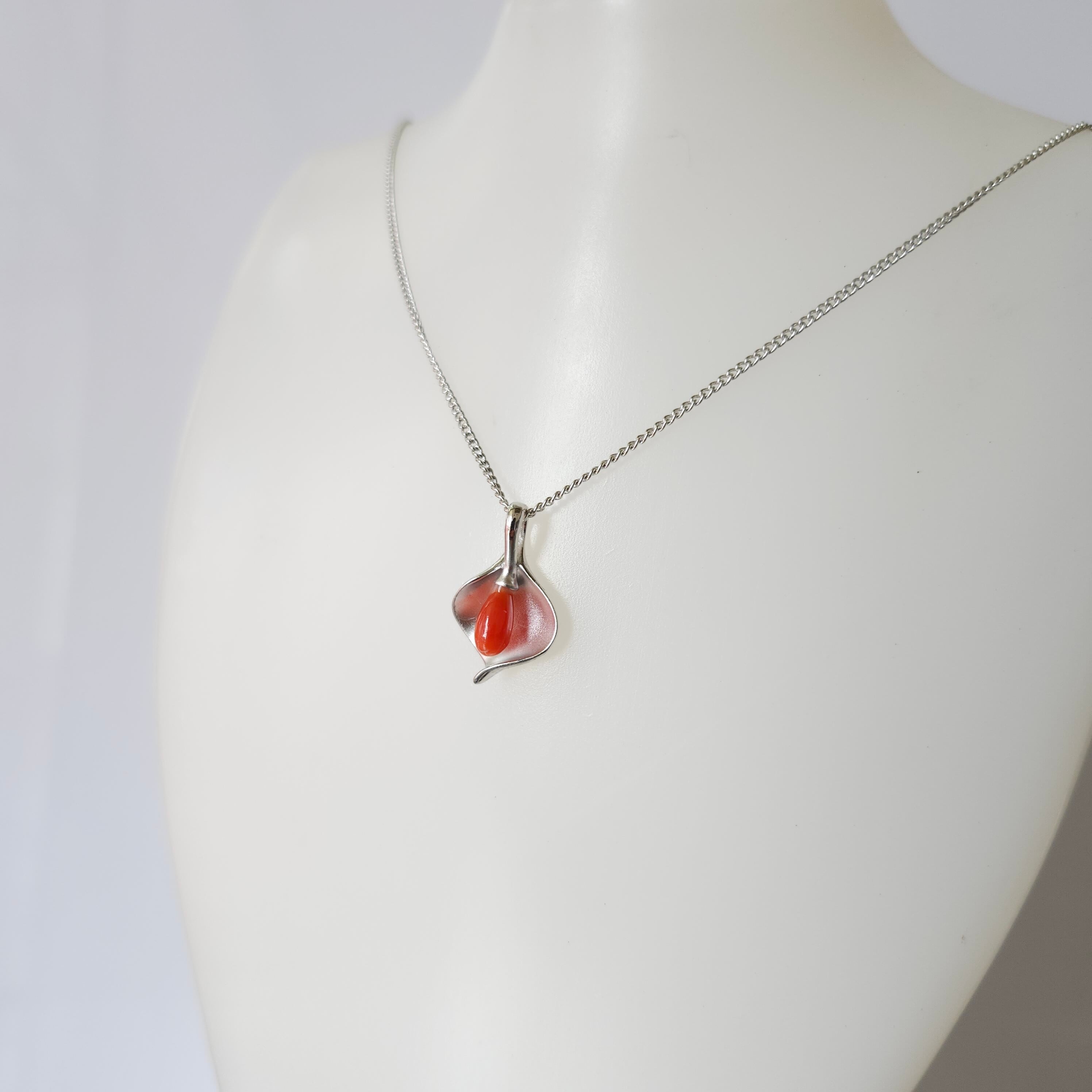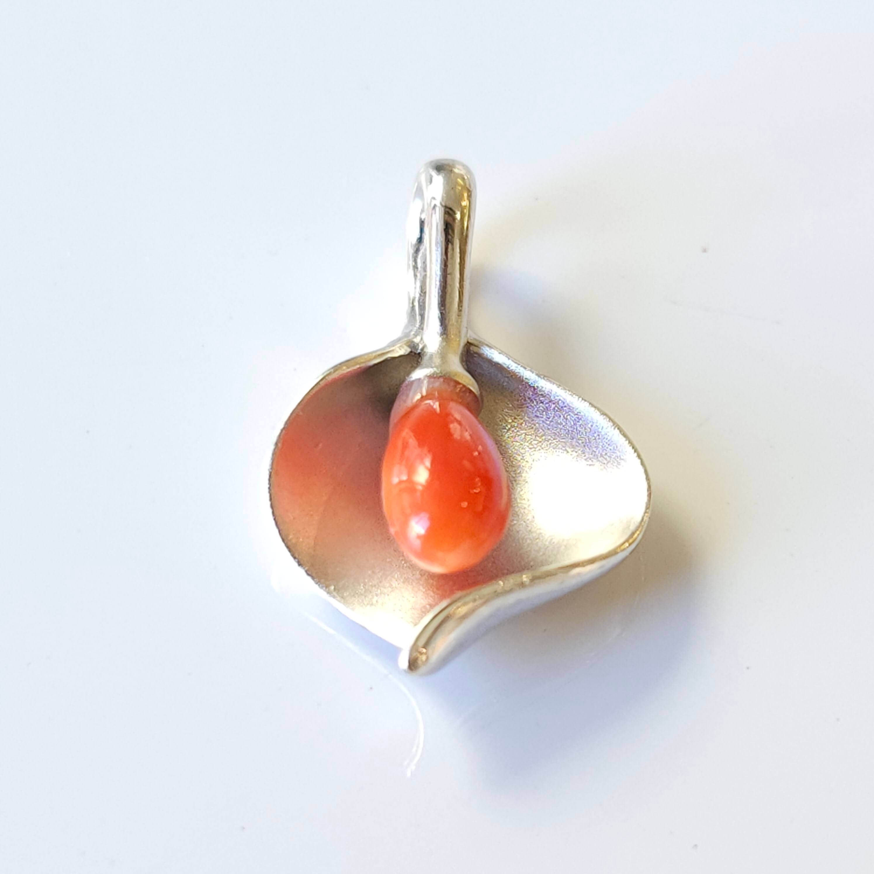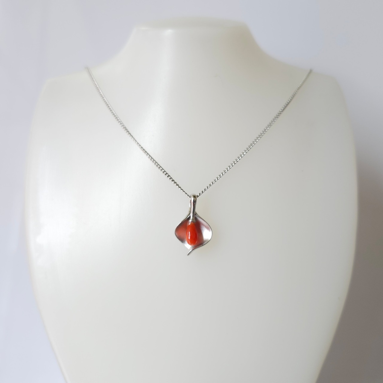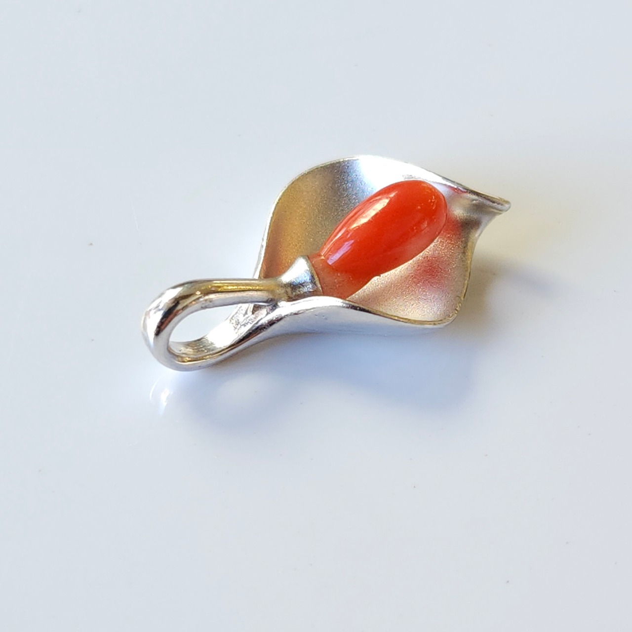 珊瑚の綺麗な赤をシルバーの金具が更に美しく引き立てているペンダントです。