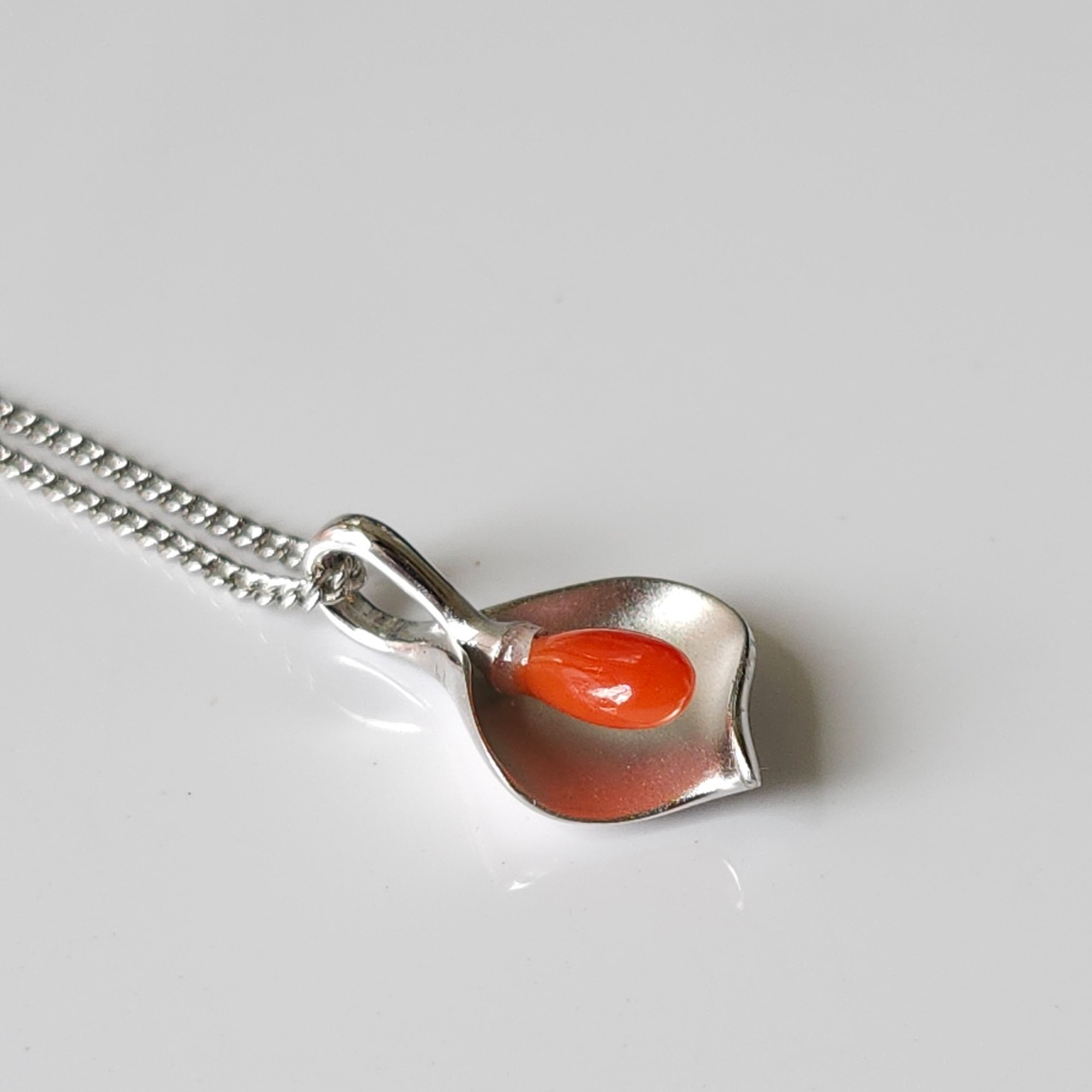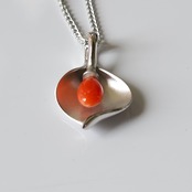珊瑚の綺麗な赤をシルバーの金具が更に美しく引き立てているペンダントです。