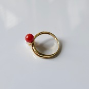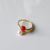 赤珊瑚玉とパールの指輪(K18) 002 【商品紹介動画が商品説明からご覧いただけます】