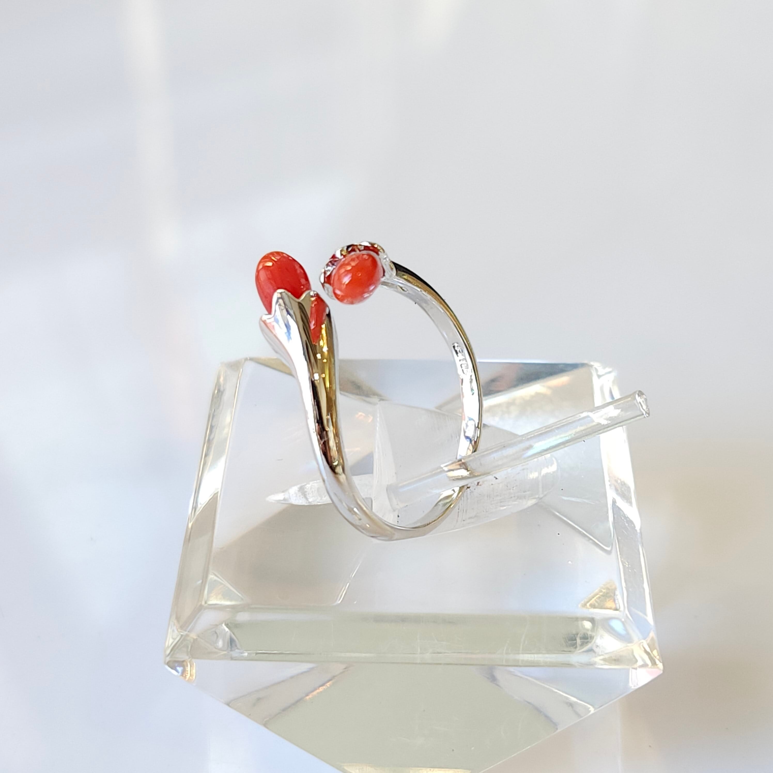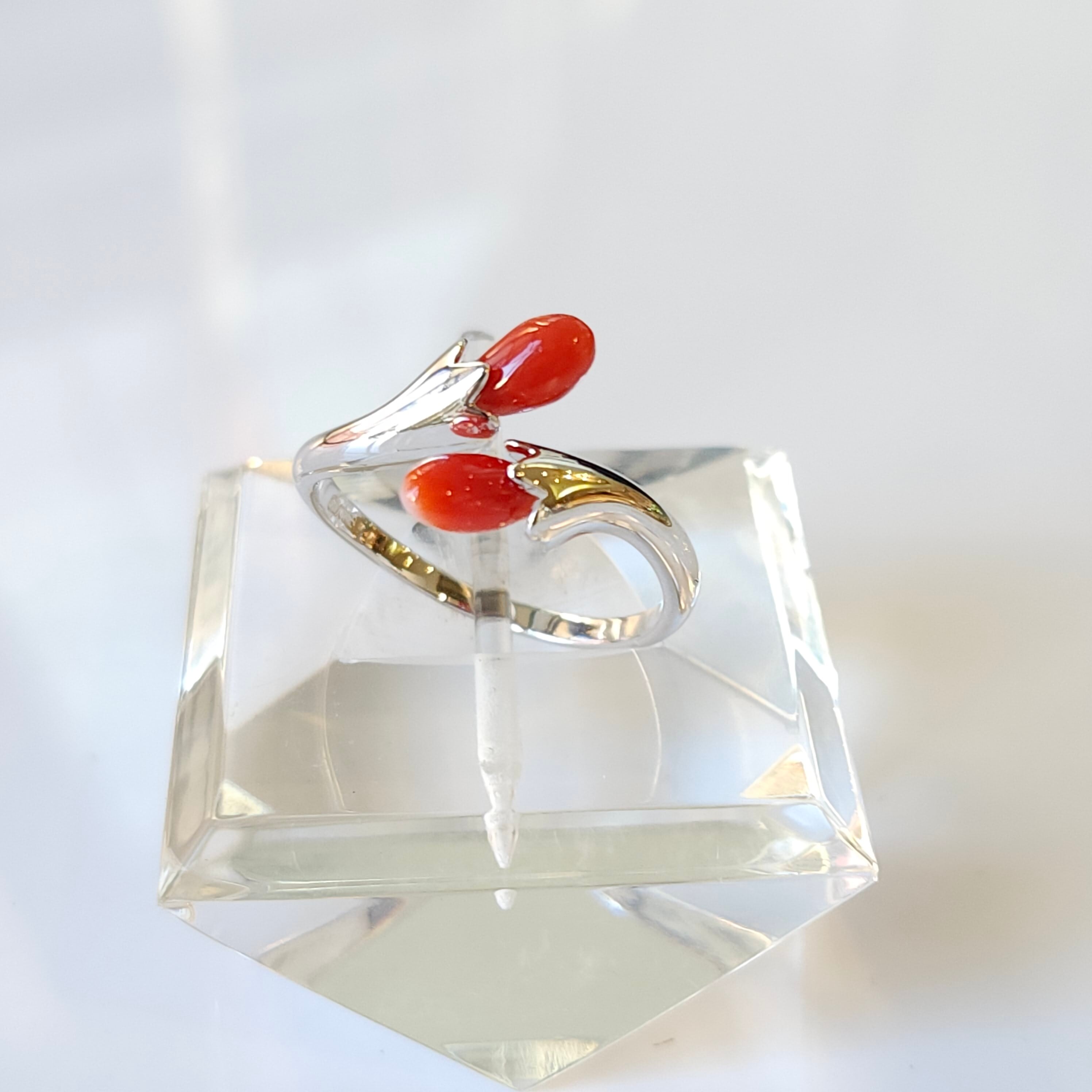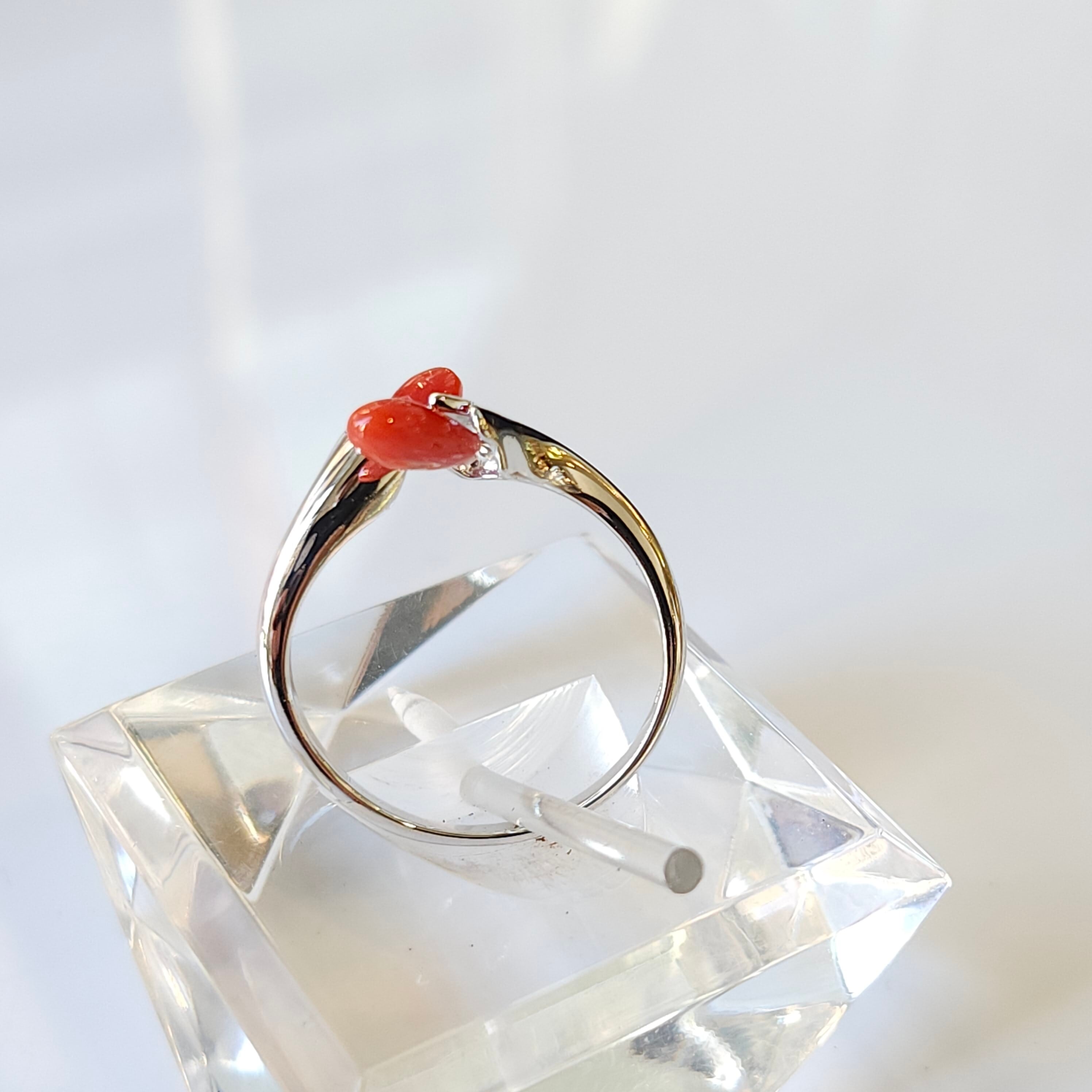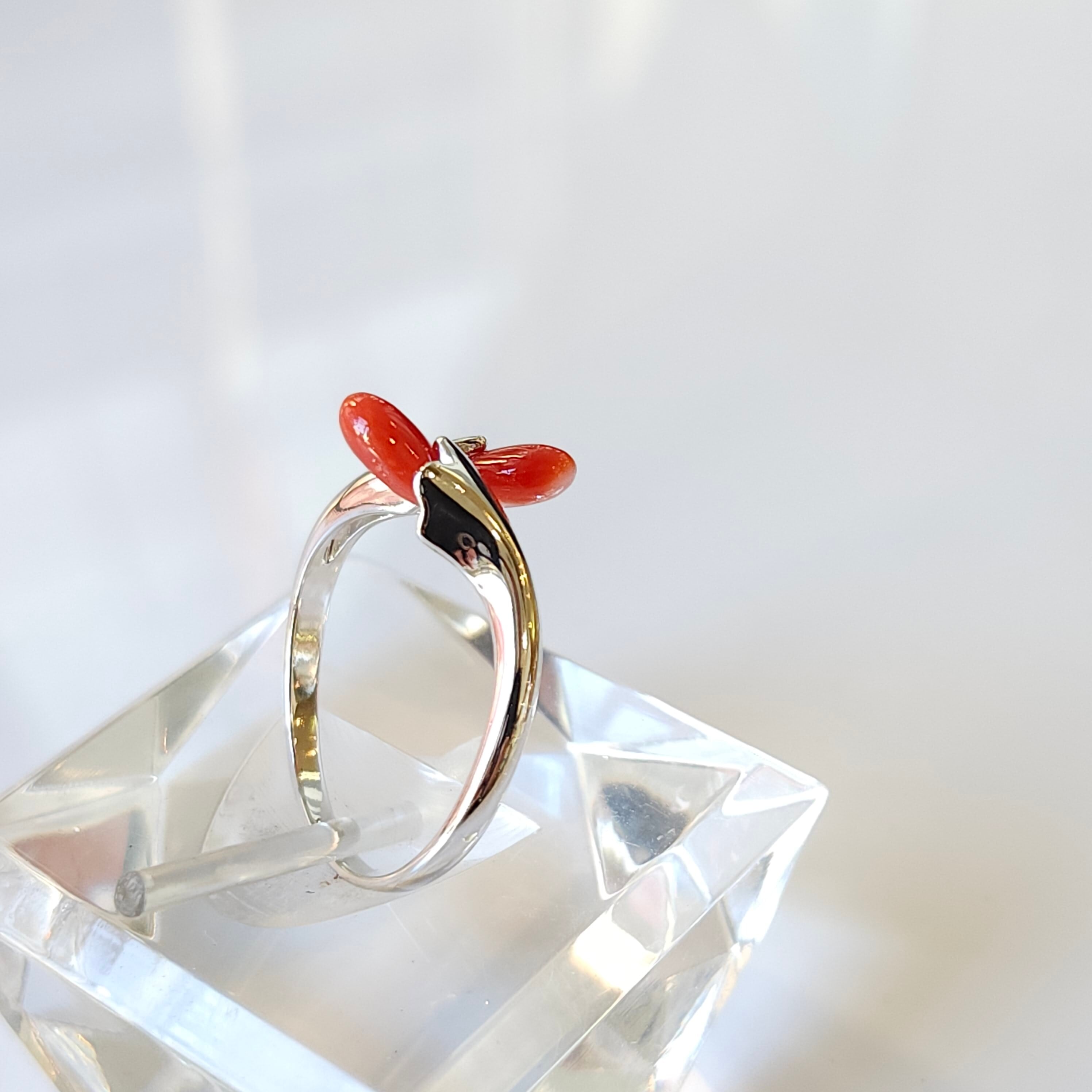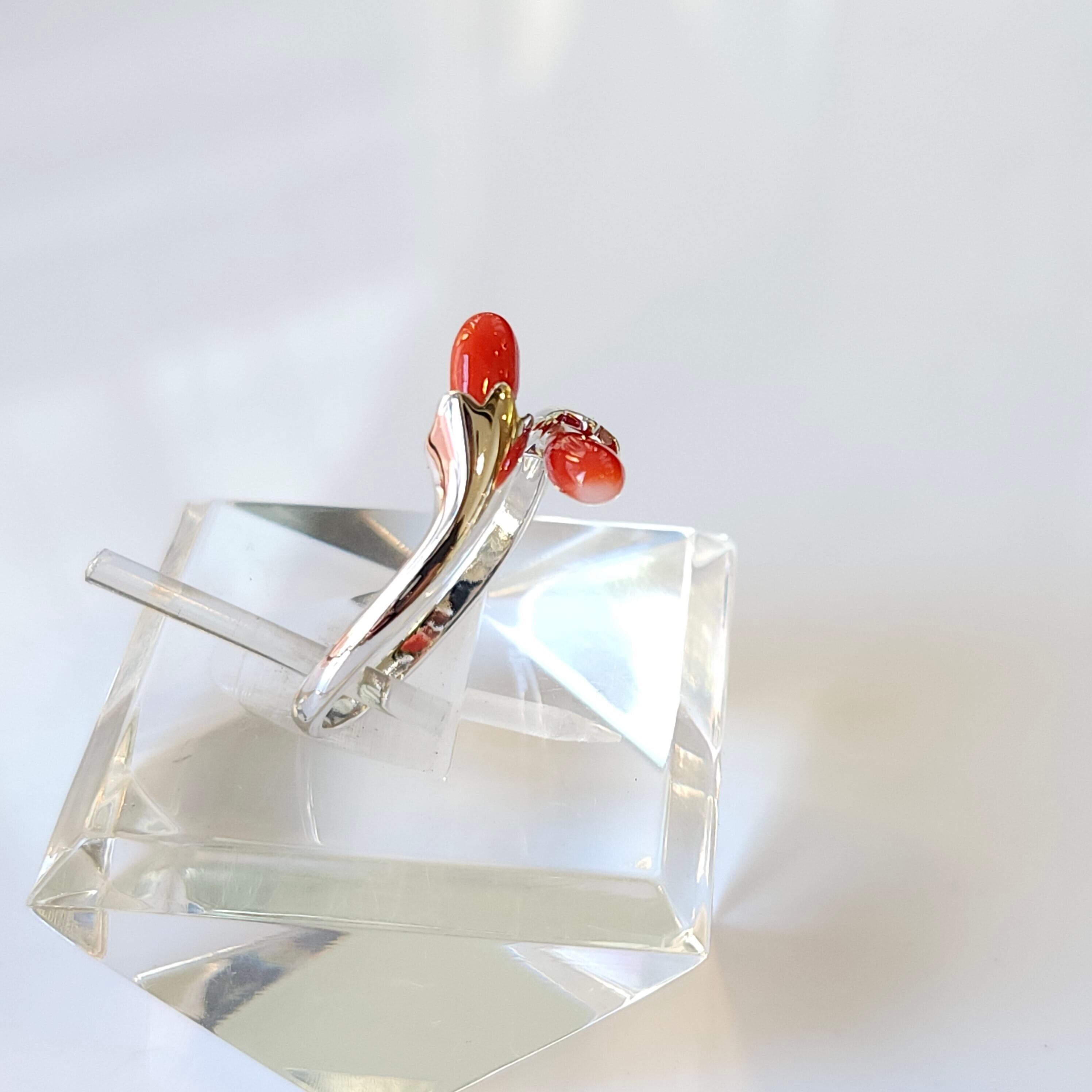 綺麗な色合いの赤珊瑚が目を惹くフリーサイズリングです。