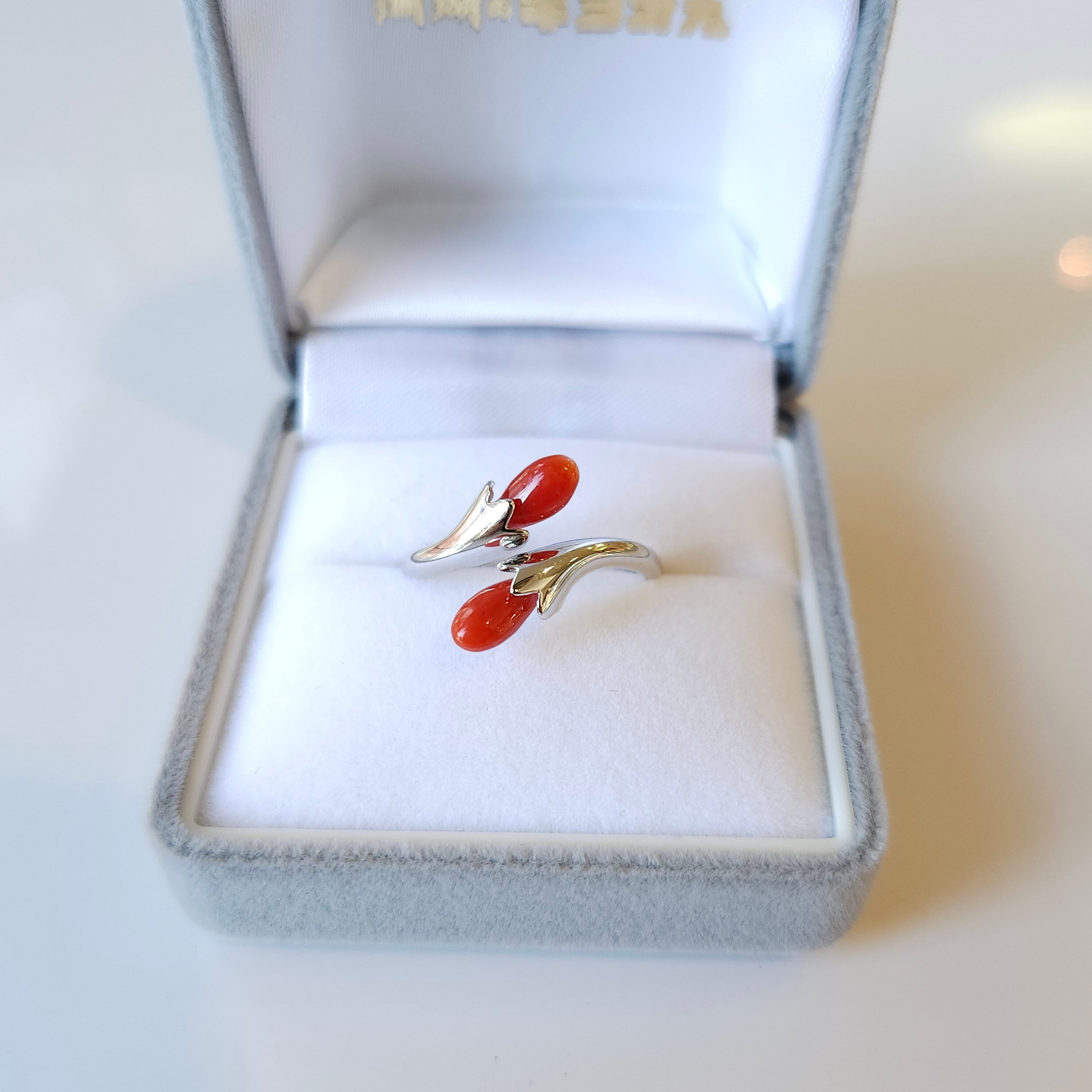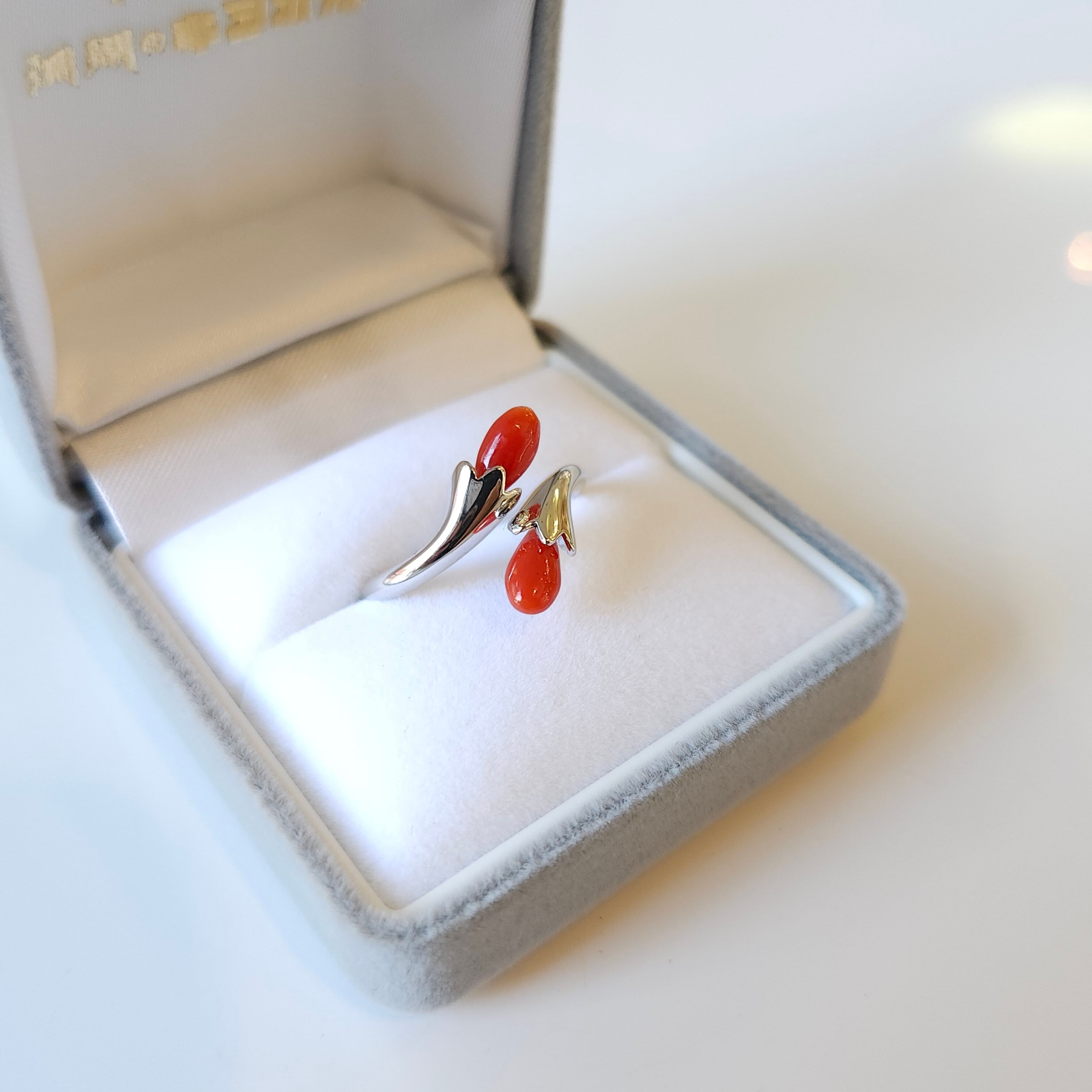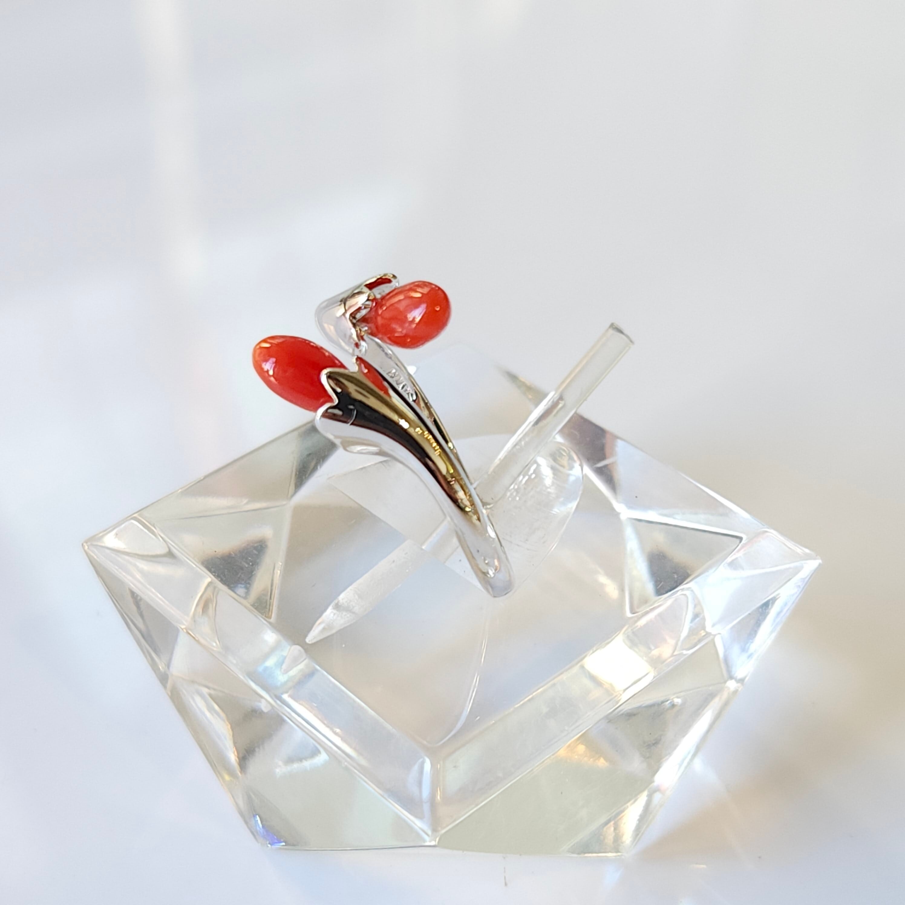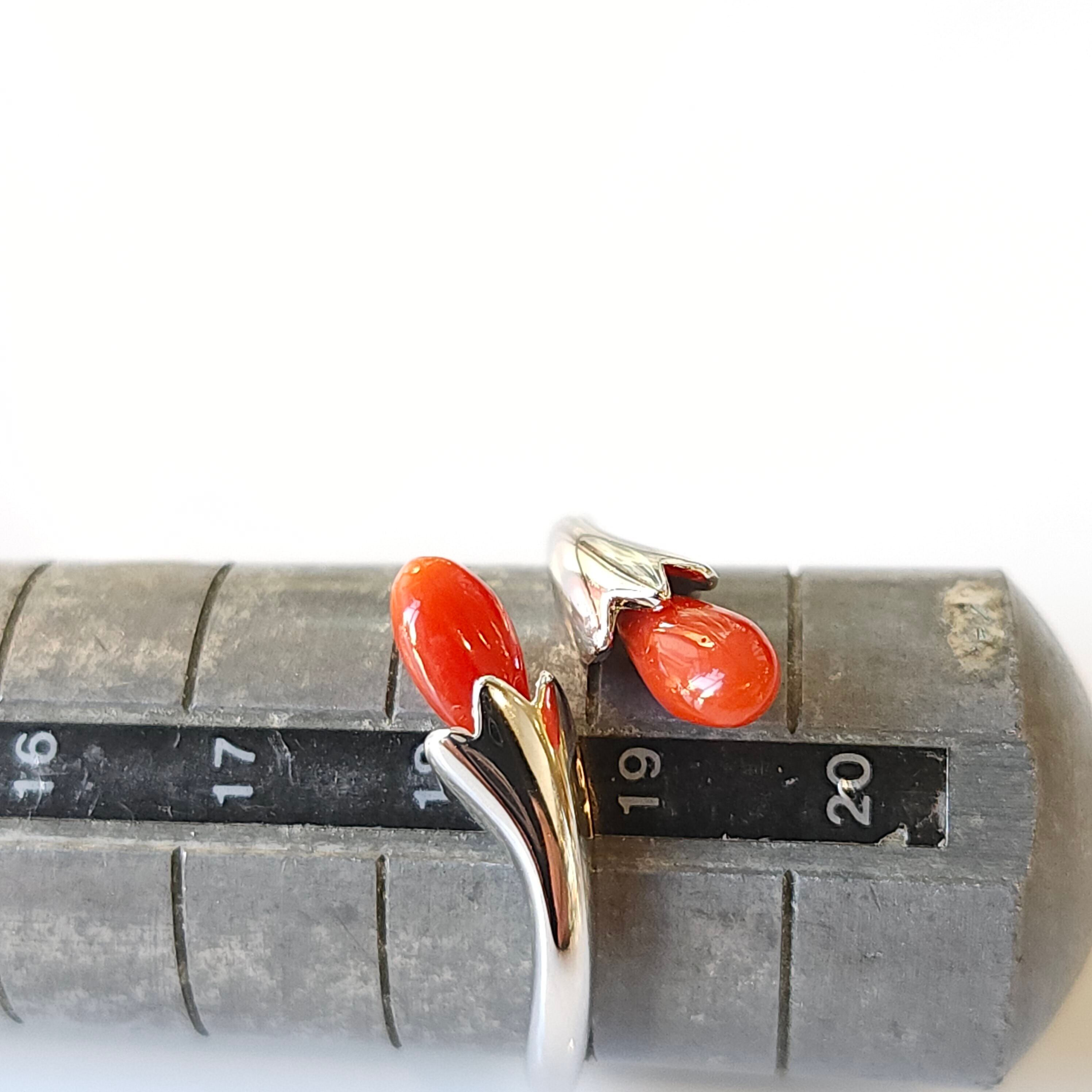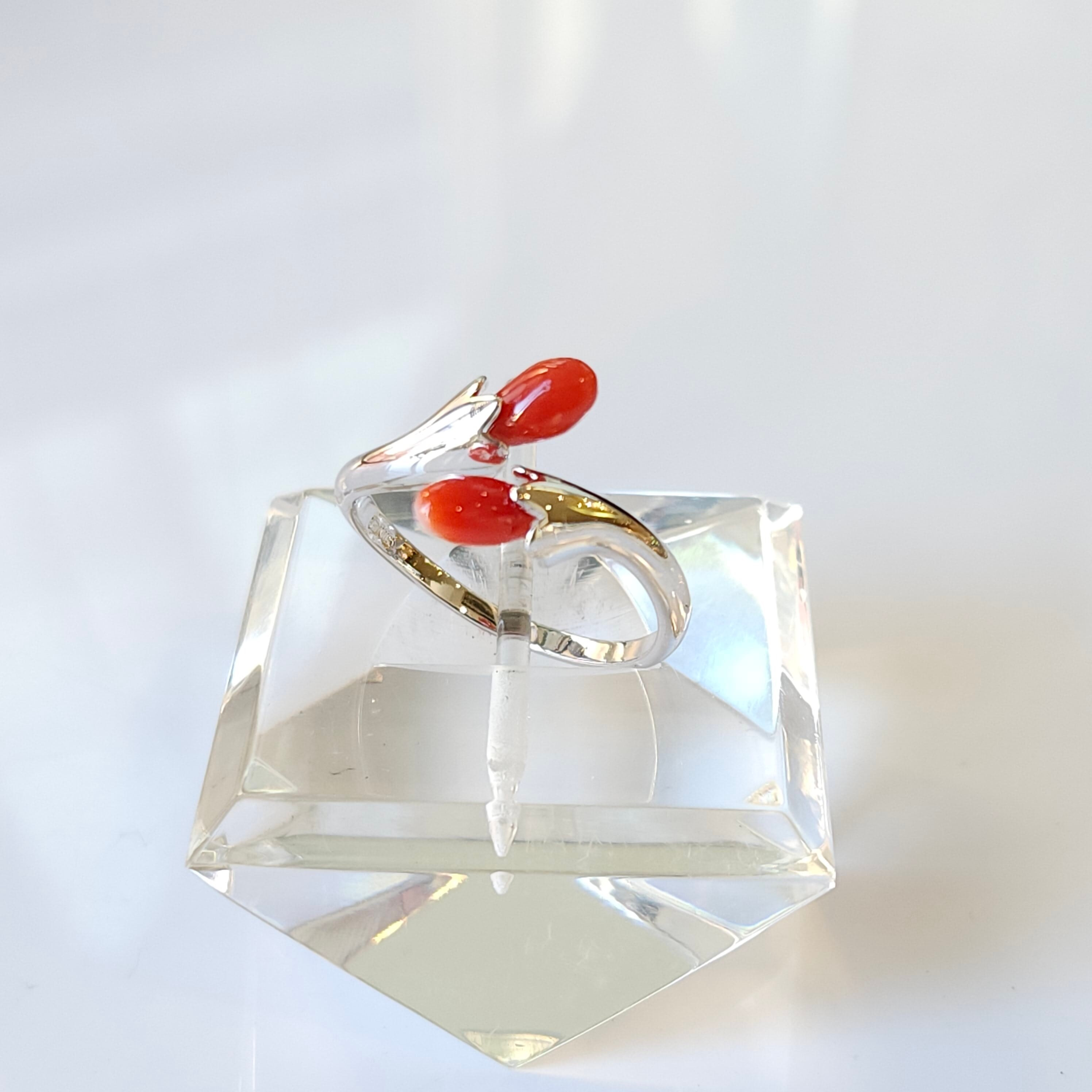 綺麗な色合いの赤珊瑚が目を惹くフリーサイズリングです。