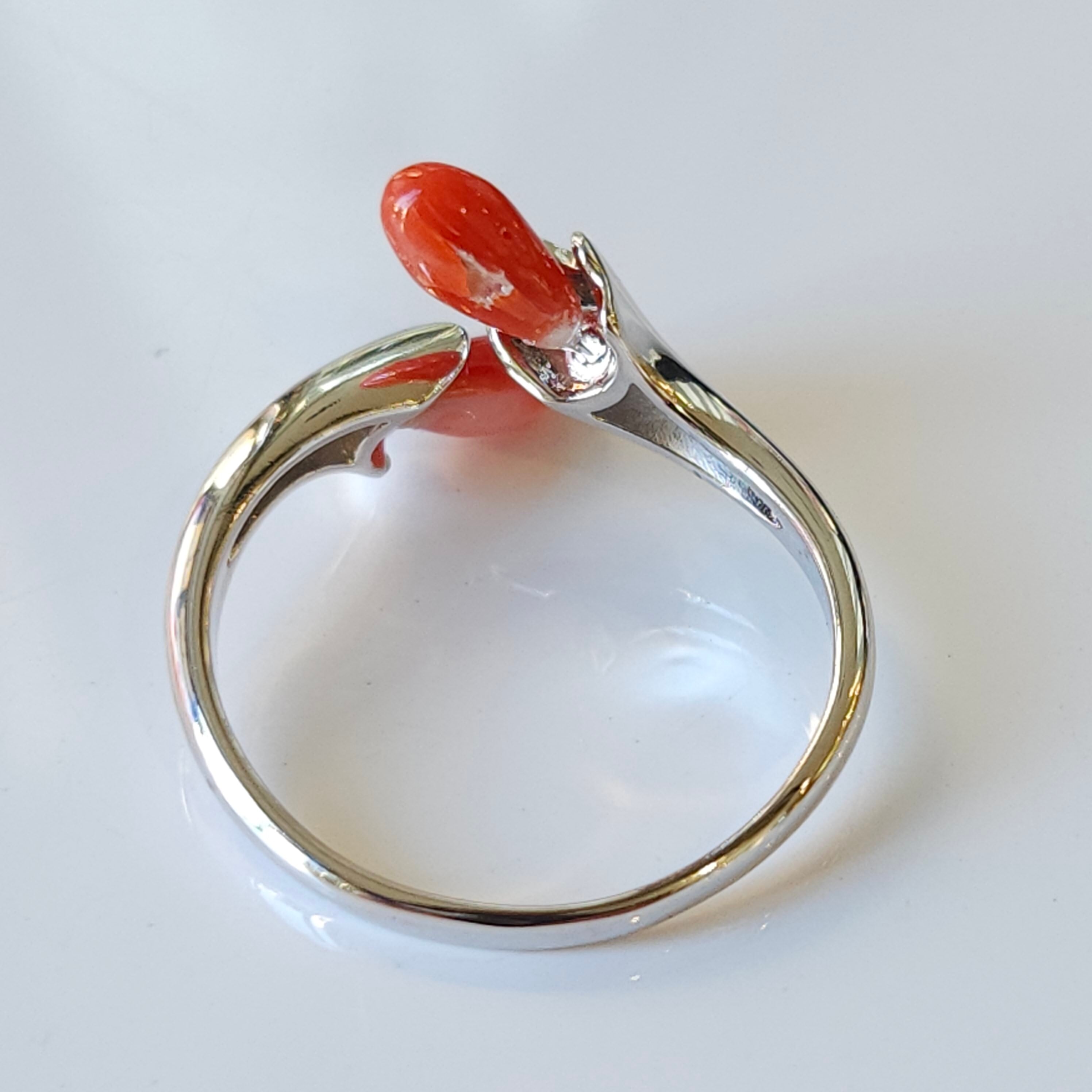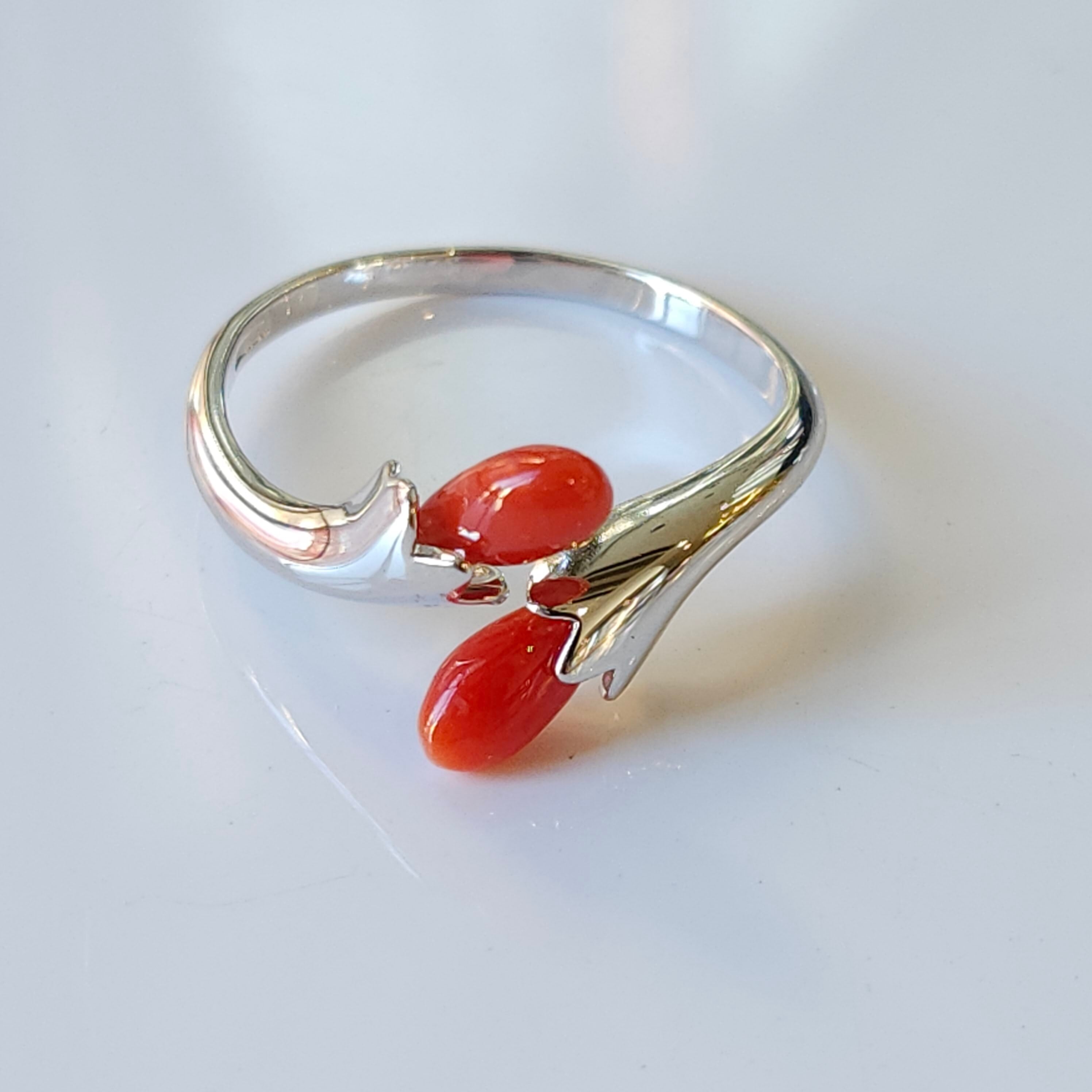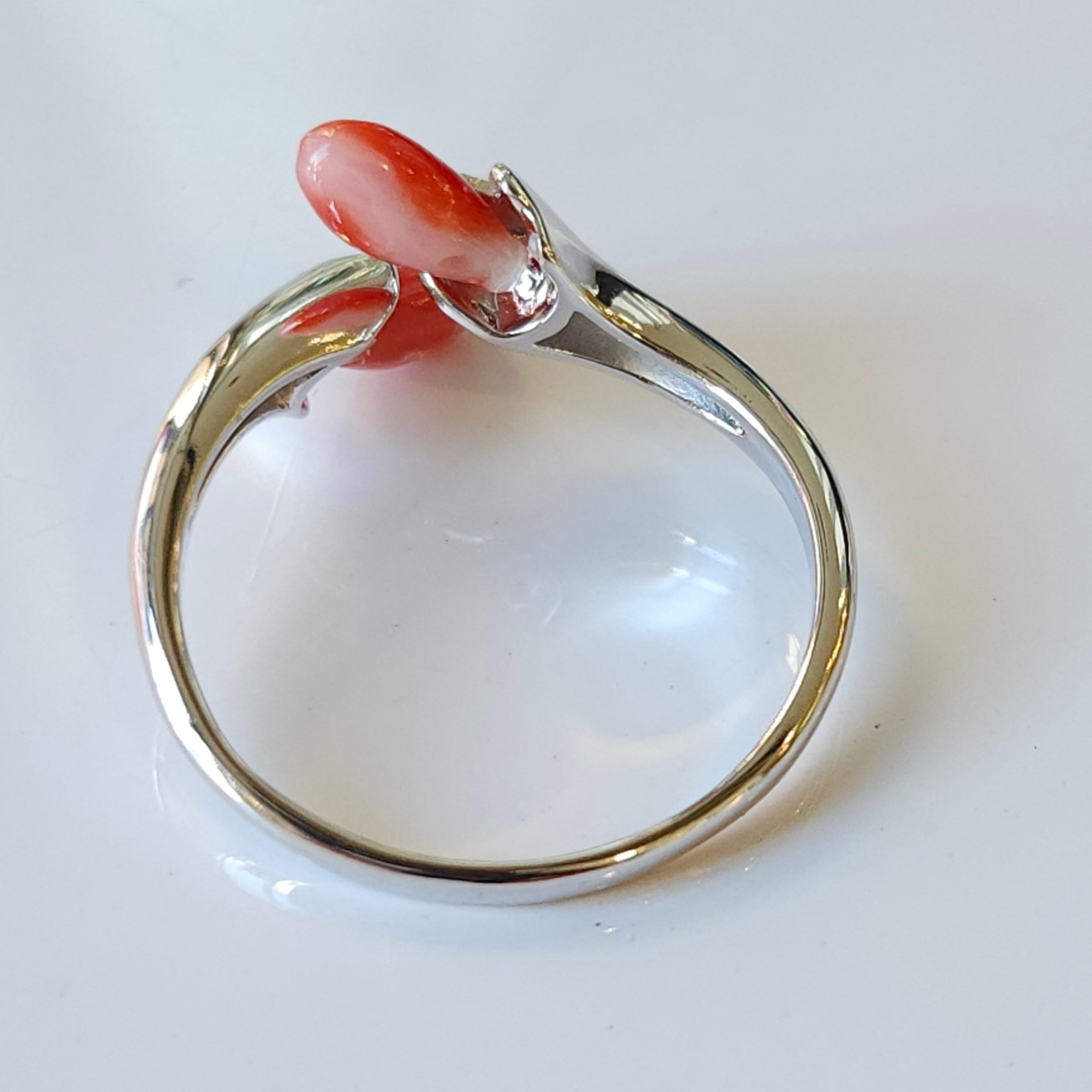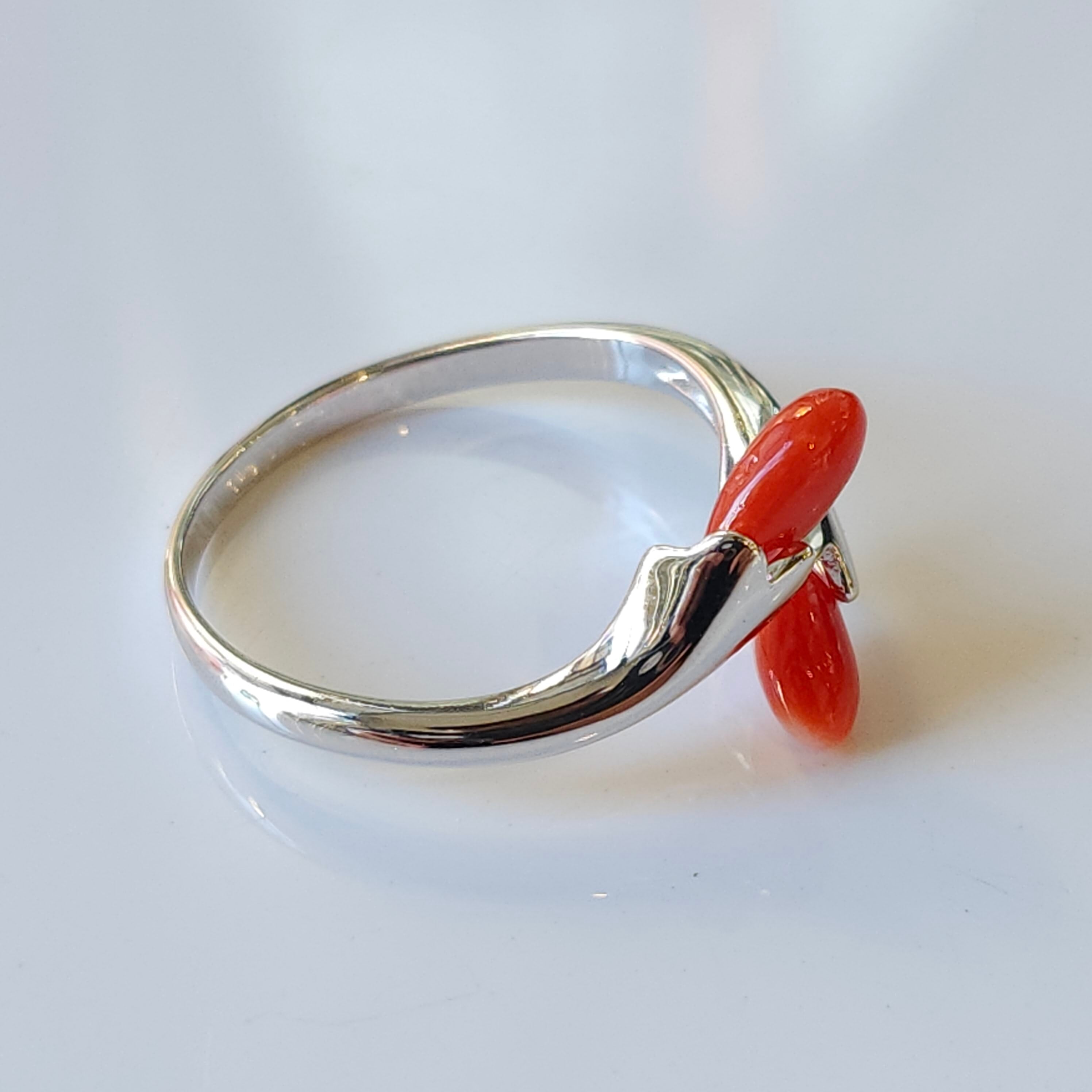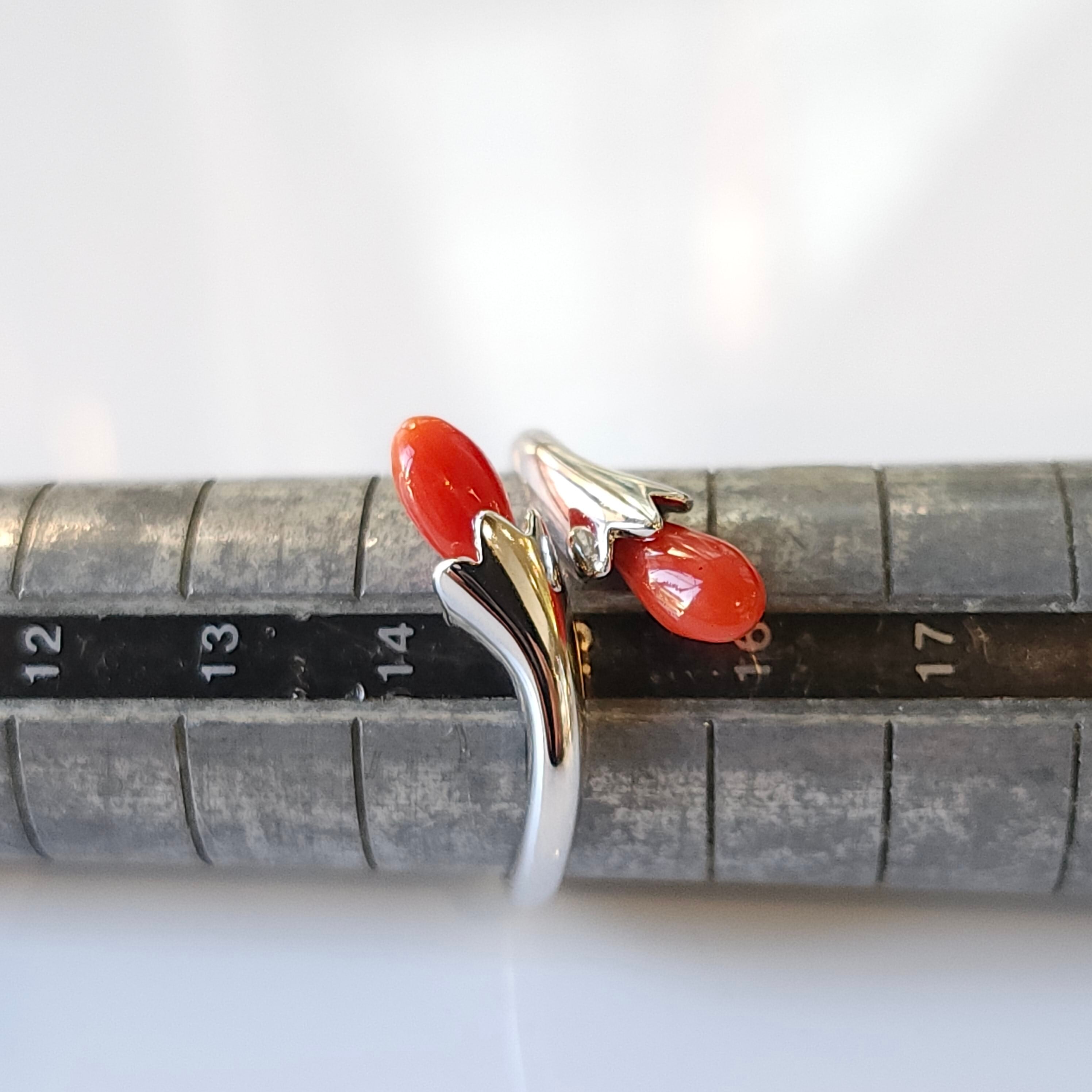 綺麗な色合いの赤珊瑚が目を惹くフリーサイズリングです。