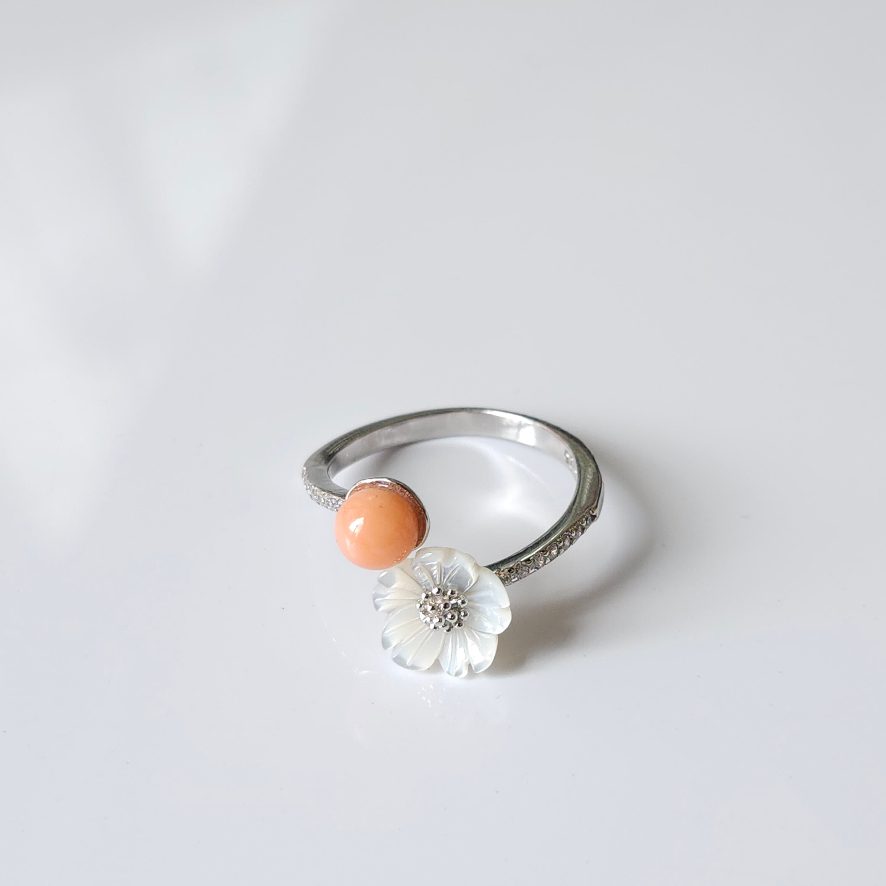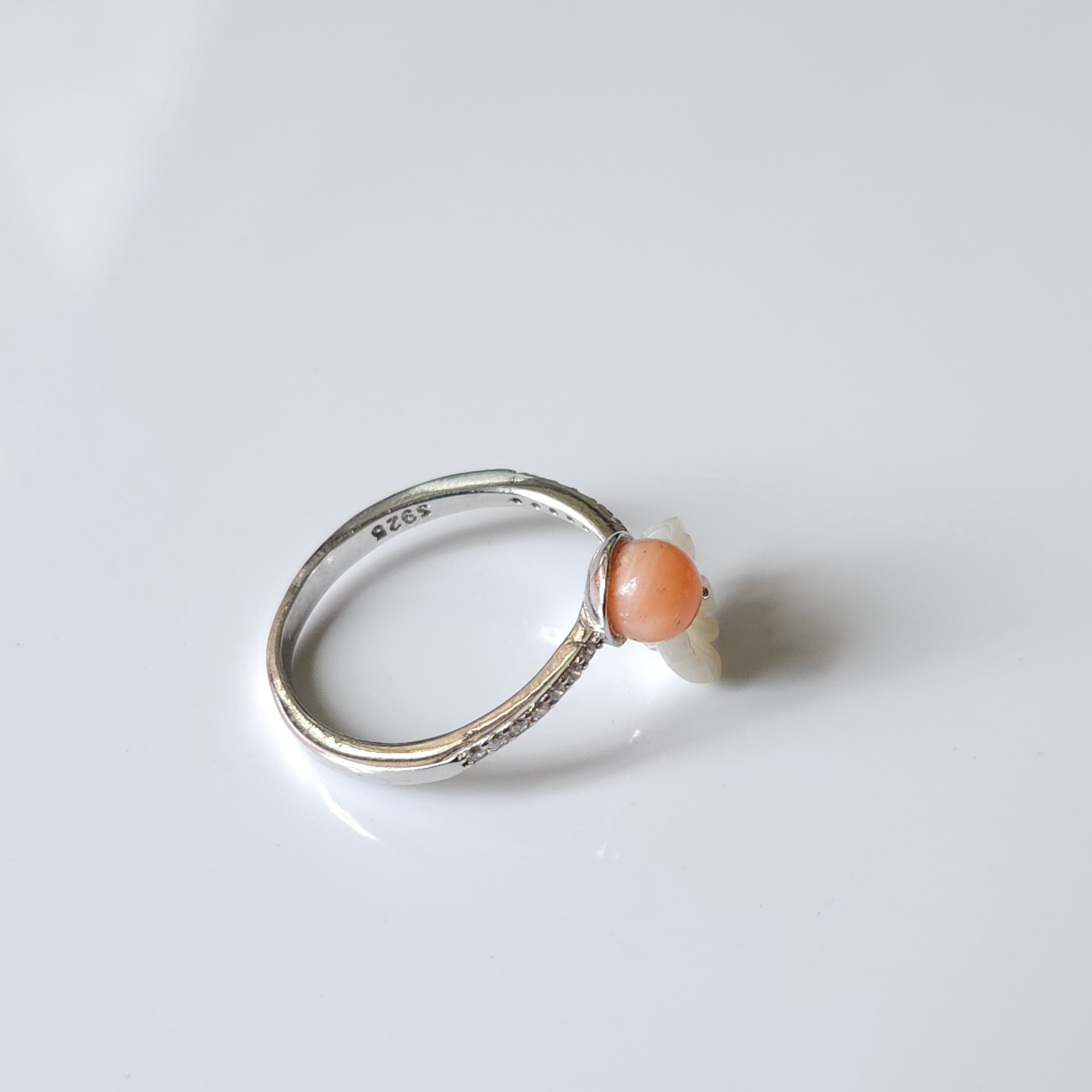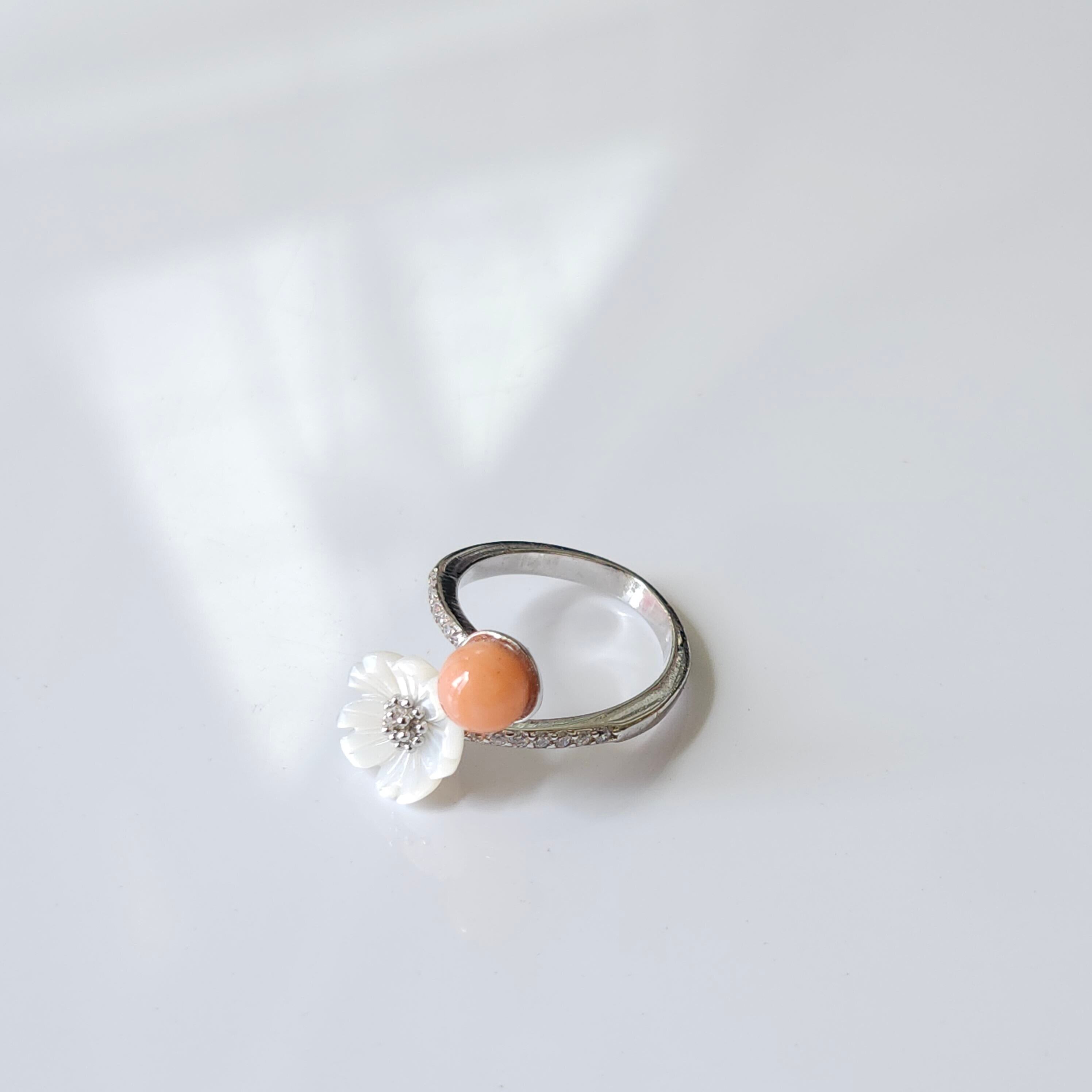 やさしいなめらかなピンク色の珊瑚が可愛らしいフリーサイズリングです。