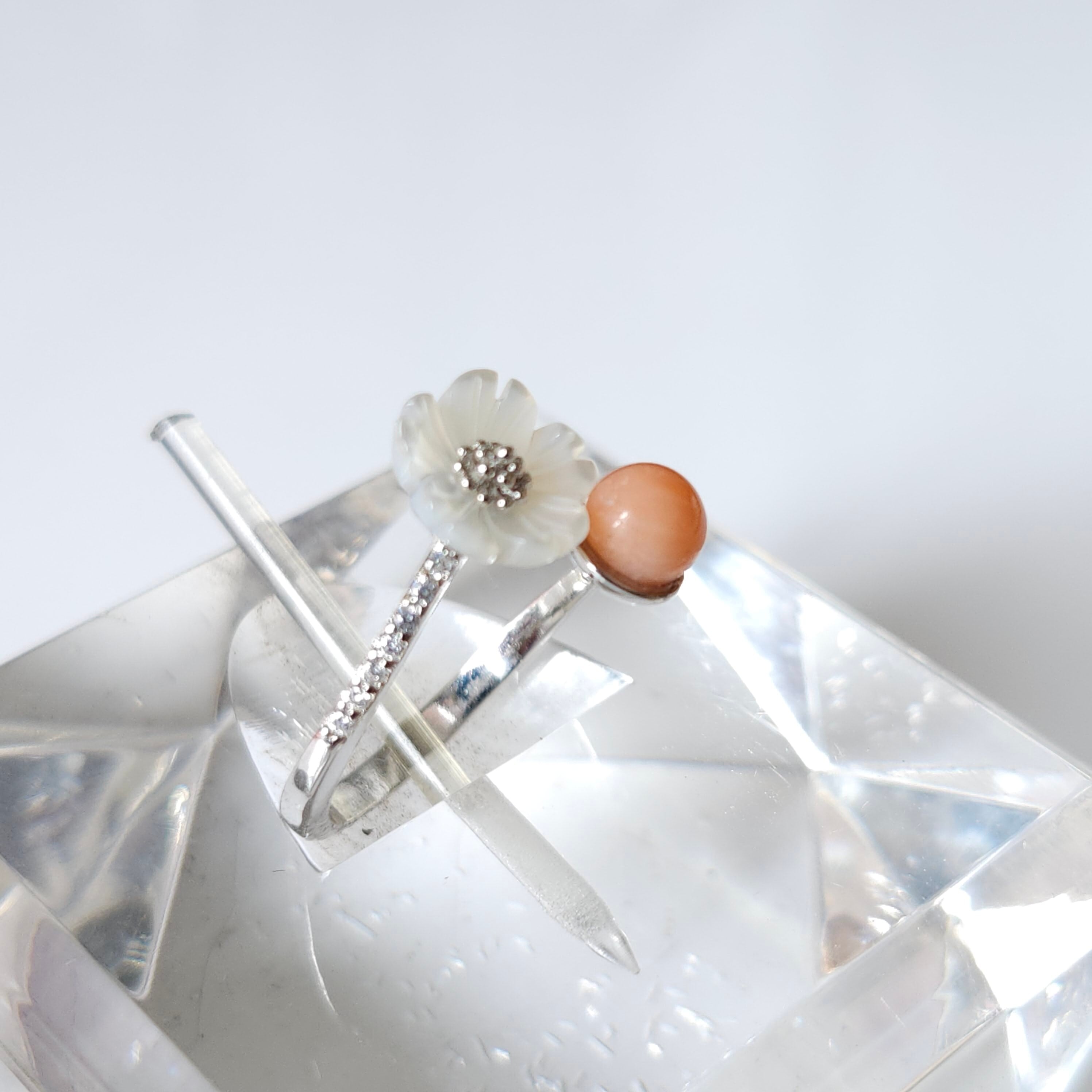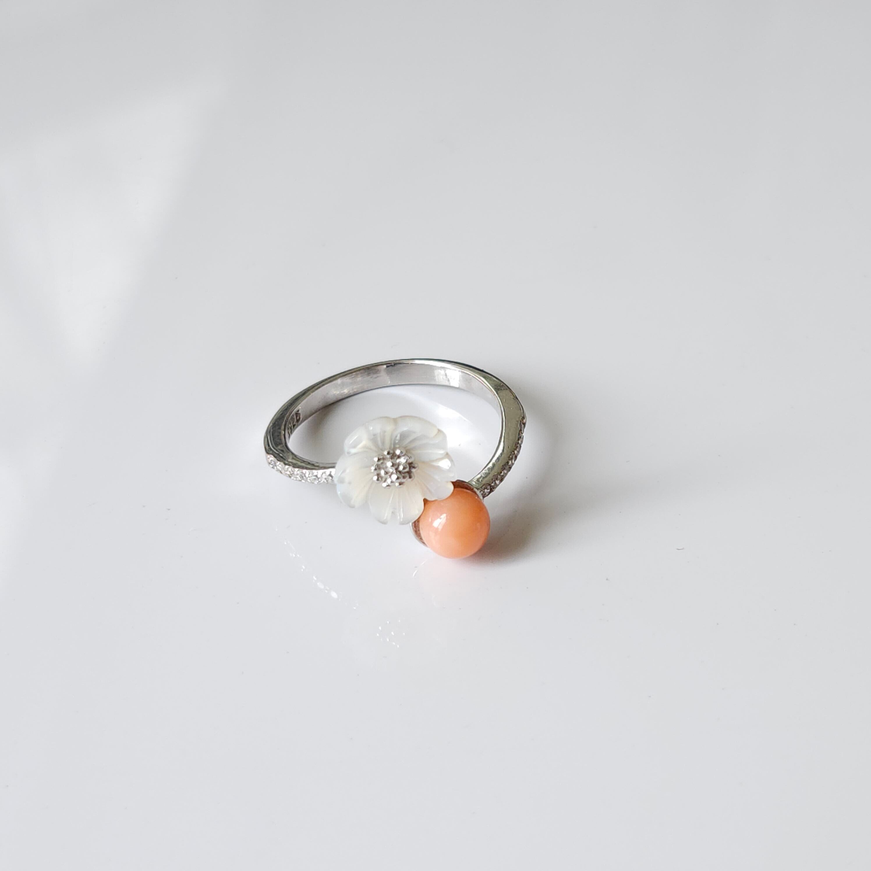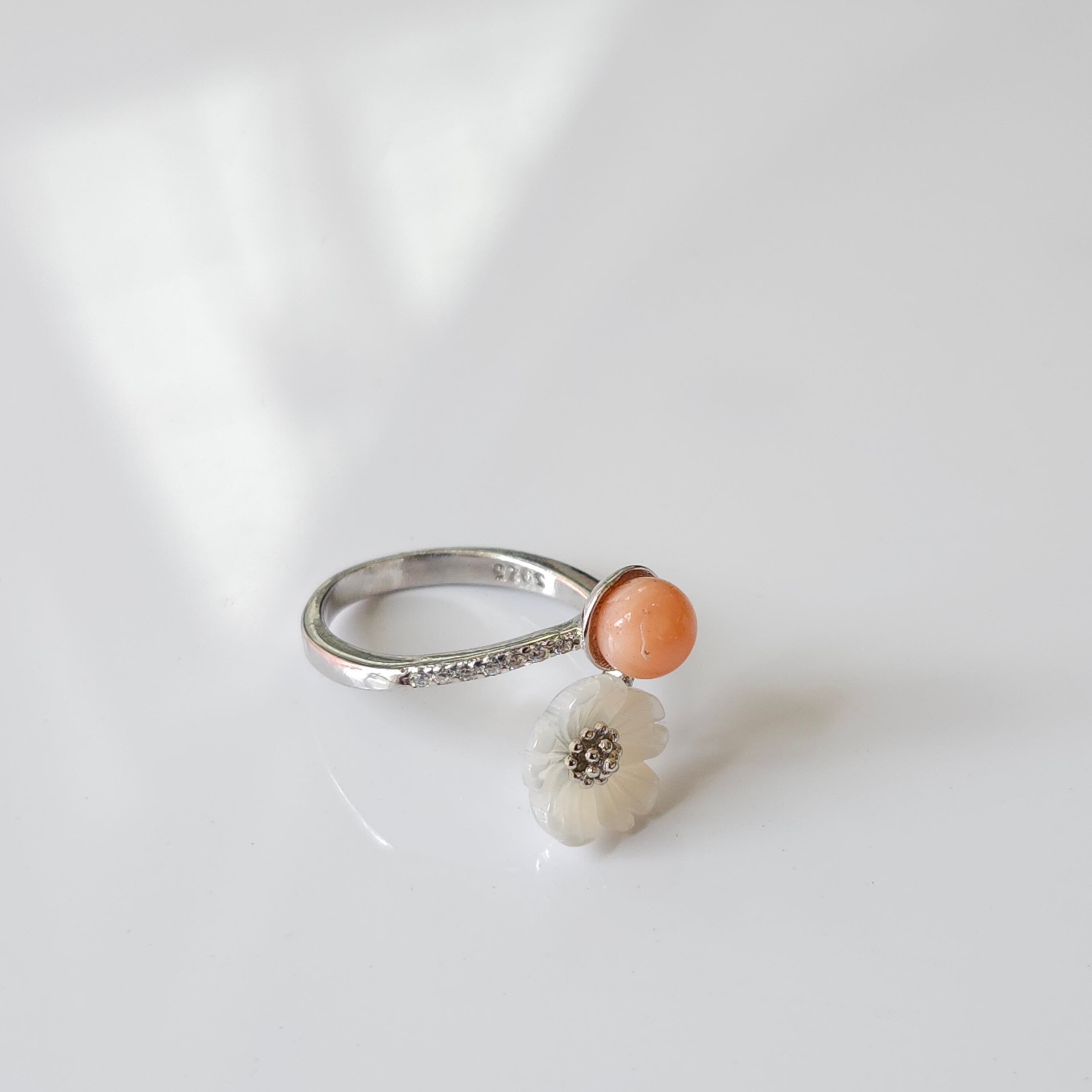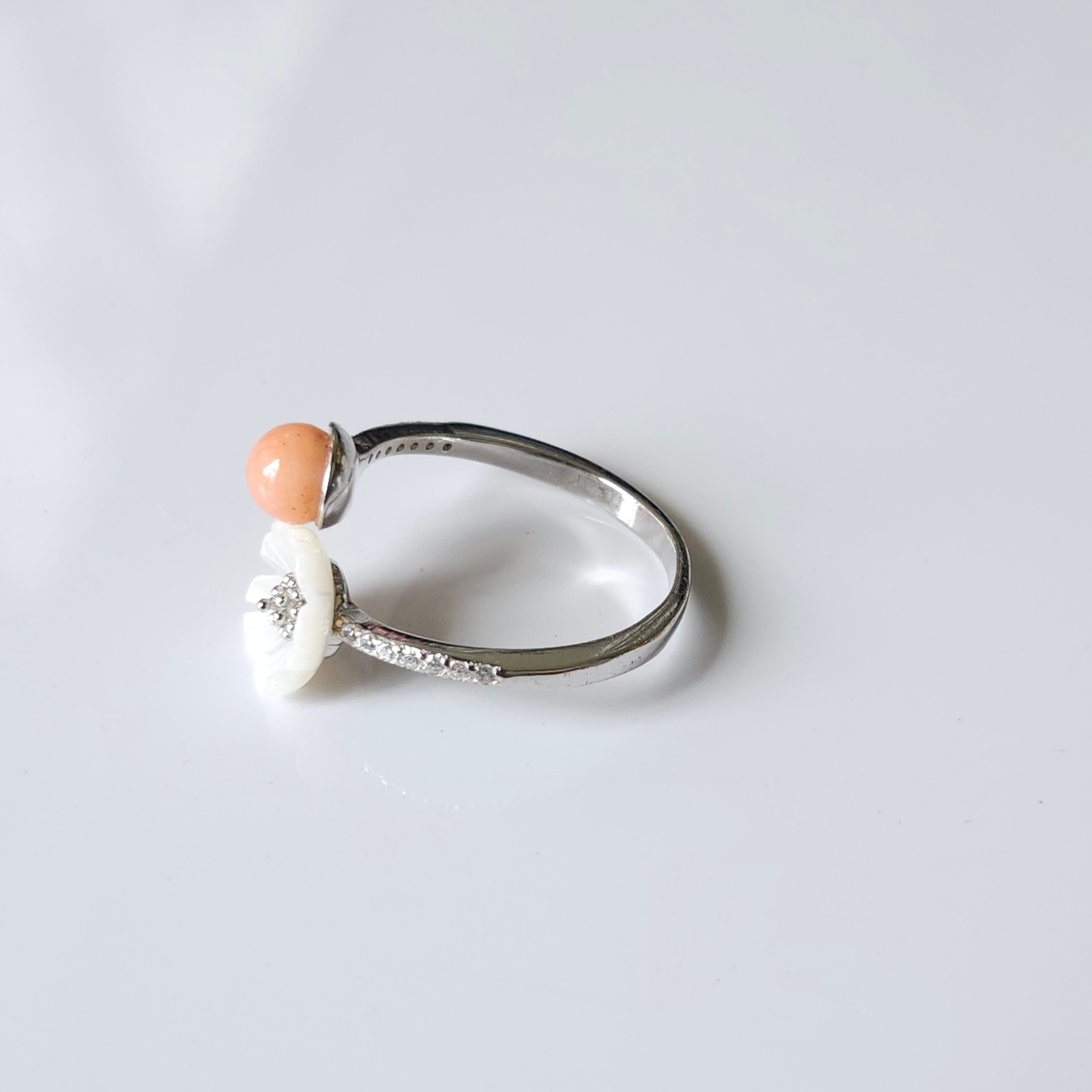 やさしいなめらかなピンク色の珊瑚が可愛らしいフリーサイズリングです。