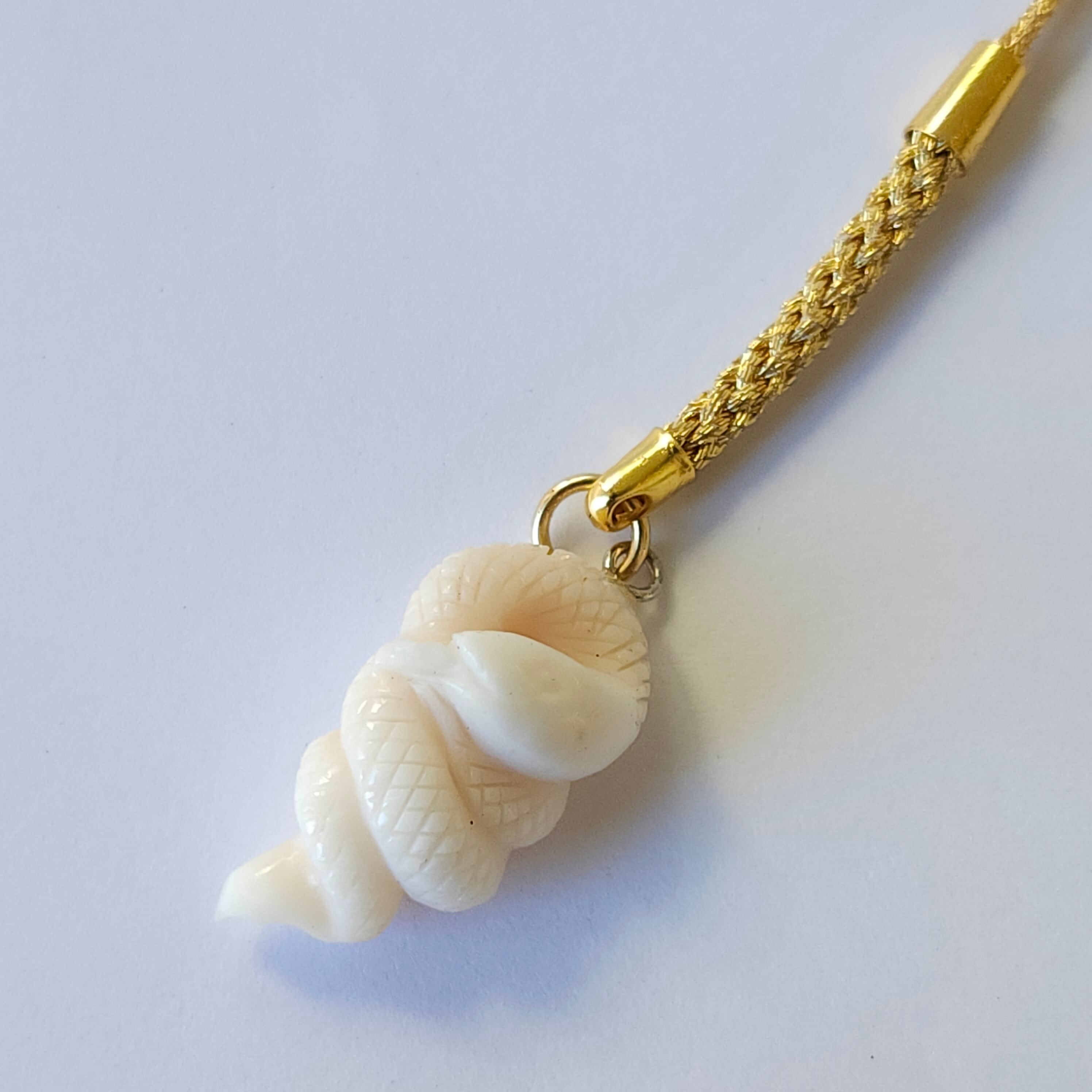白珊瑚で製作した蛇の根付けです。