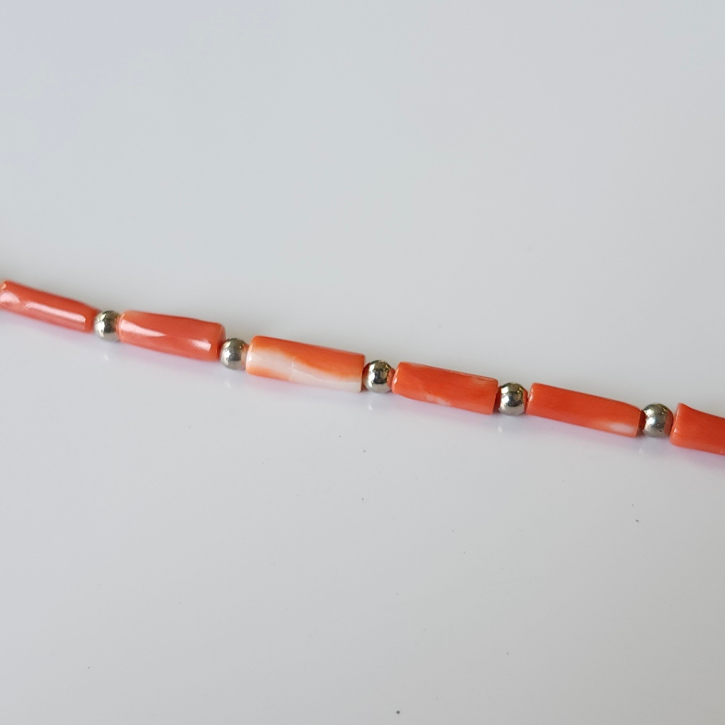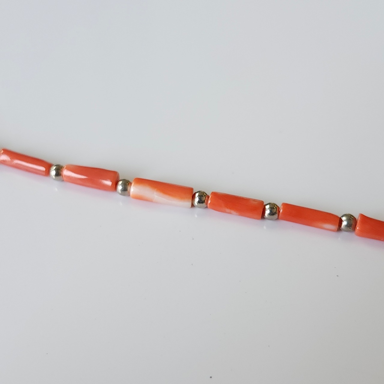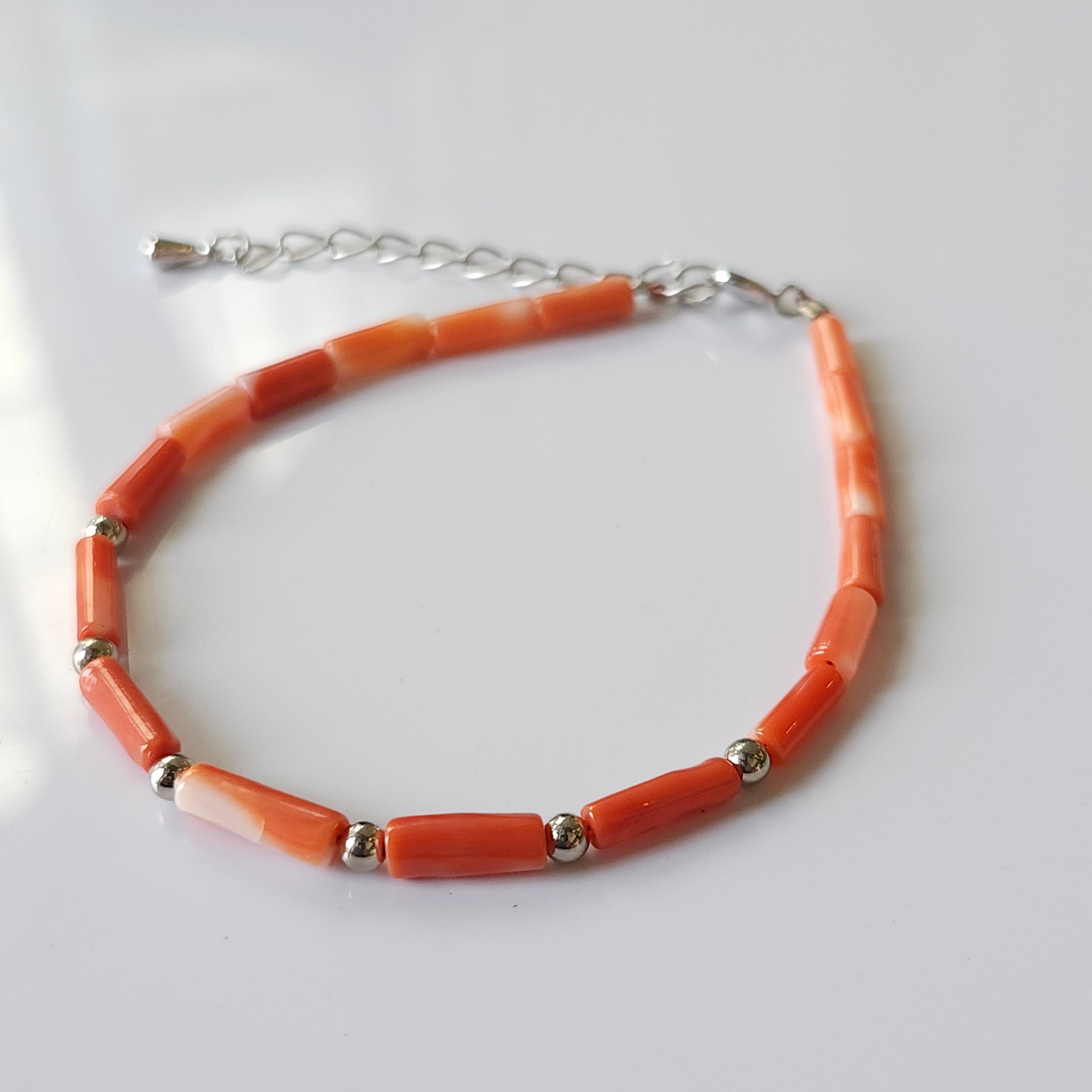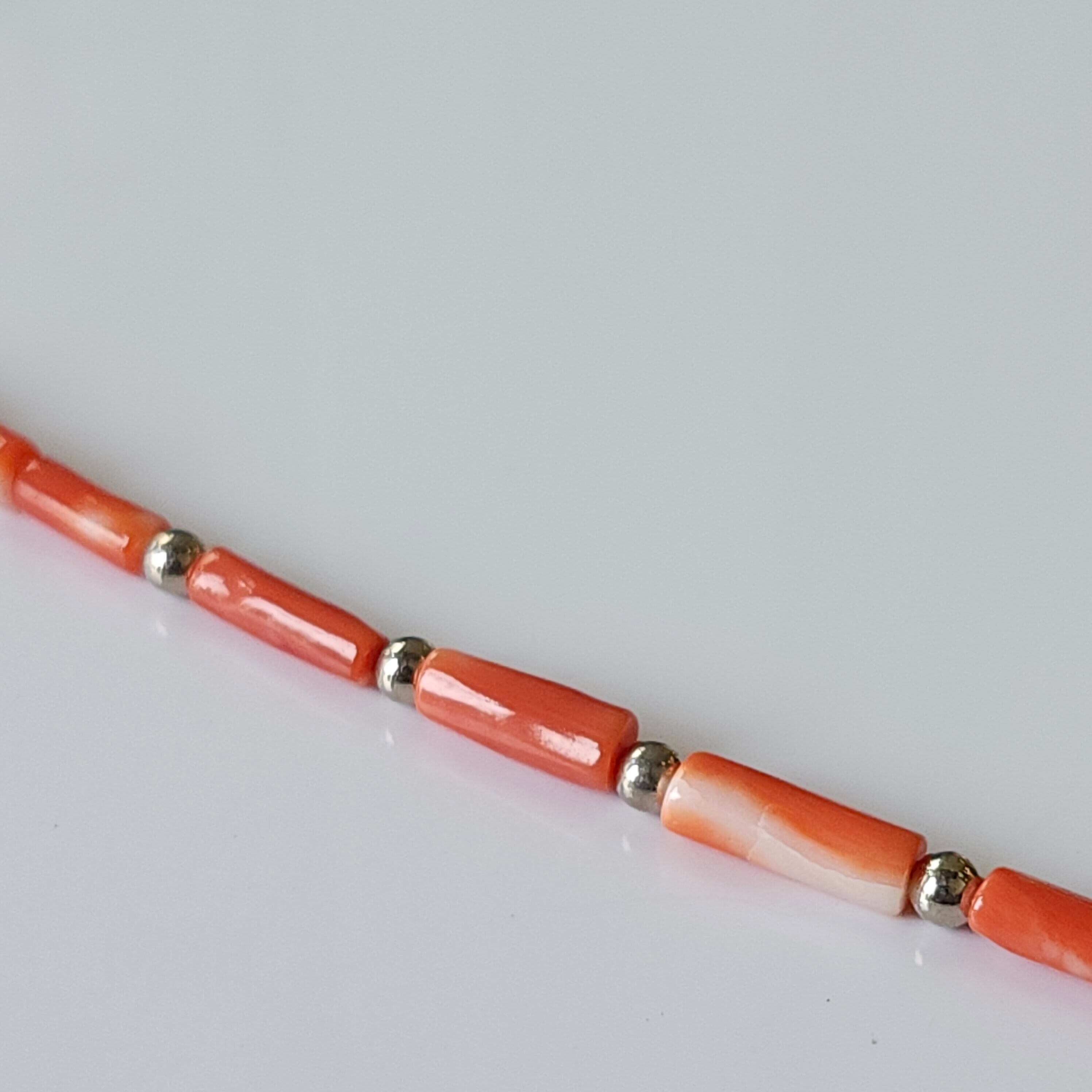 天然の宝石珊瑚の色合いと光沢が美しいブレスレットです。