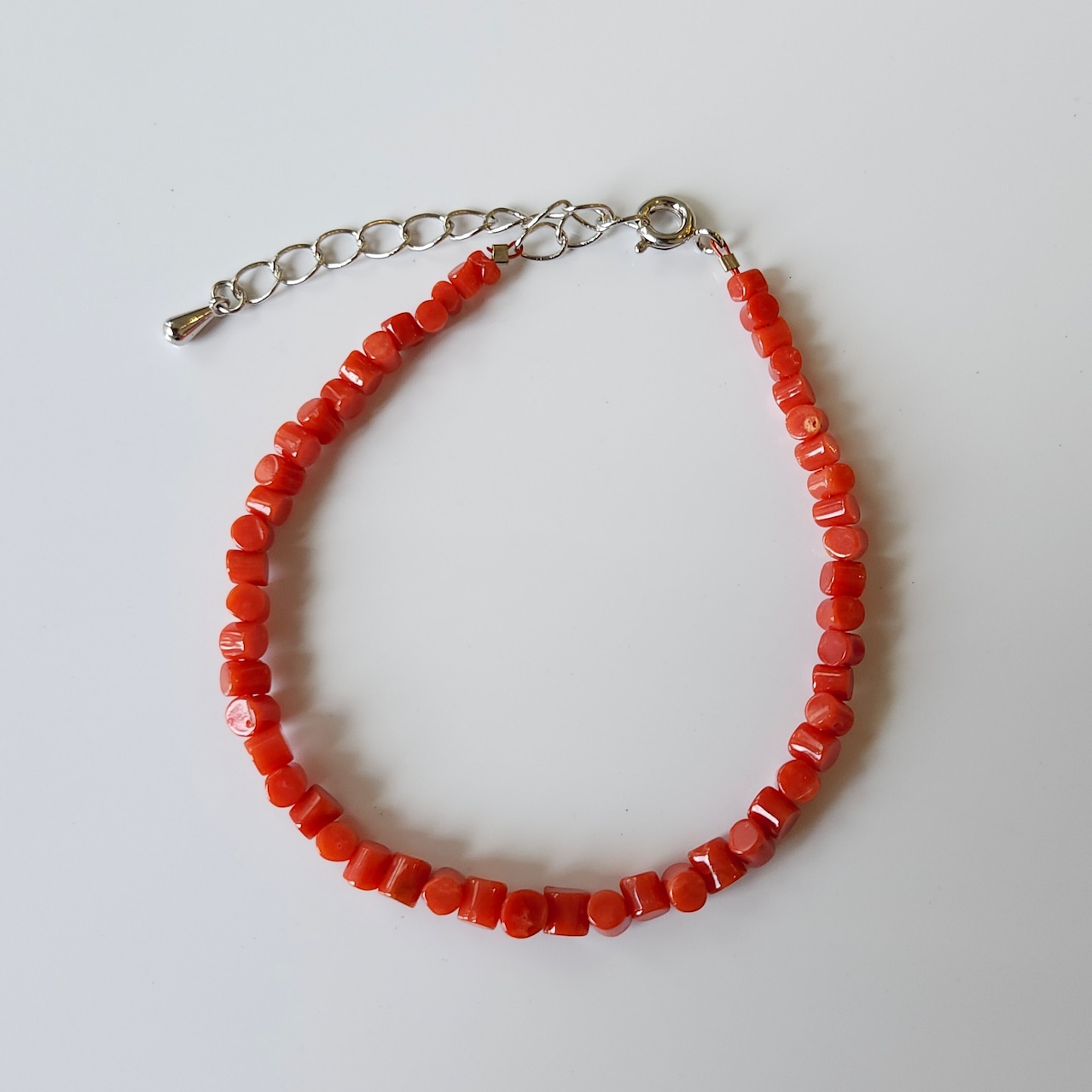 天然の赤珊瑚の色合いと光沢が美しいブレスレットです。