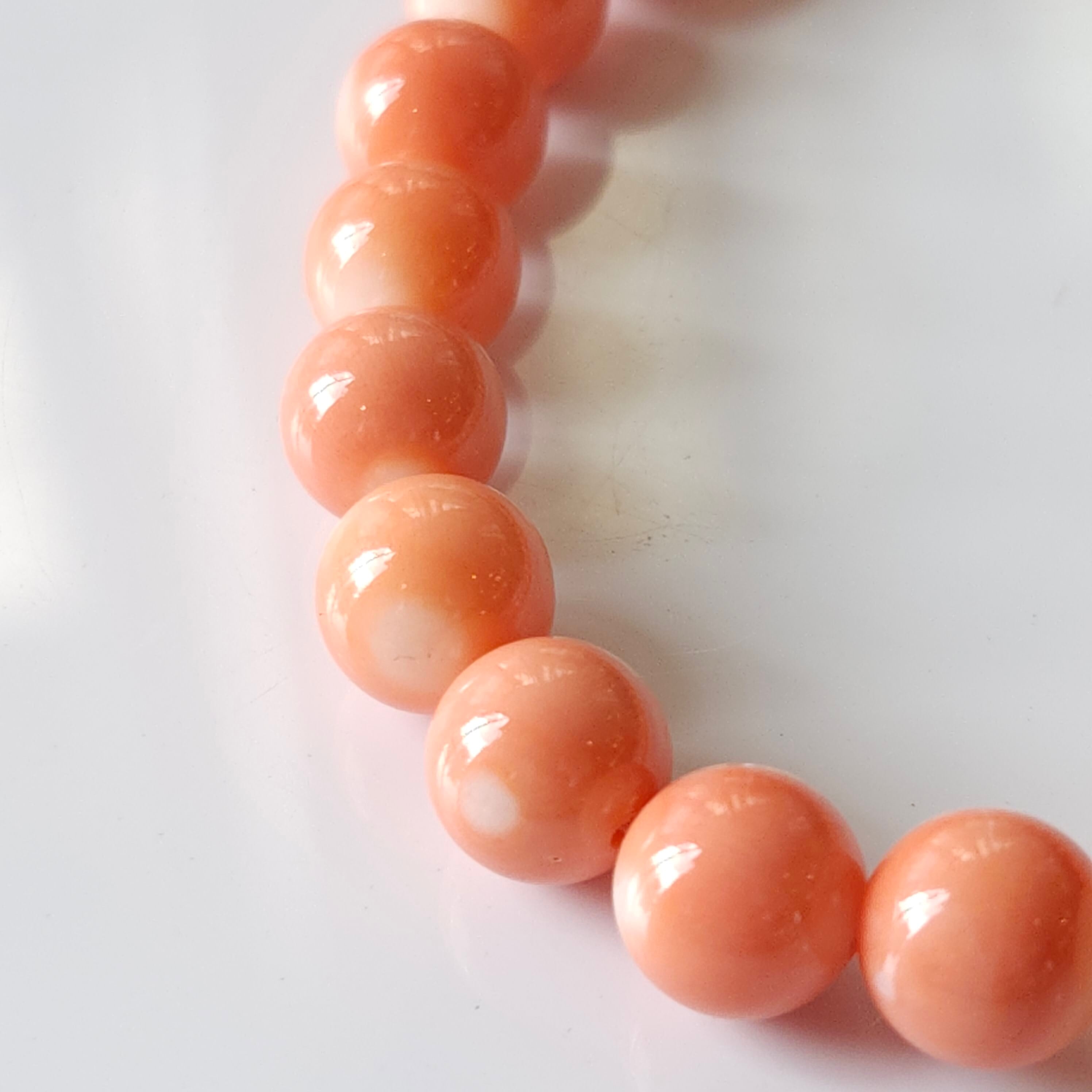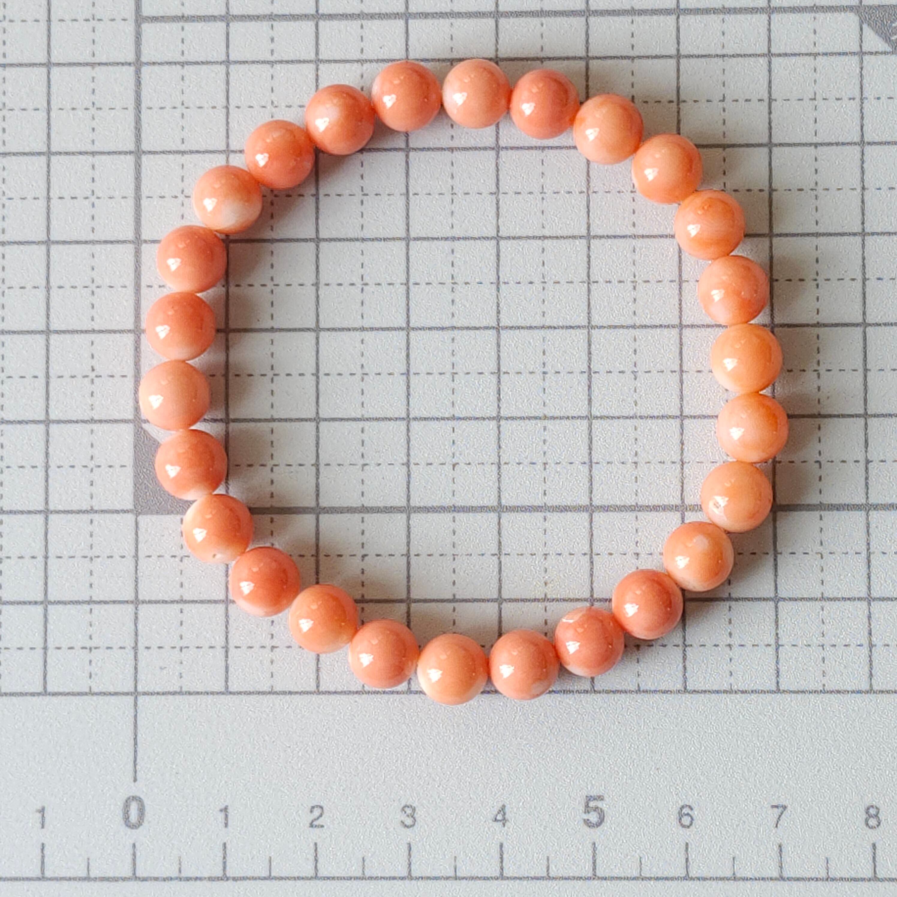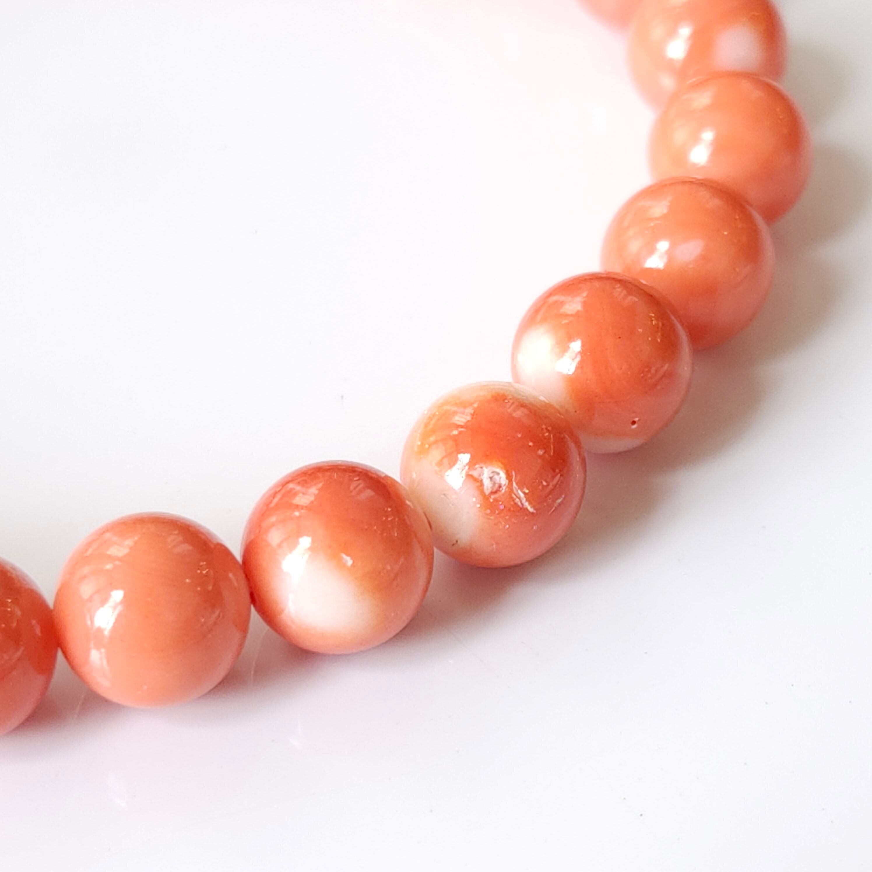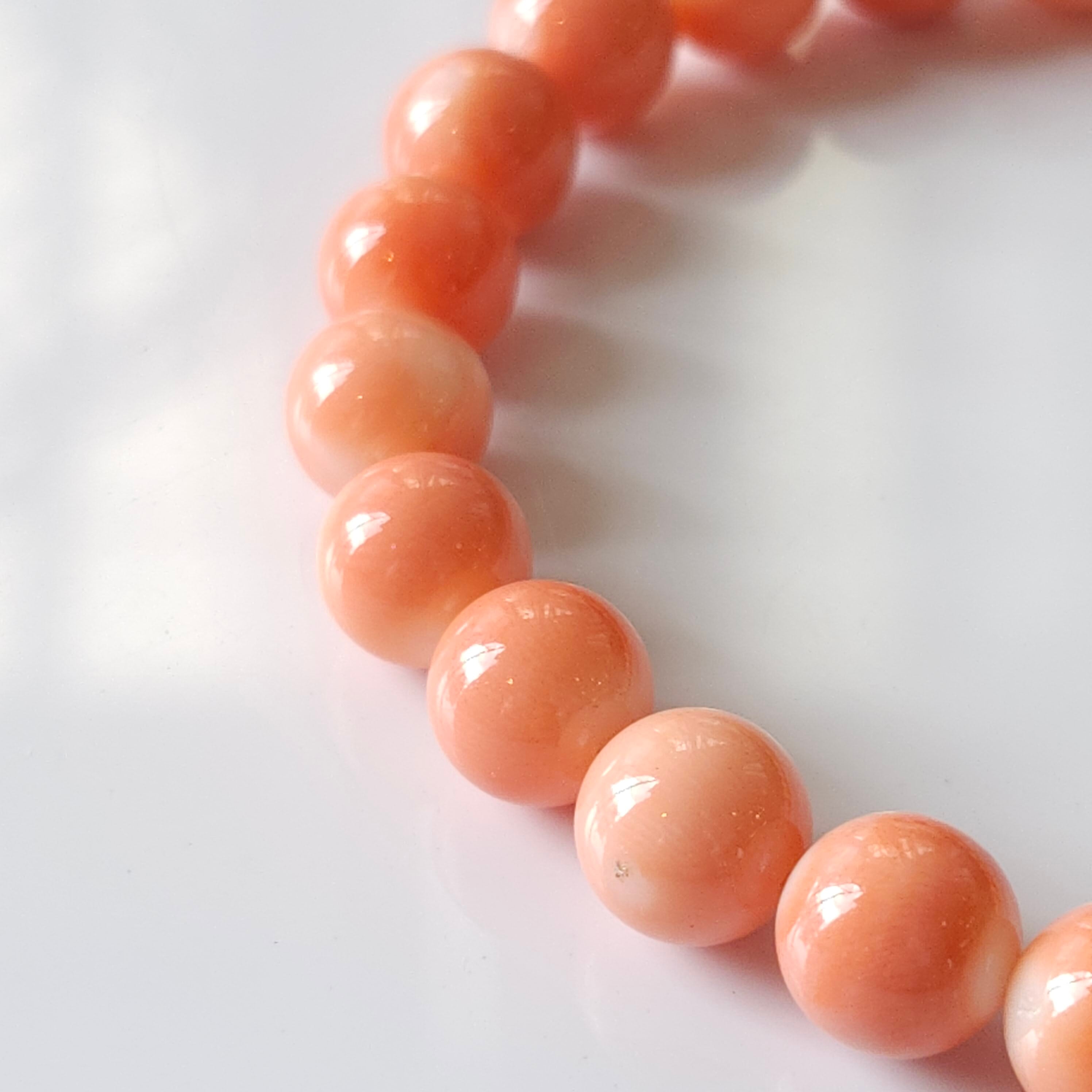淡い桃色の珊瑚玉のゴムブレスレットです。