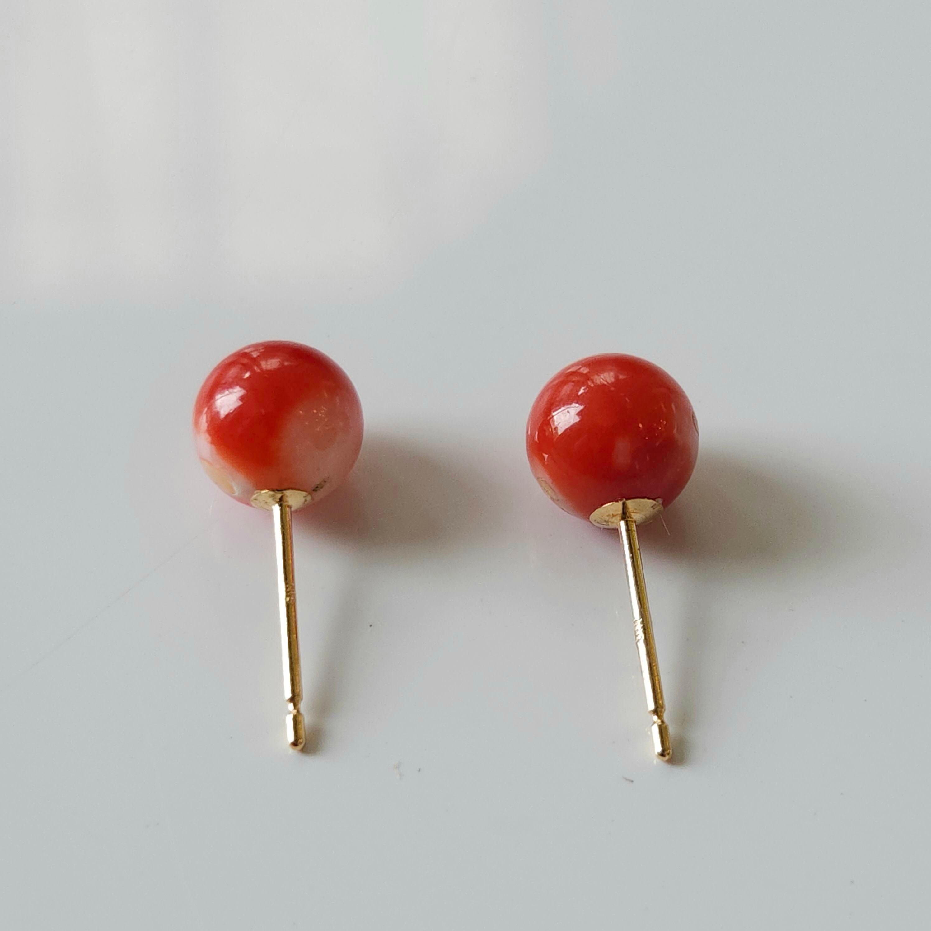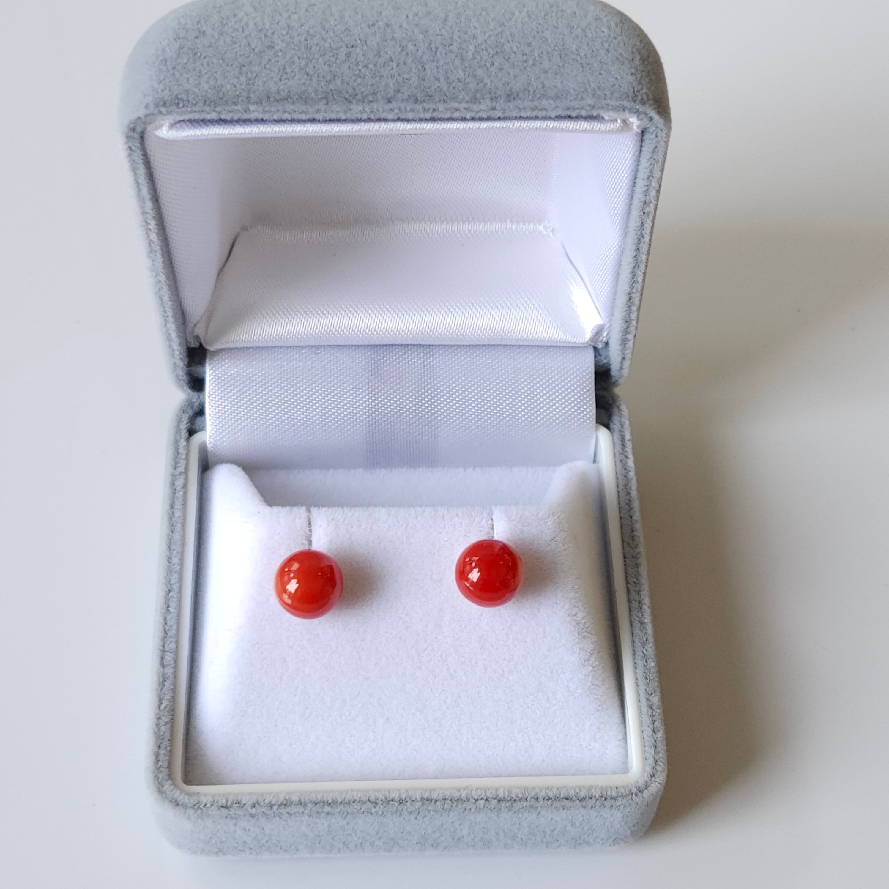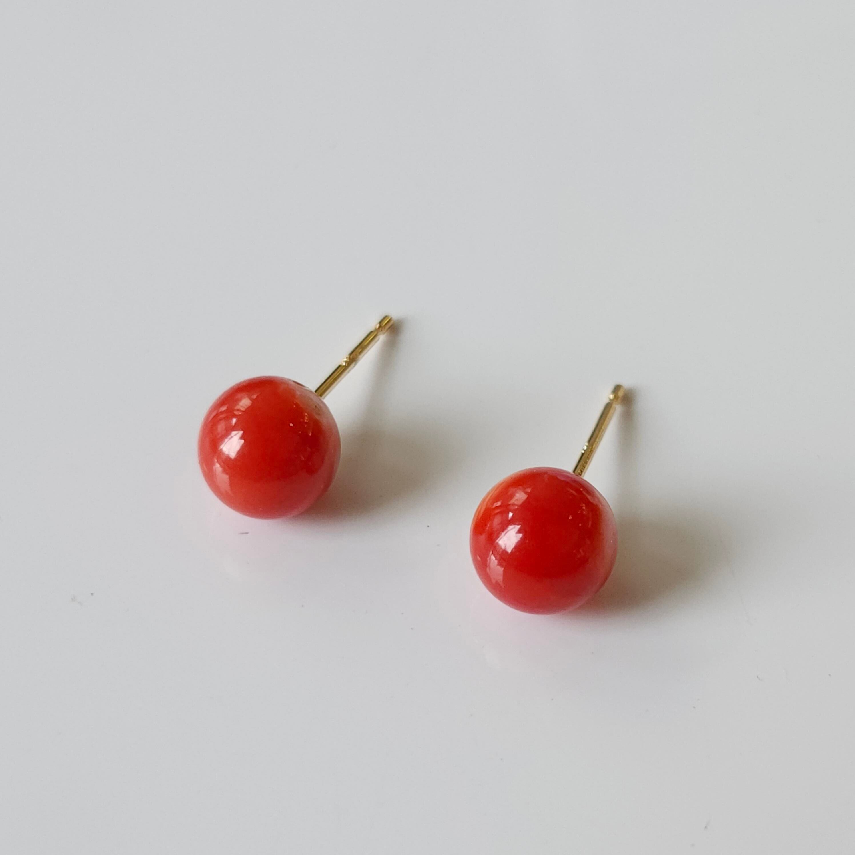 目を惹くとても色の濃い赤珊瑚玉のピアスです。