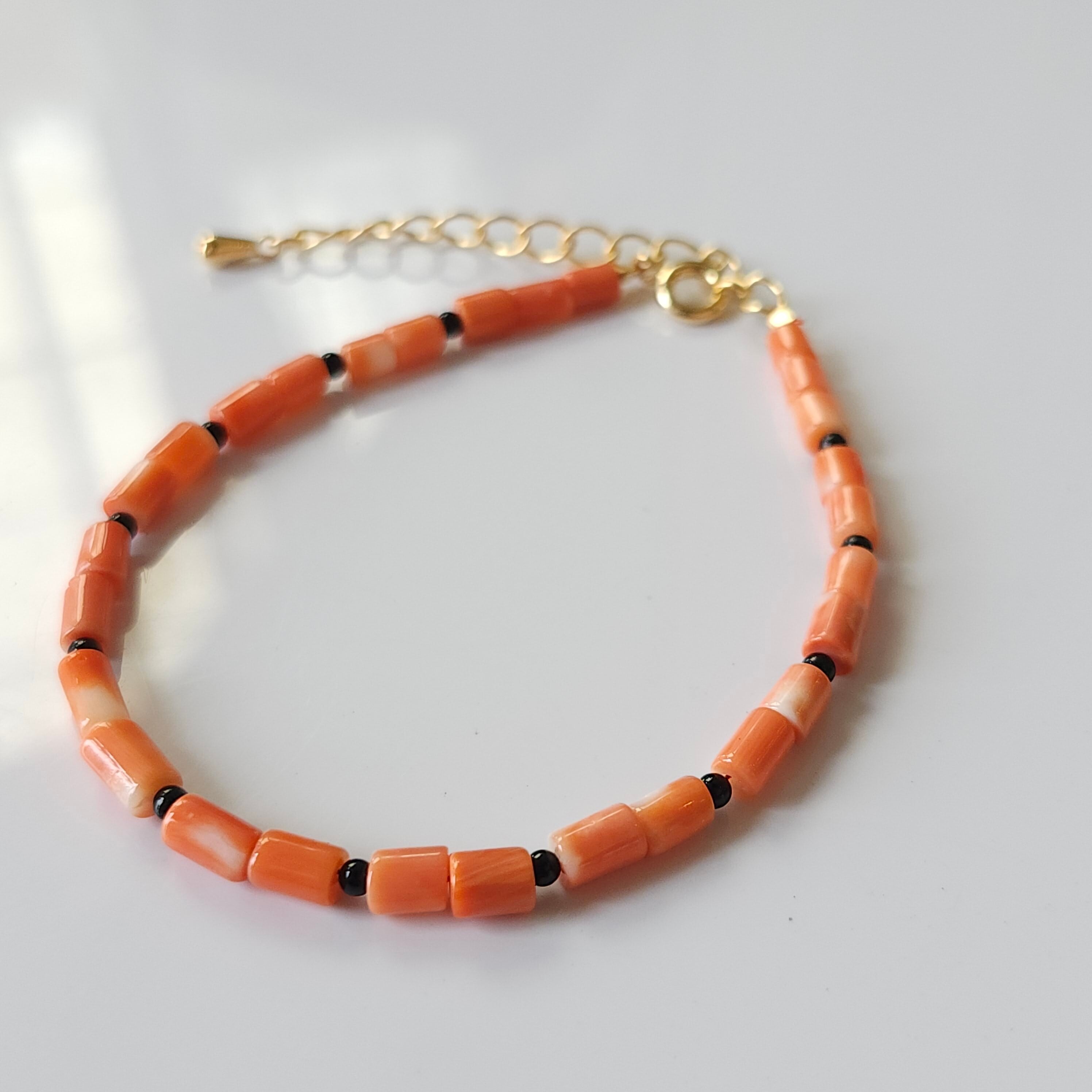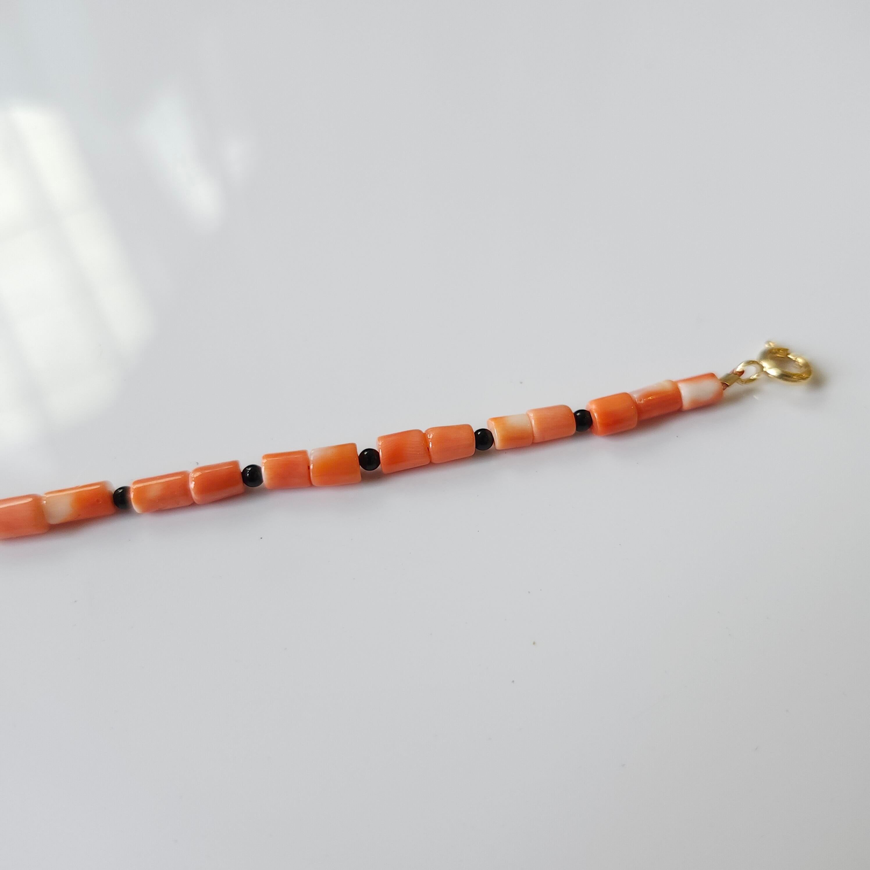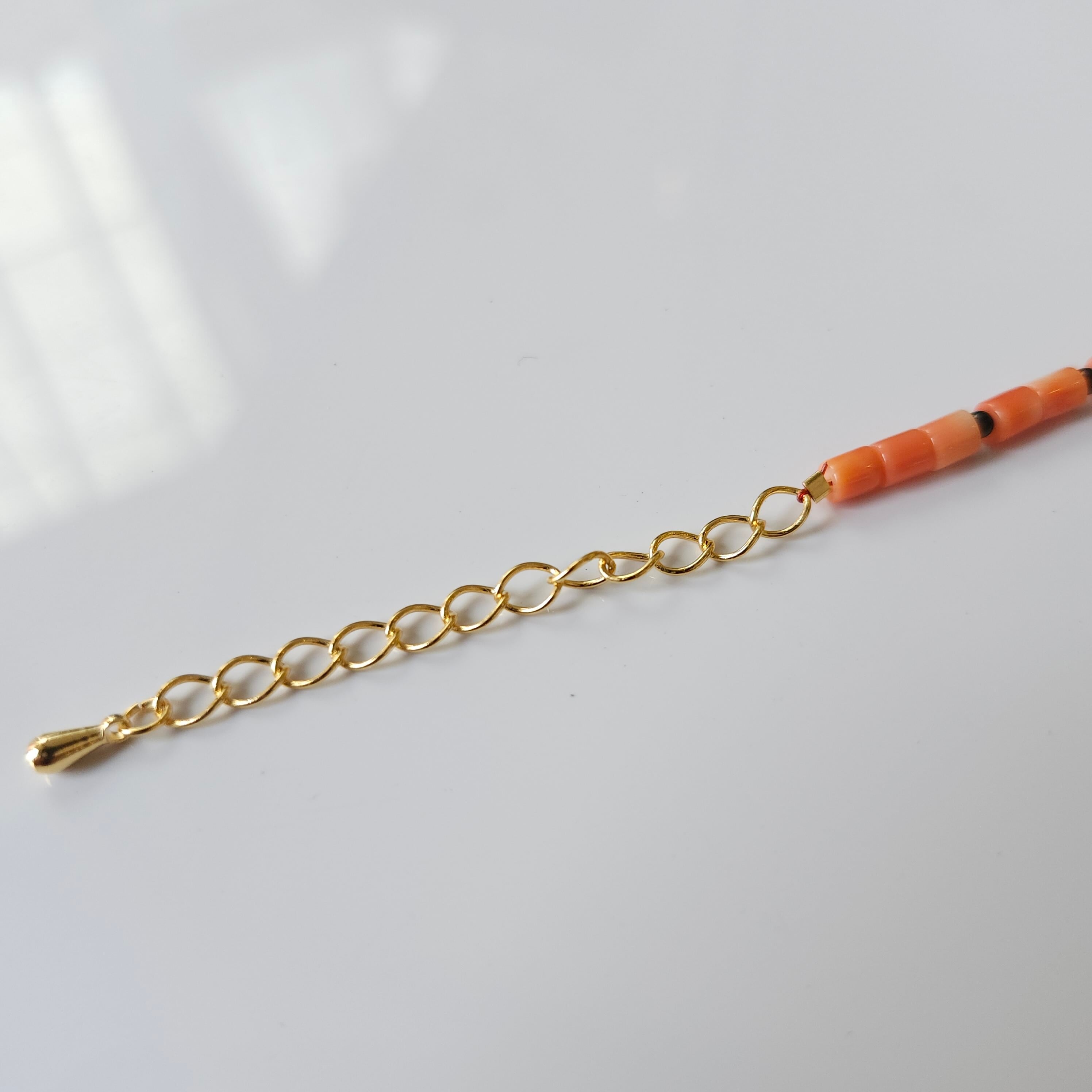 天然の宝石珊瑚の色合いと光沢が美しいブレスレットです。