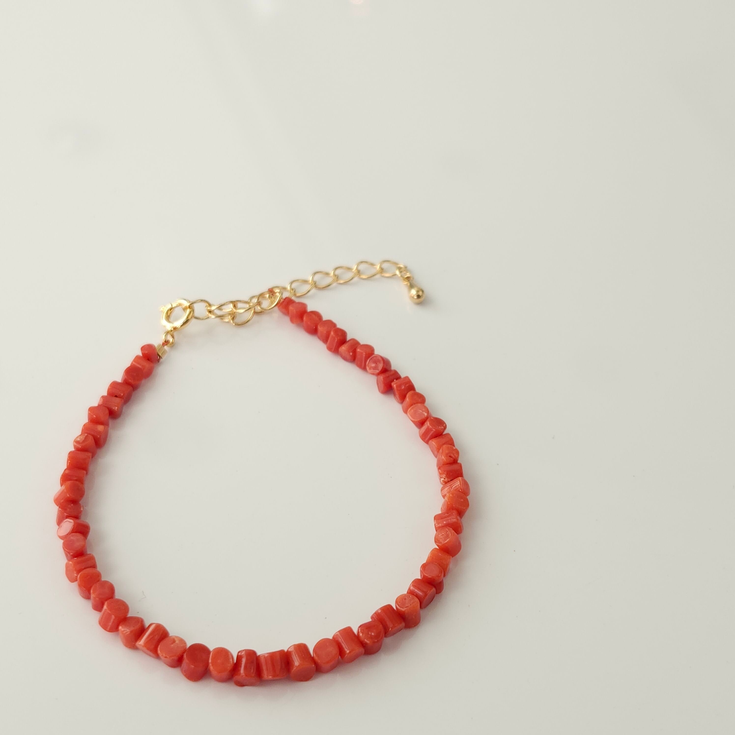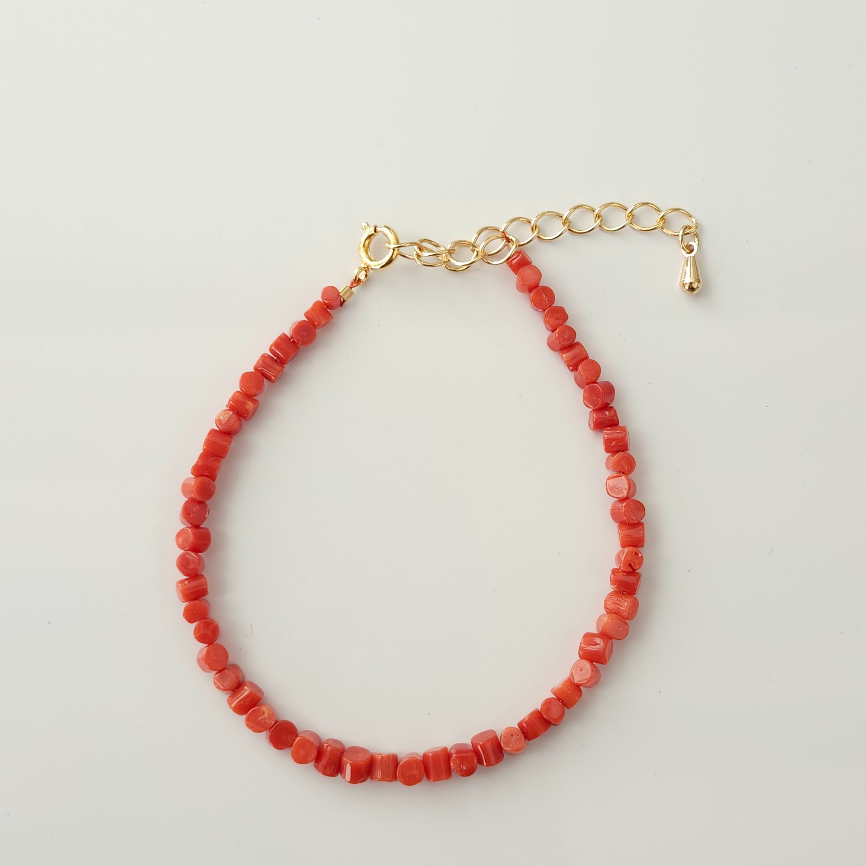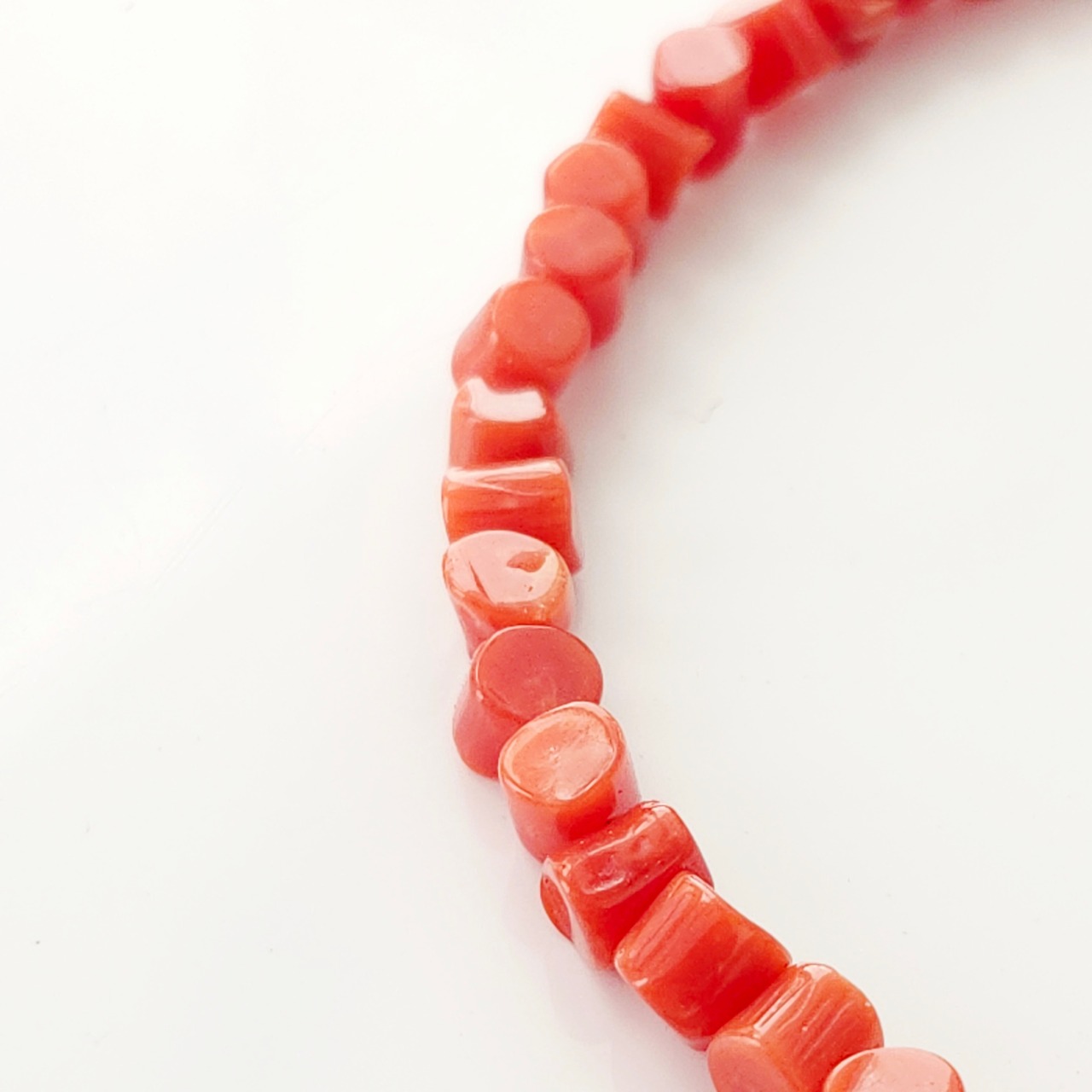 天然の赤珊瑚の色合いと光沢が美しいブレスレットです。