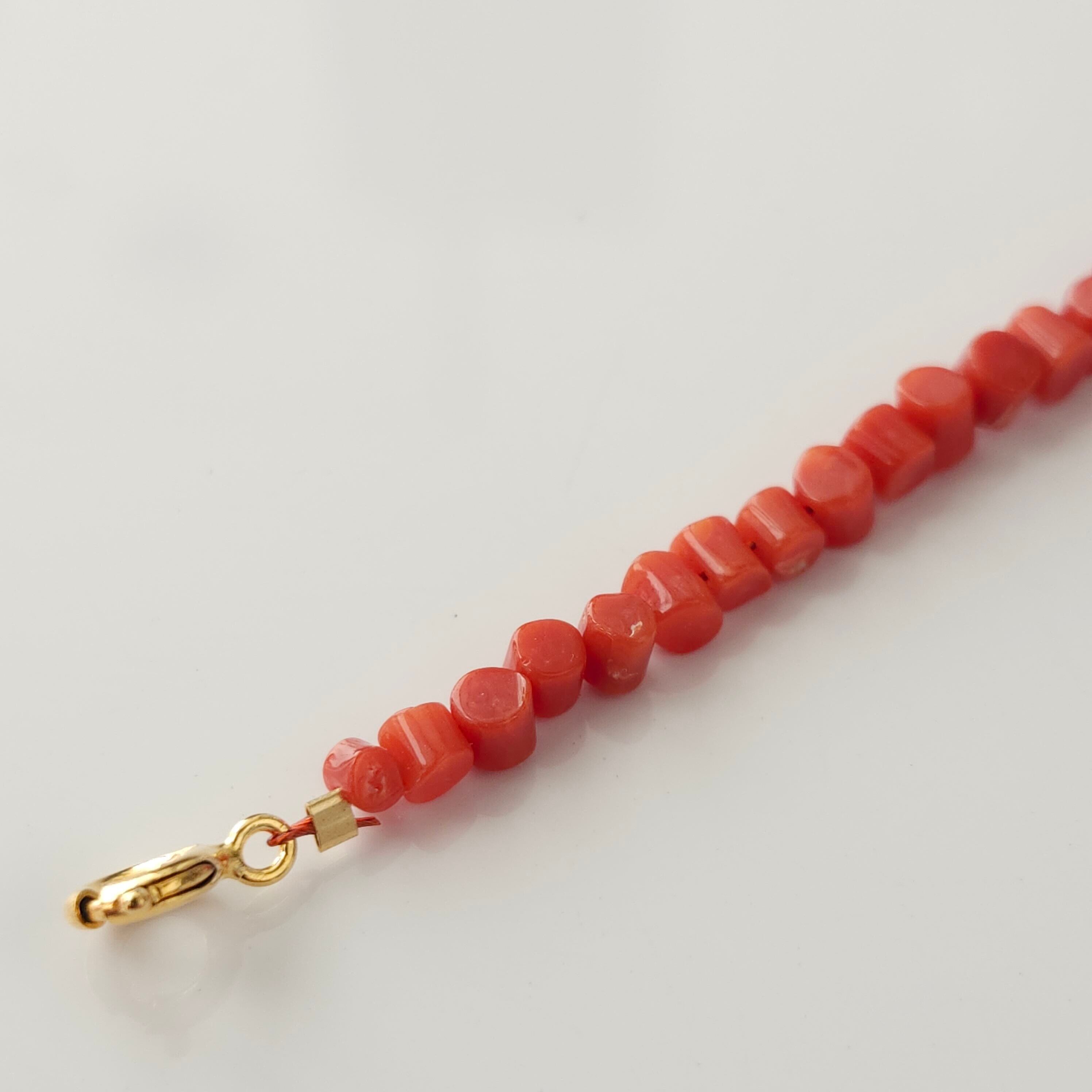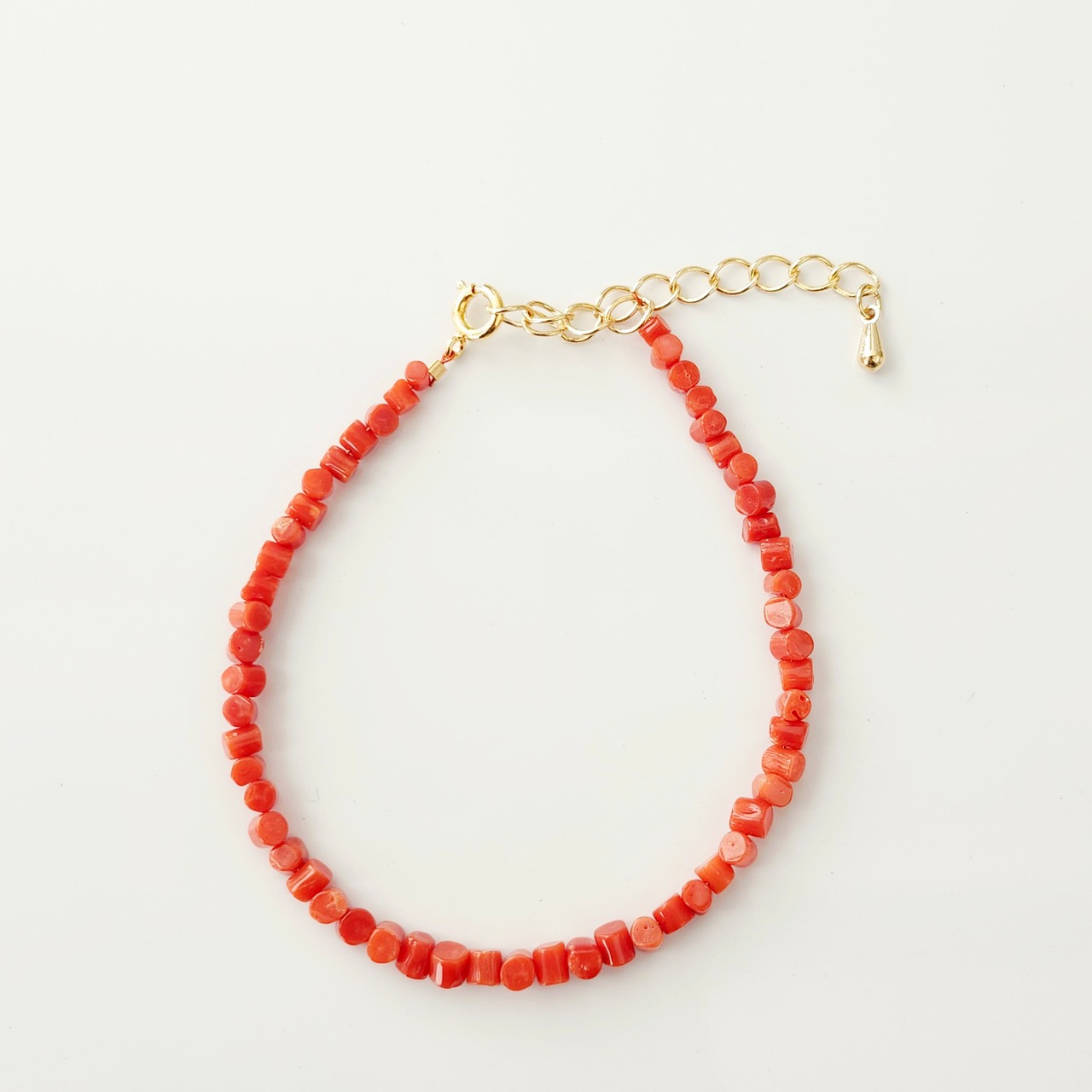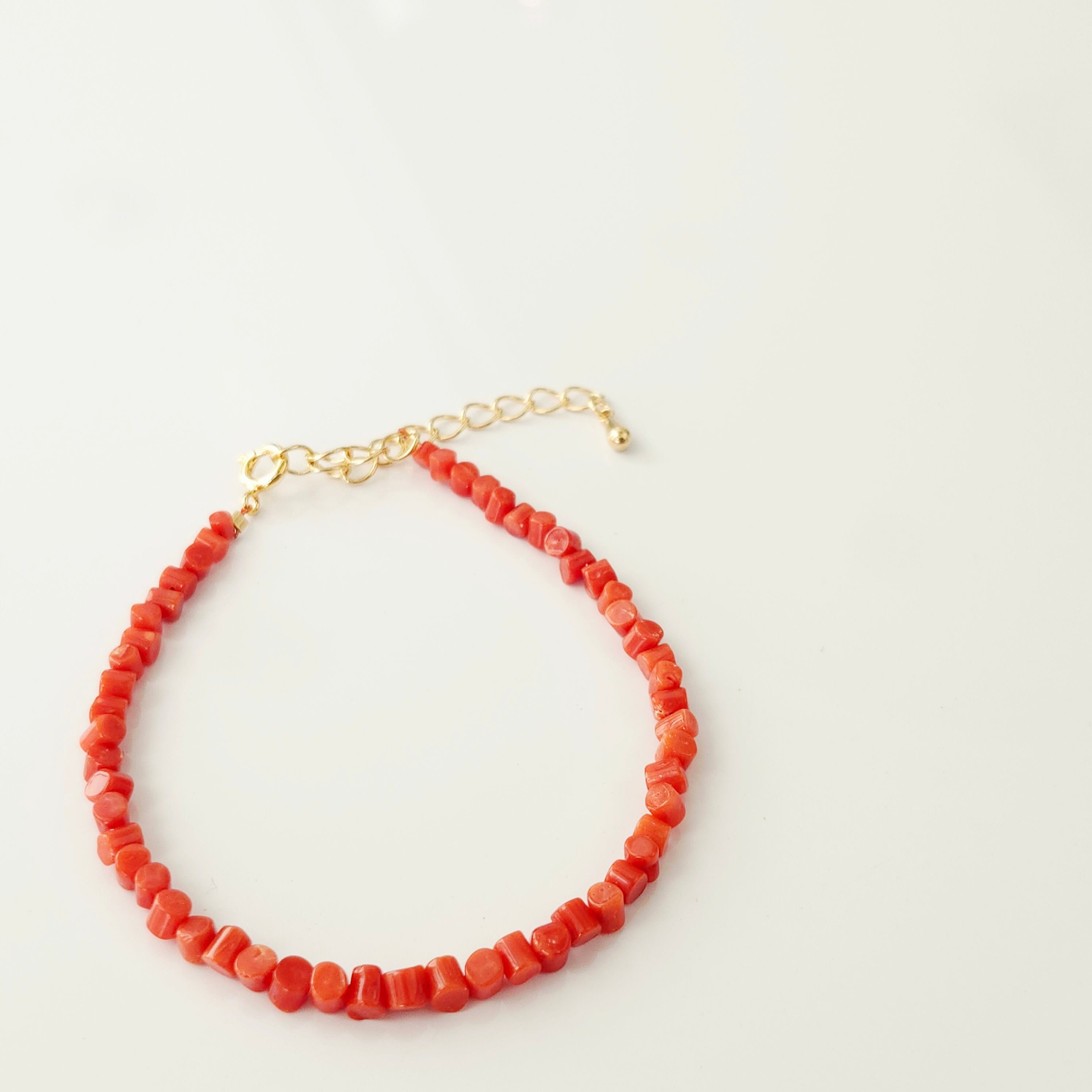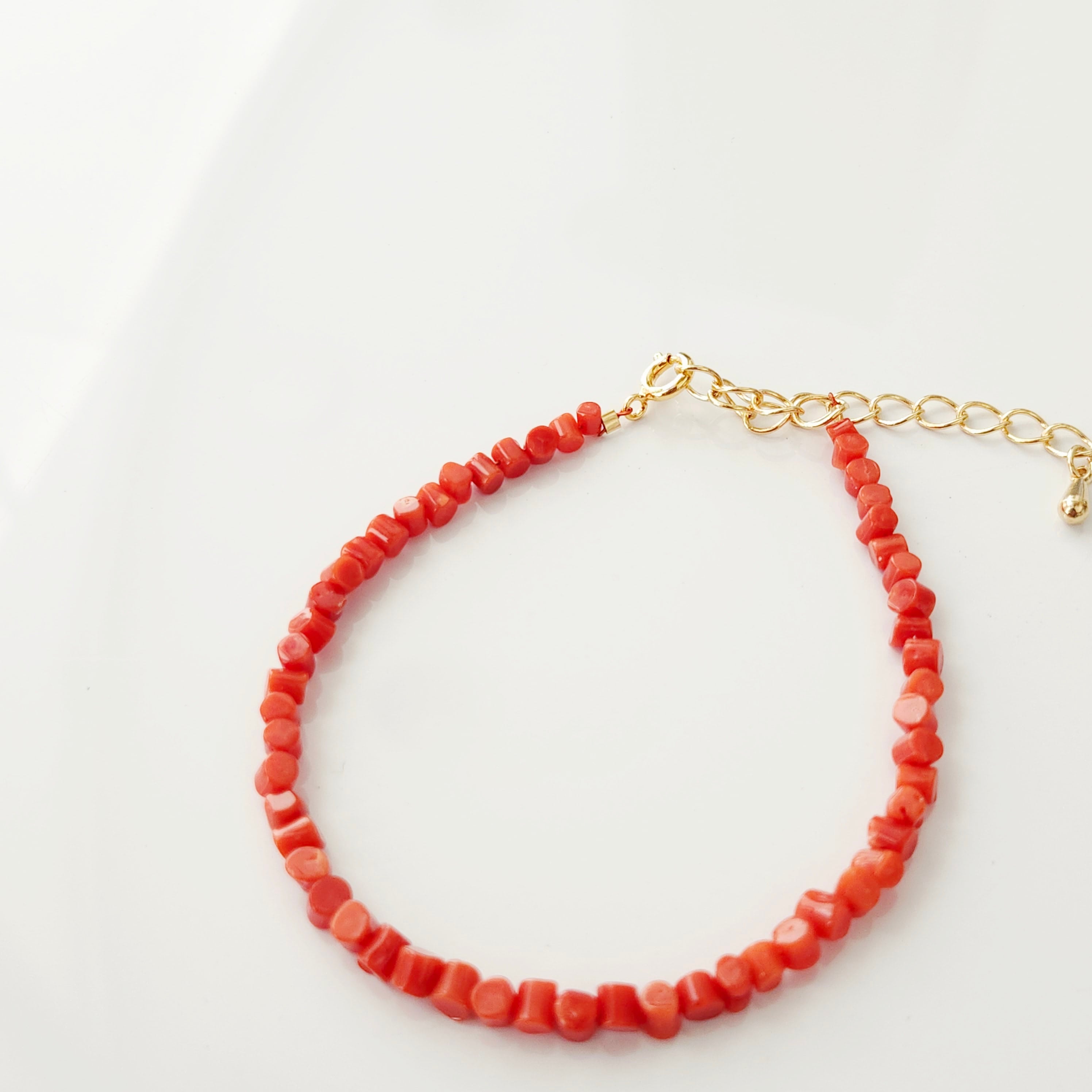 天然の赤珊瑚の色合いと光沢が美しいブレスレットです。