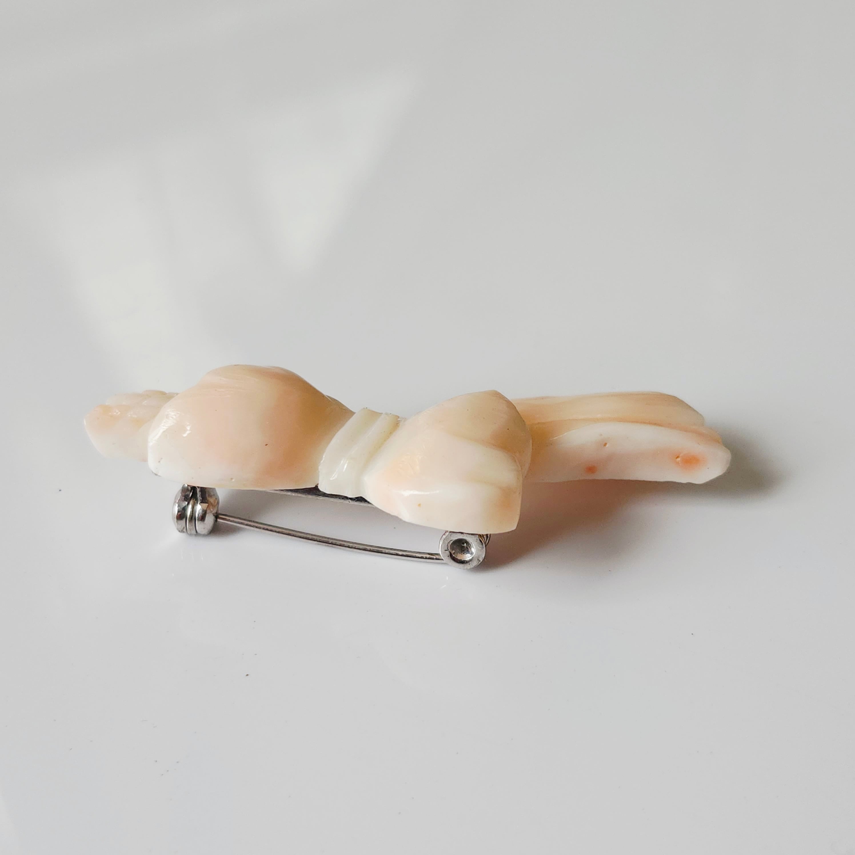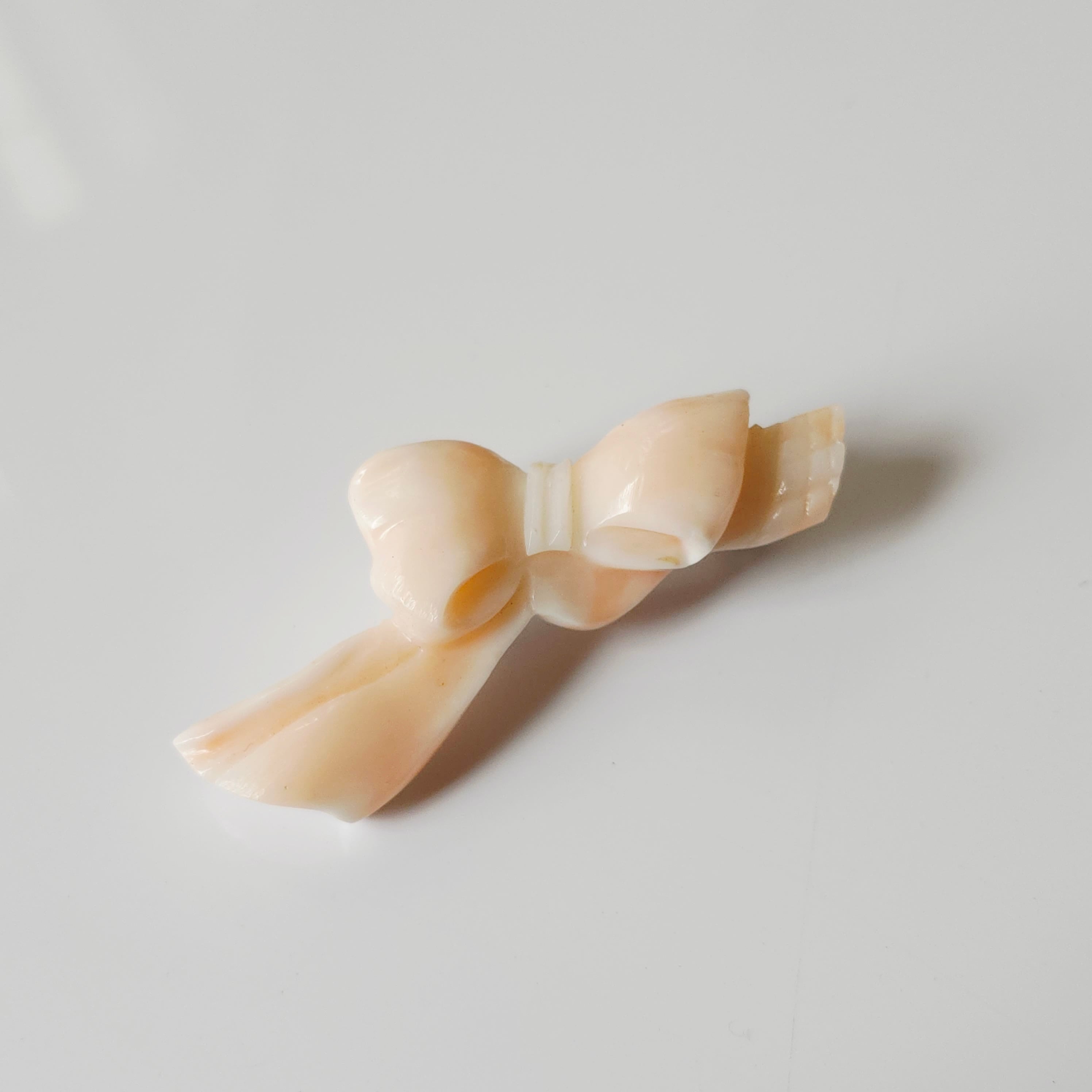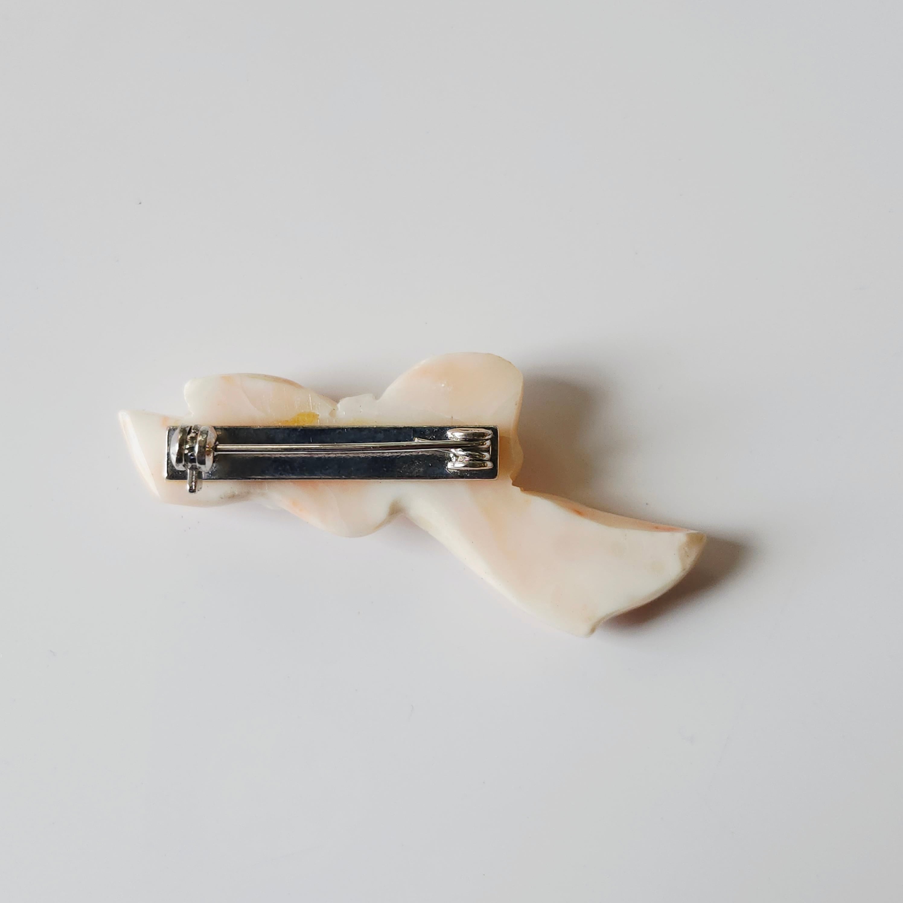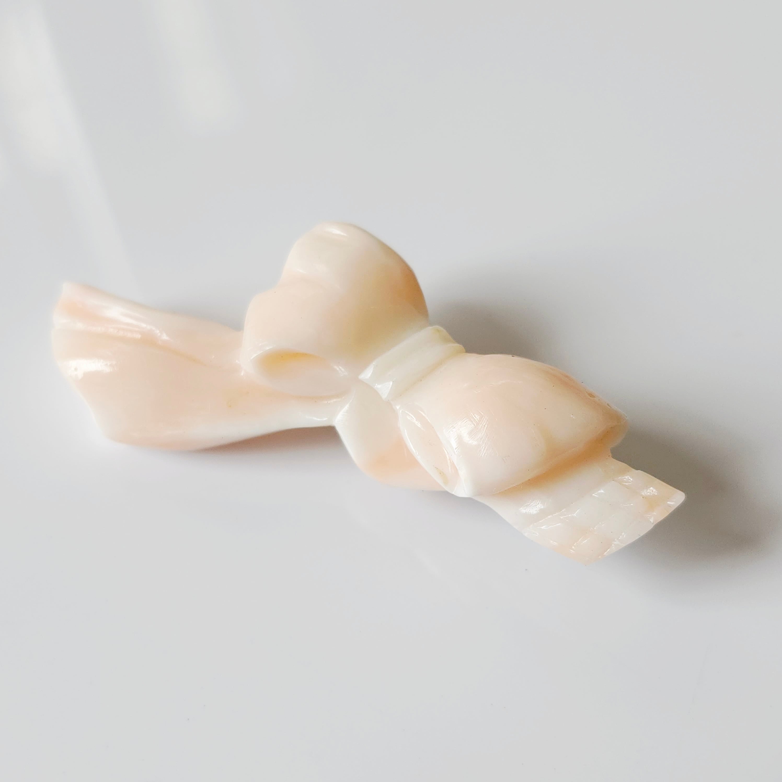 深海珊瑚をリボンのように彫刻し製作したブローチです。