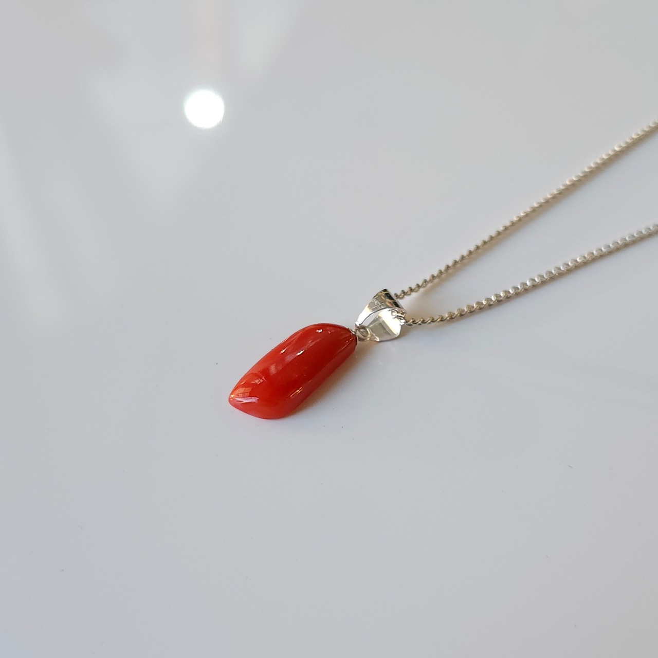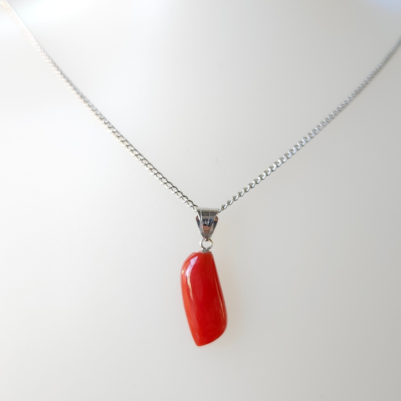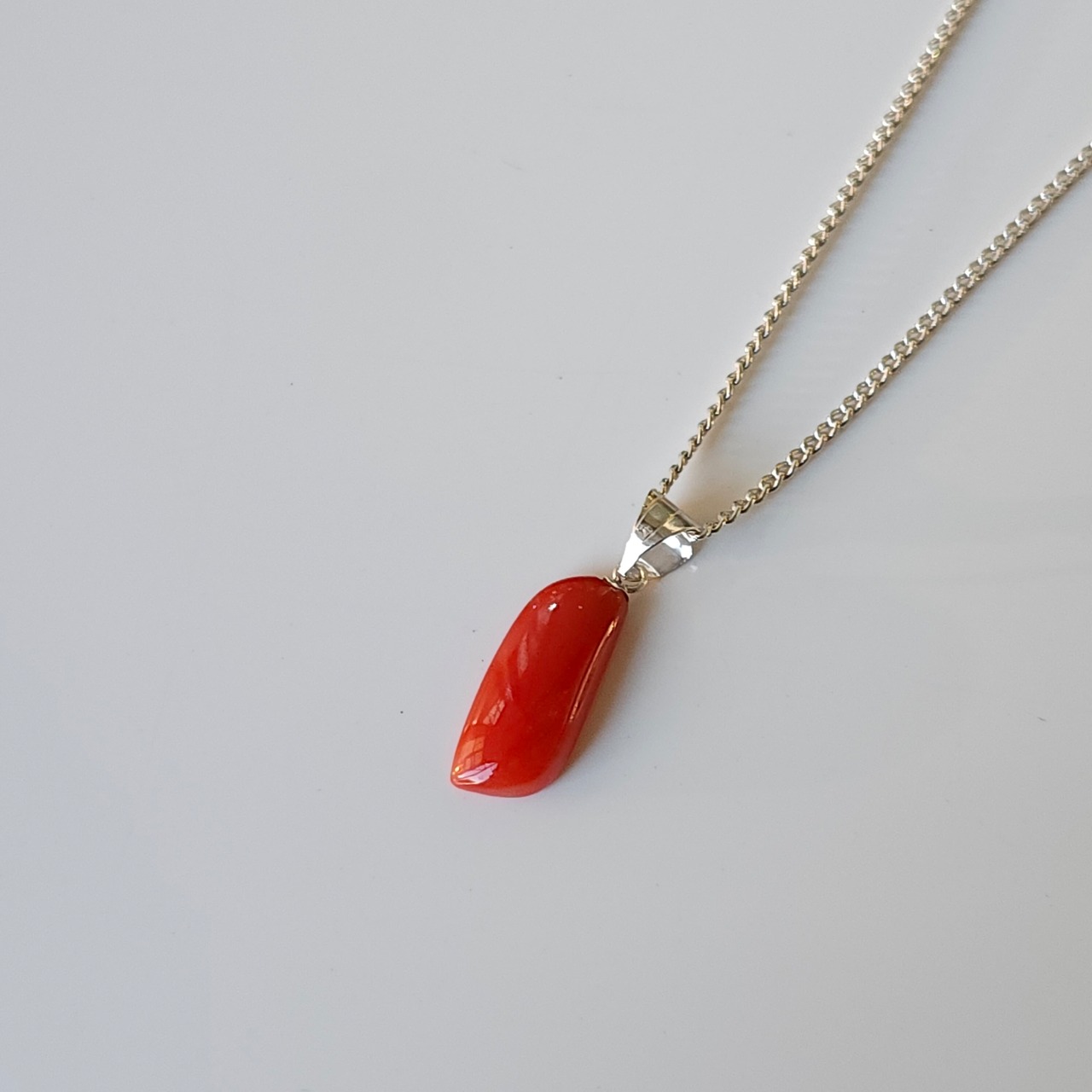 色の濃い綺麗な赤珊瑚のペンダントです。