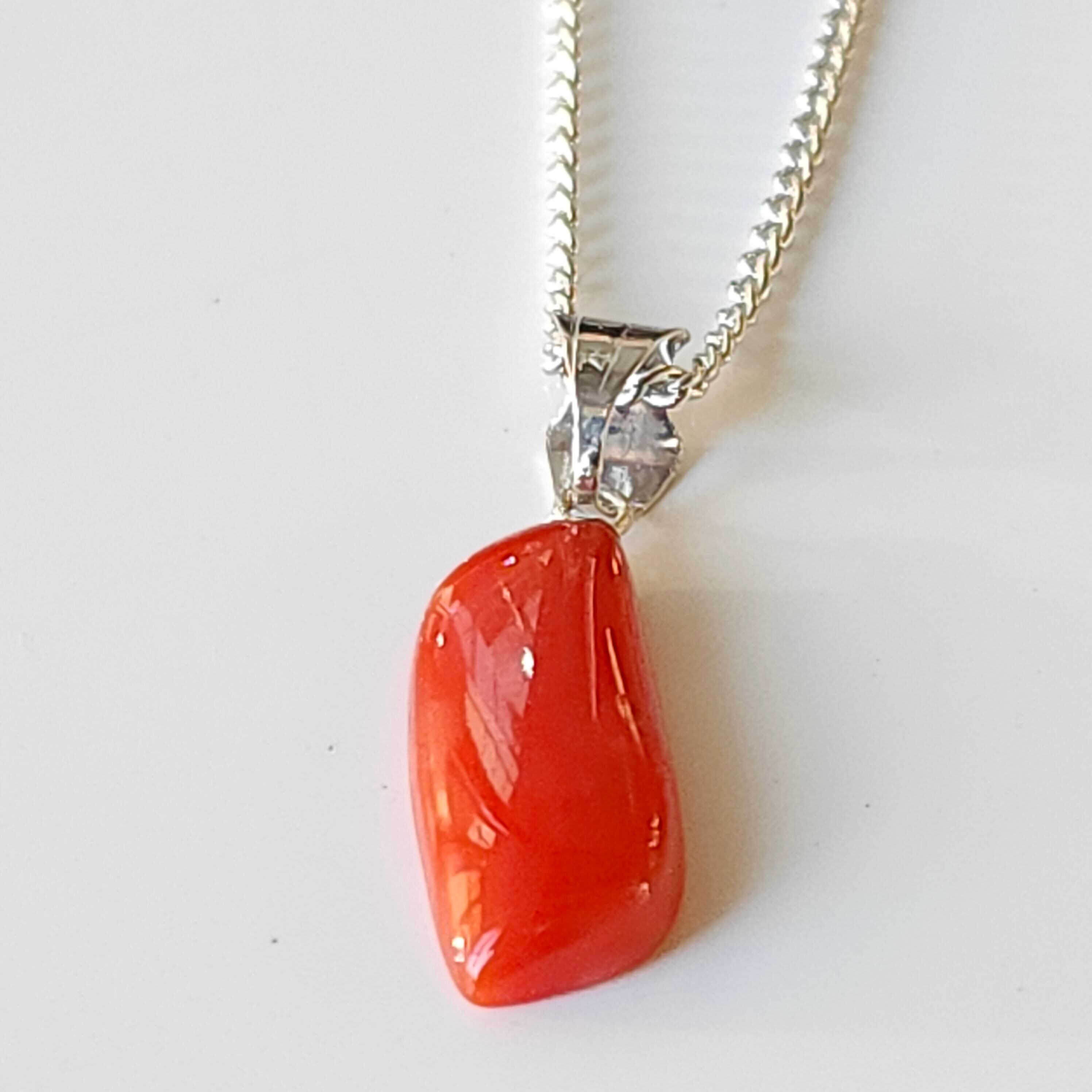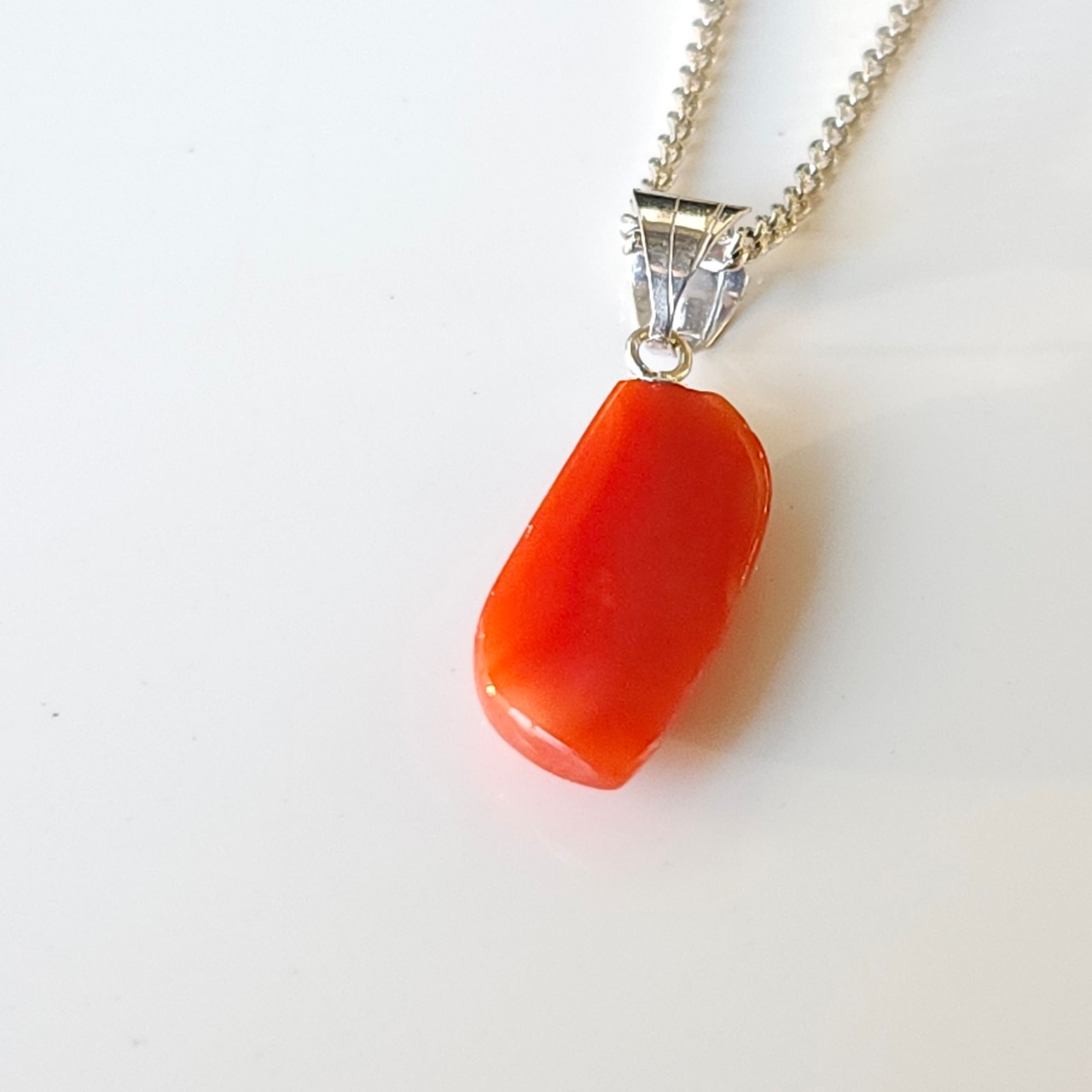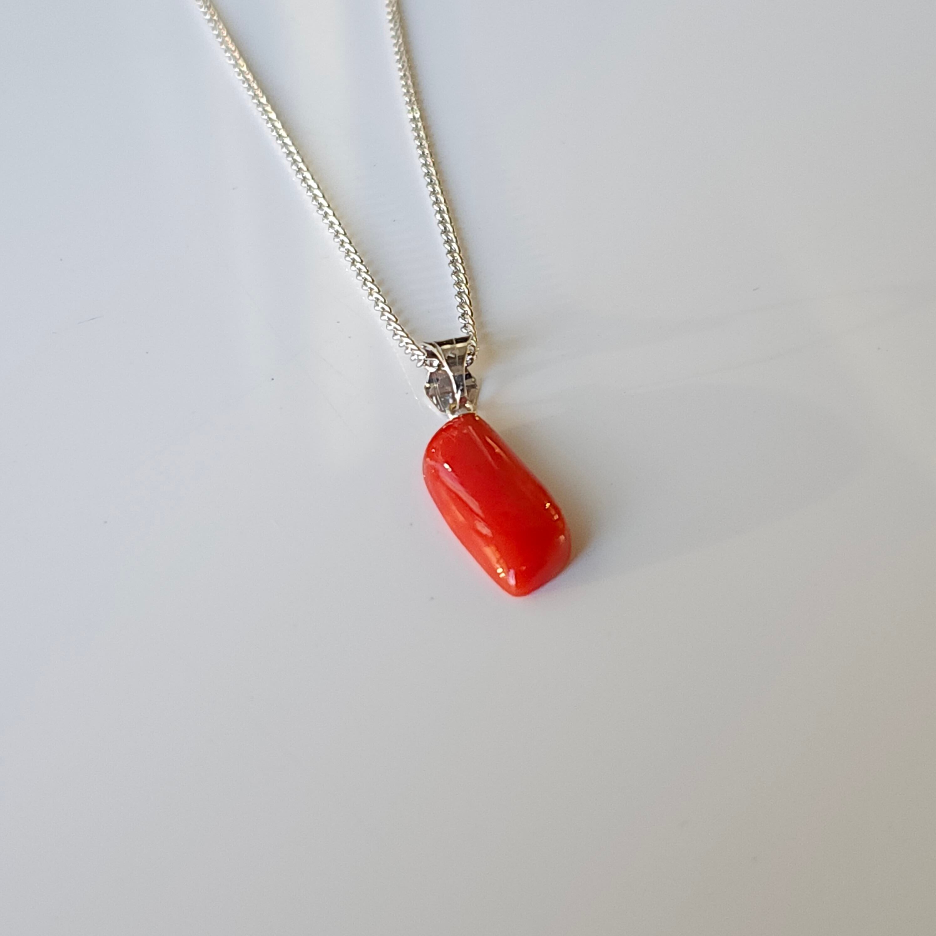 色の濃い綺麗な赤珊瑚のペンダントです。