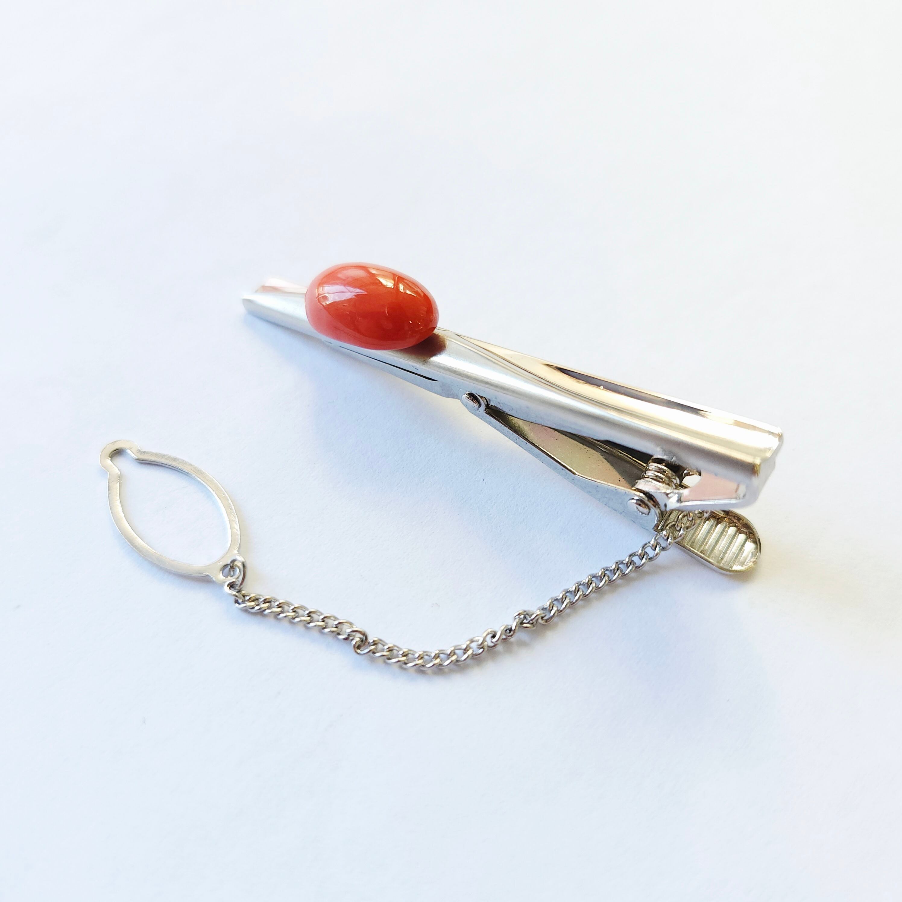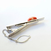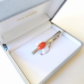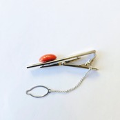 色の濃い桃色珊瑚のネクタイ止めです。