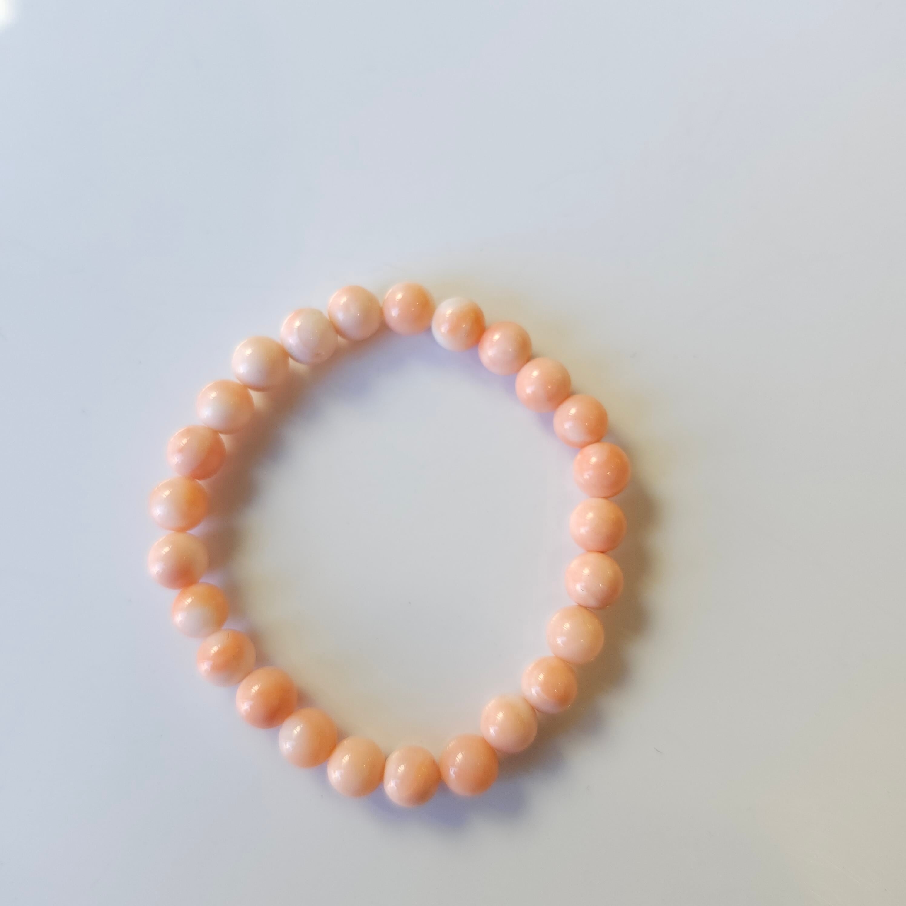 赤ちゃんの肌に寄り添う優しい色合いの珊瑚を使用しております。
