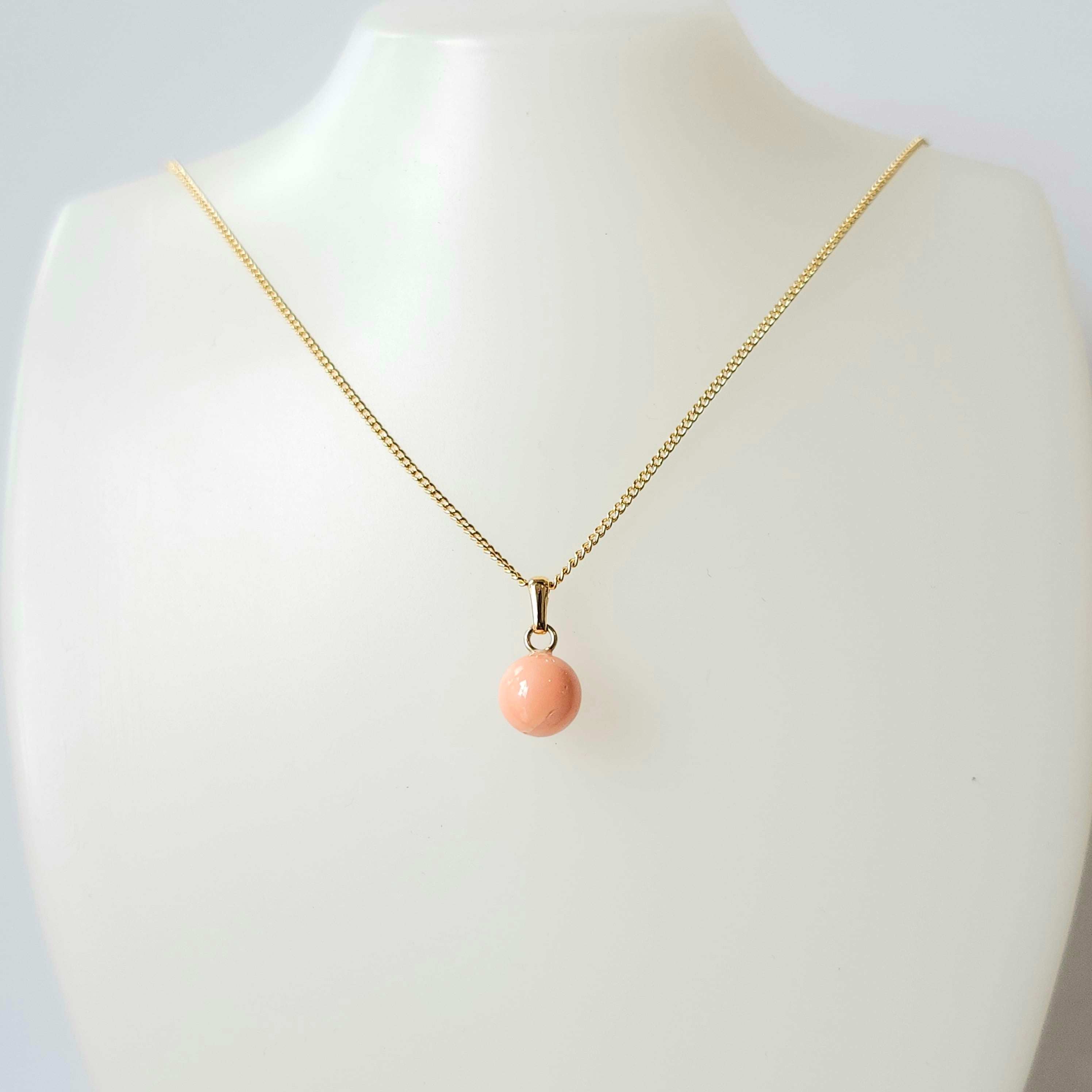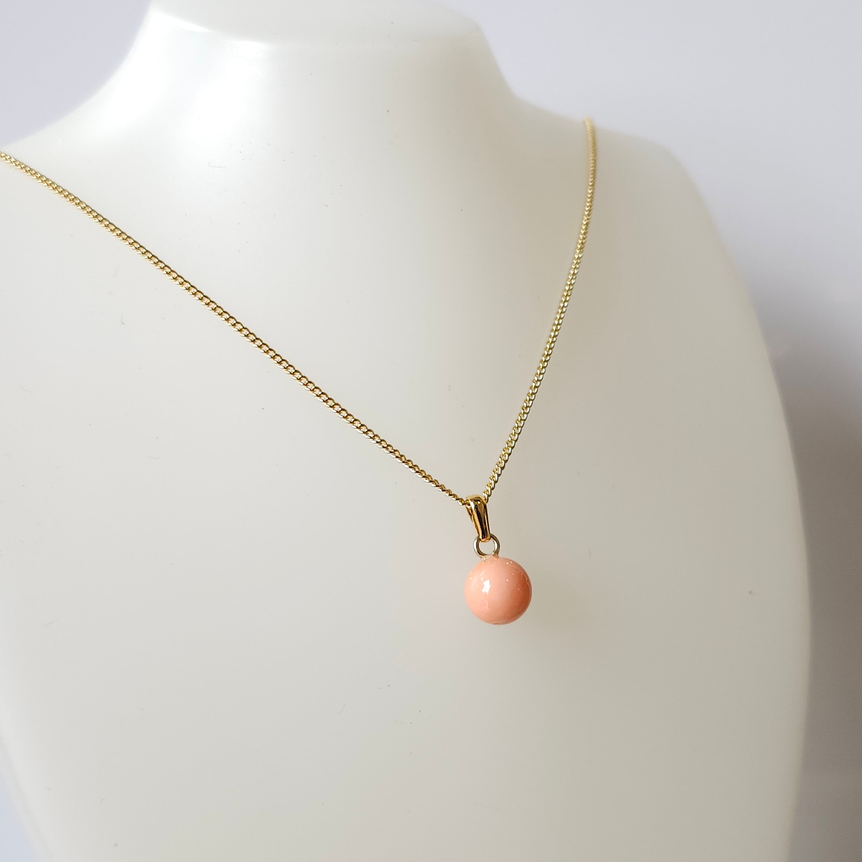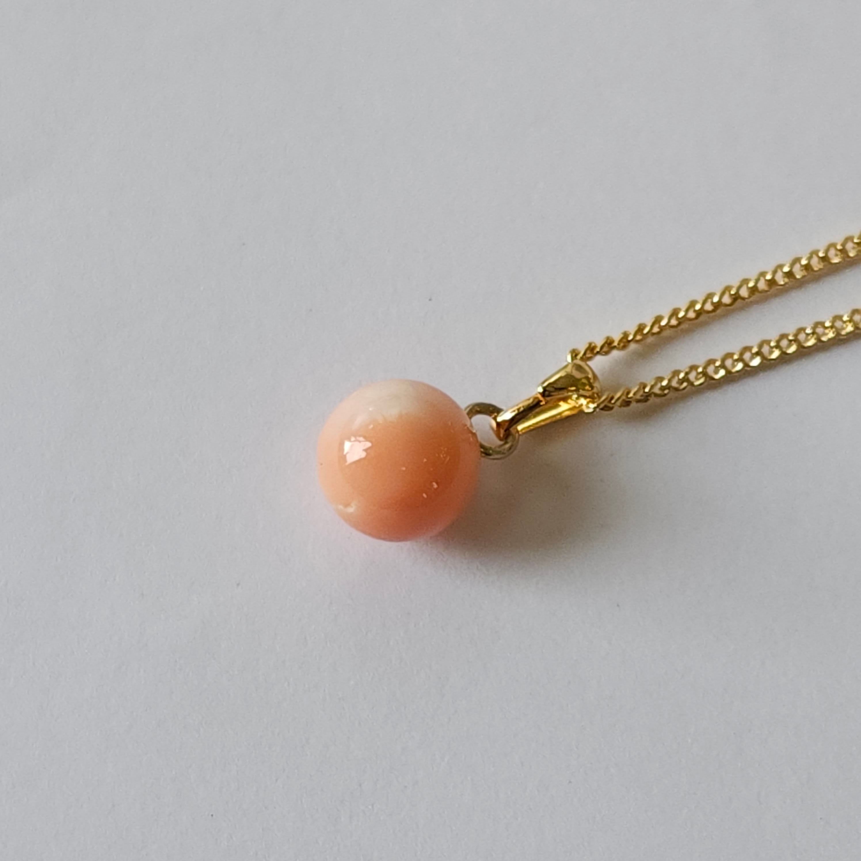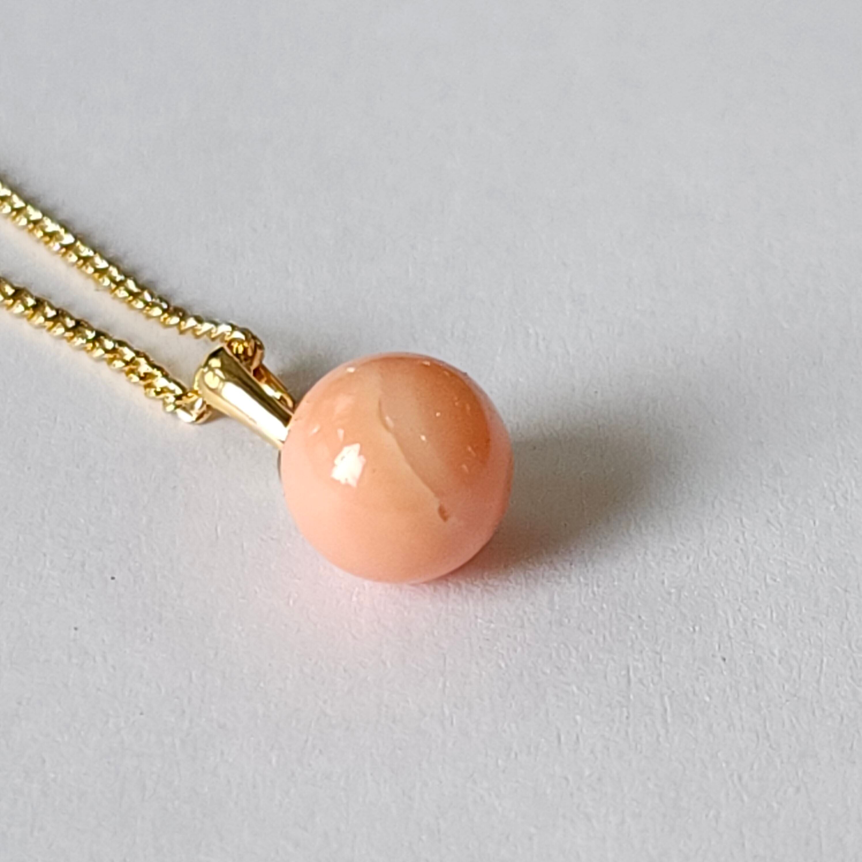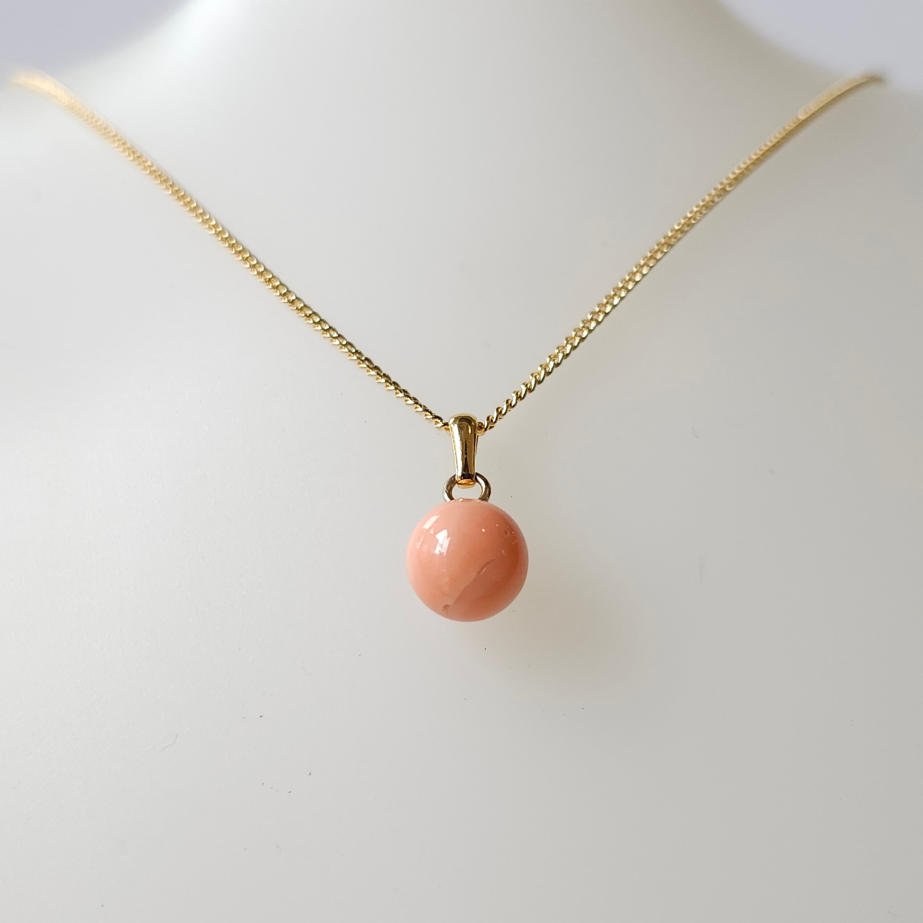 深海珊瑚玉のシンプルなペンダントです♪