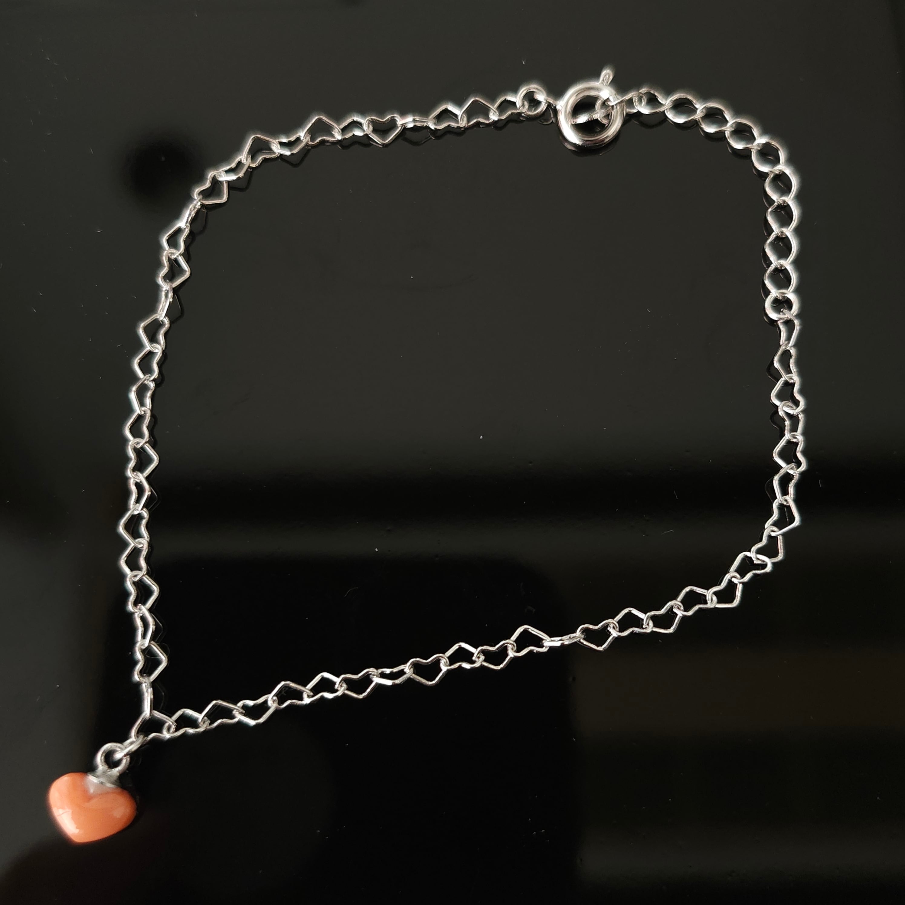 ハートのチェーンブレスレットに合わせました。
