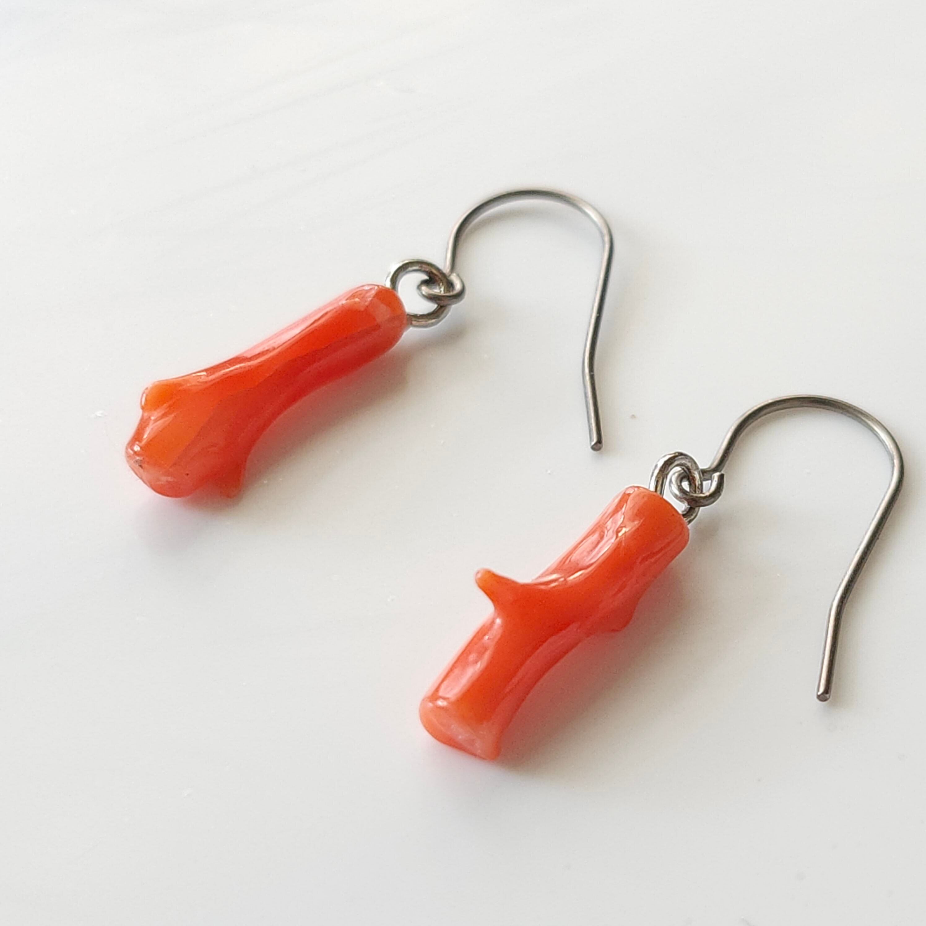 珊瑚の枝の形をそのまま活かしたピアスです。