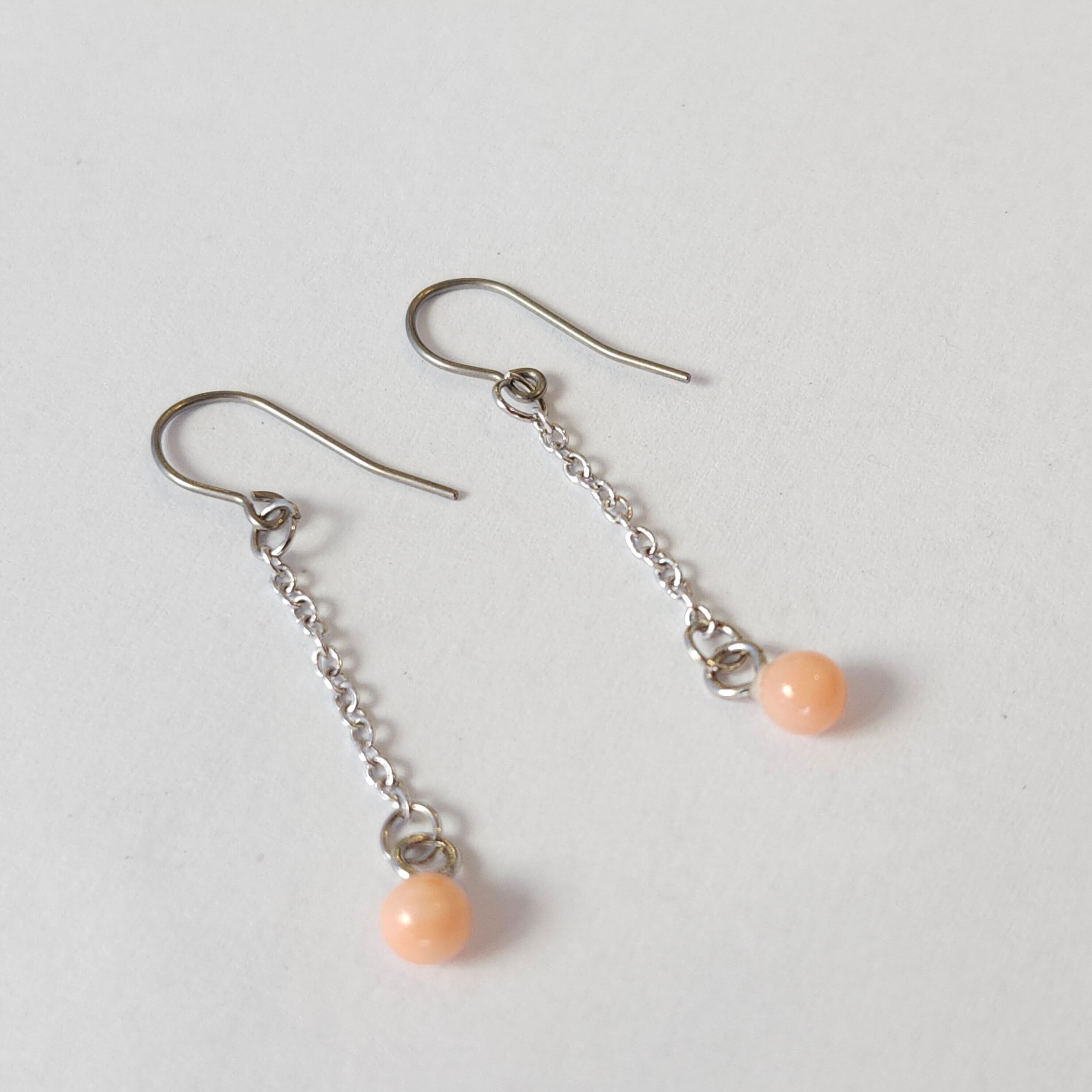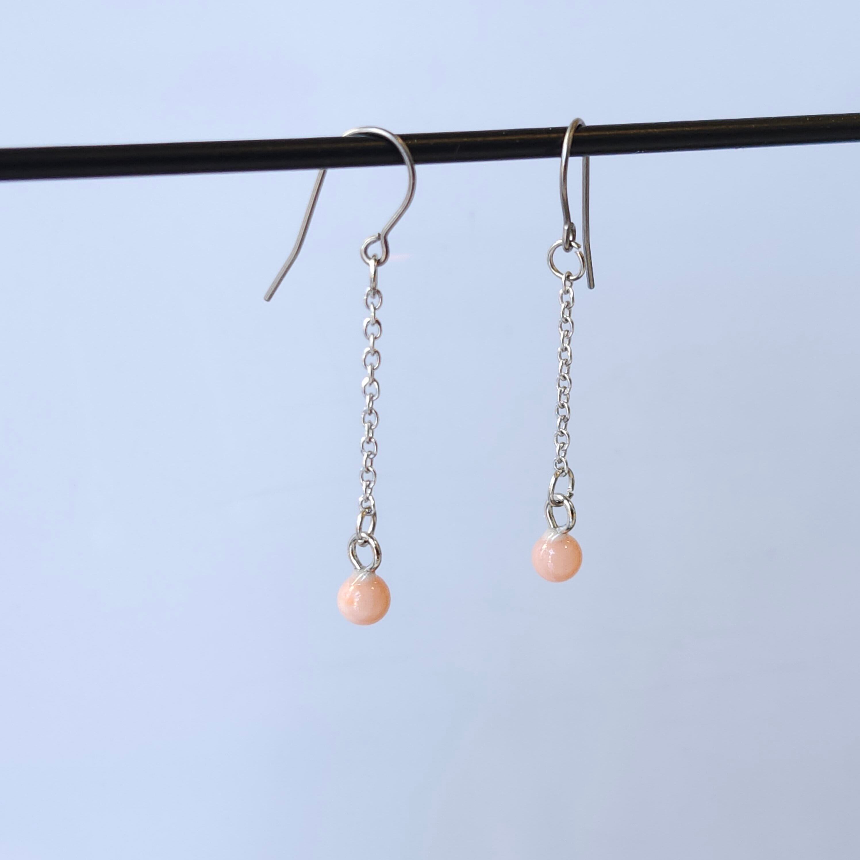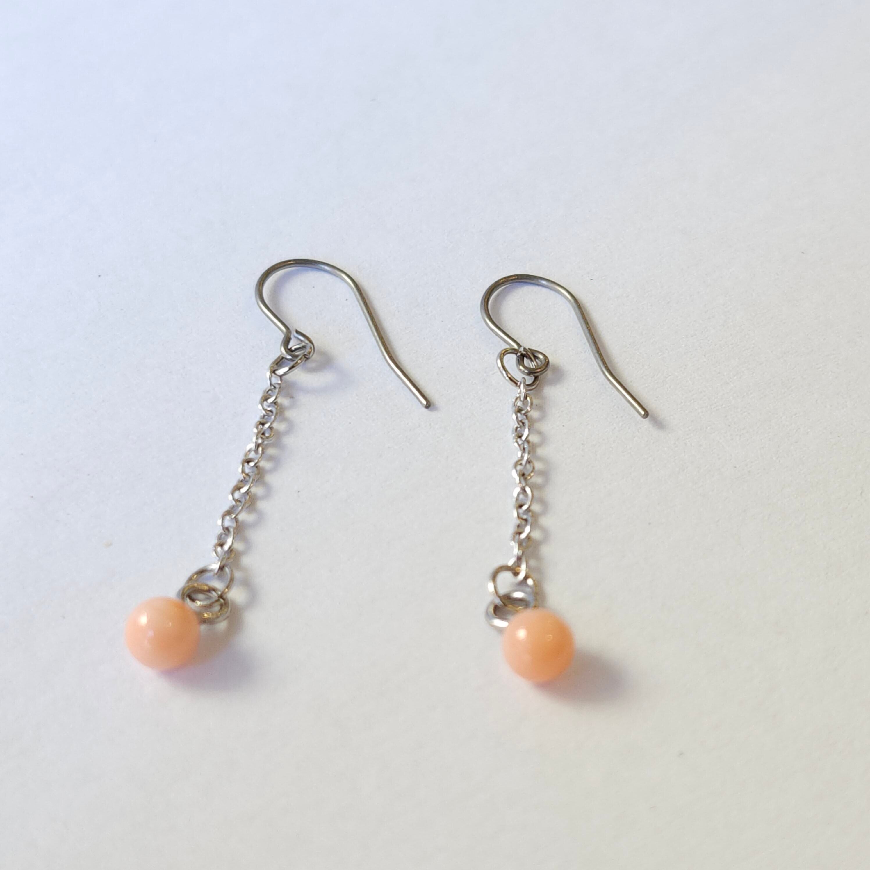 珊瑚玉チェーンピアス (チタン)048