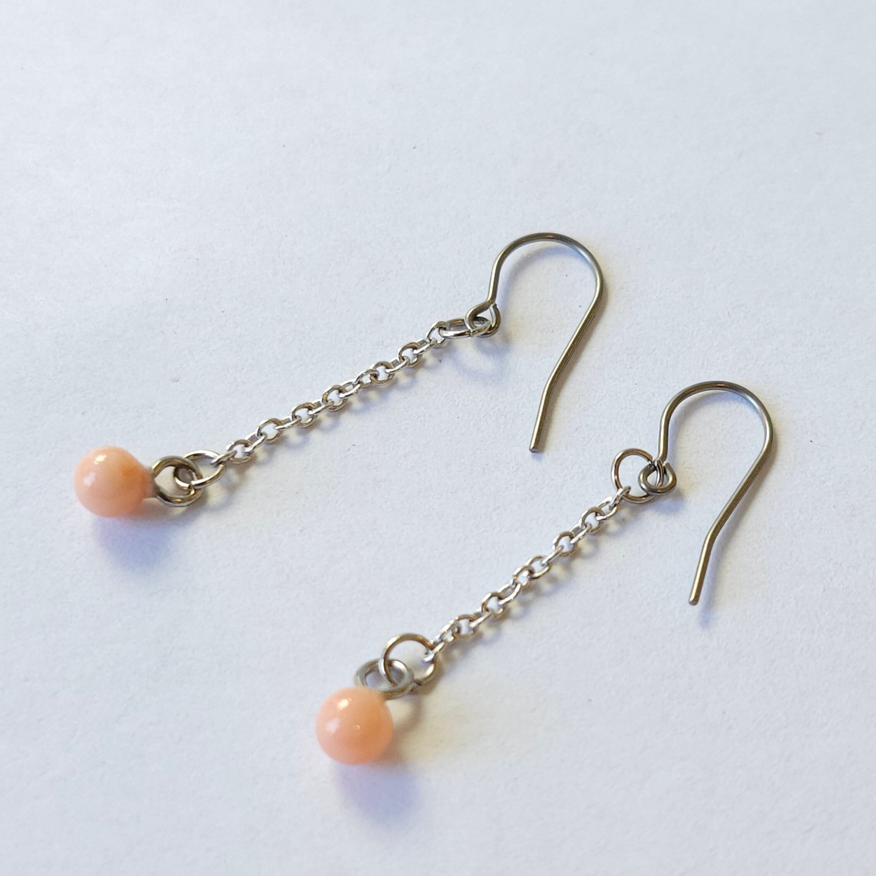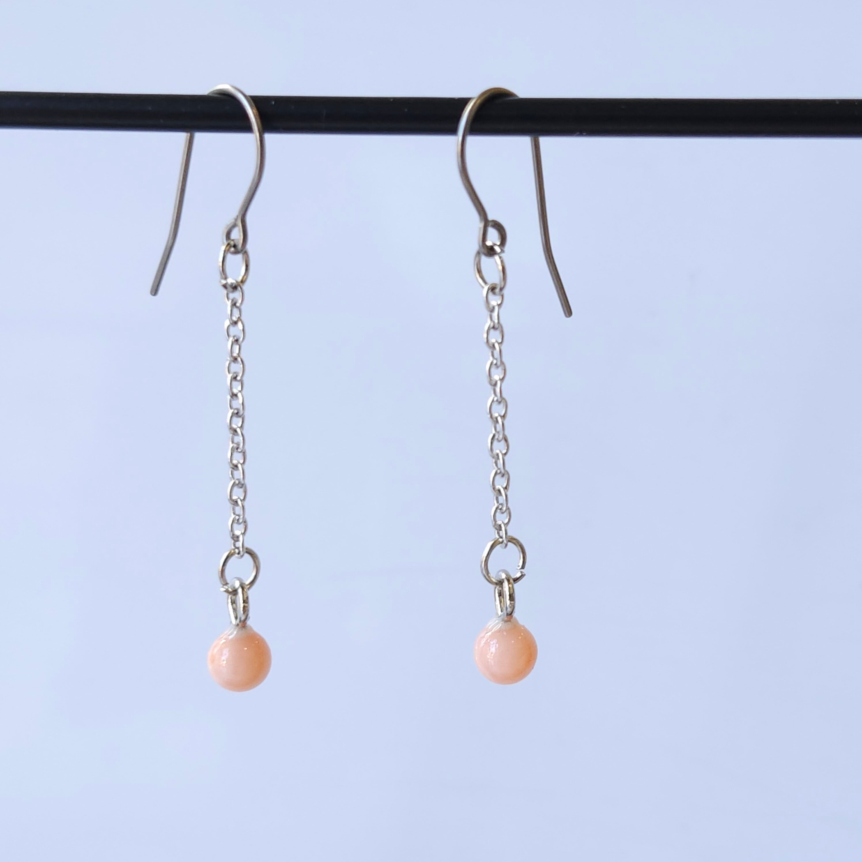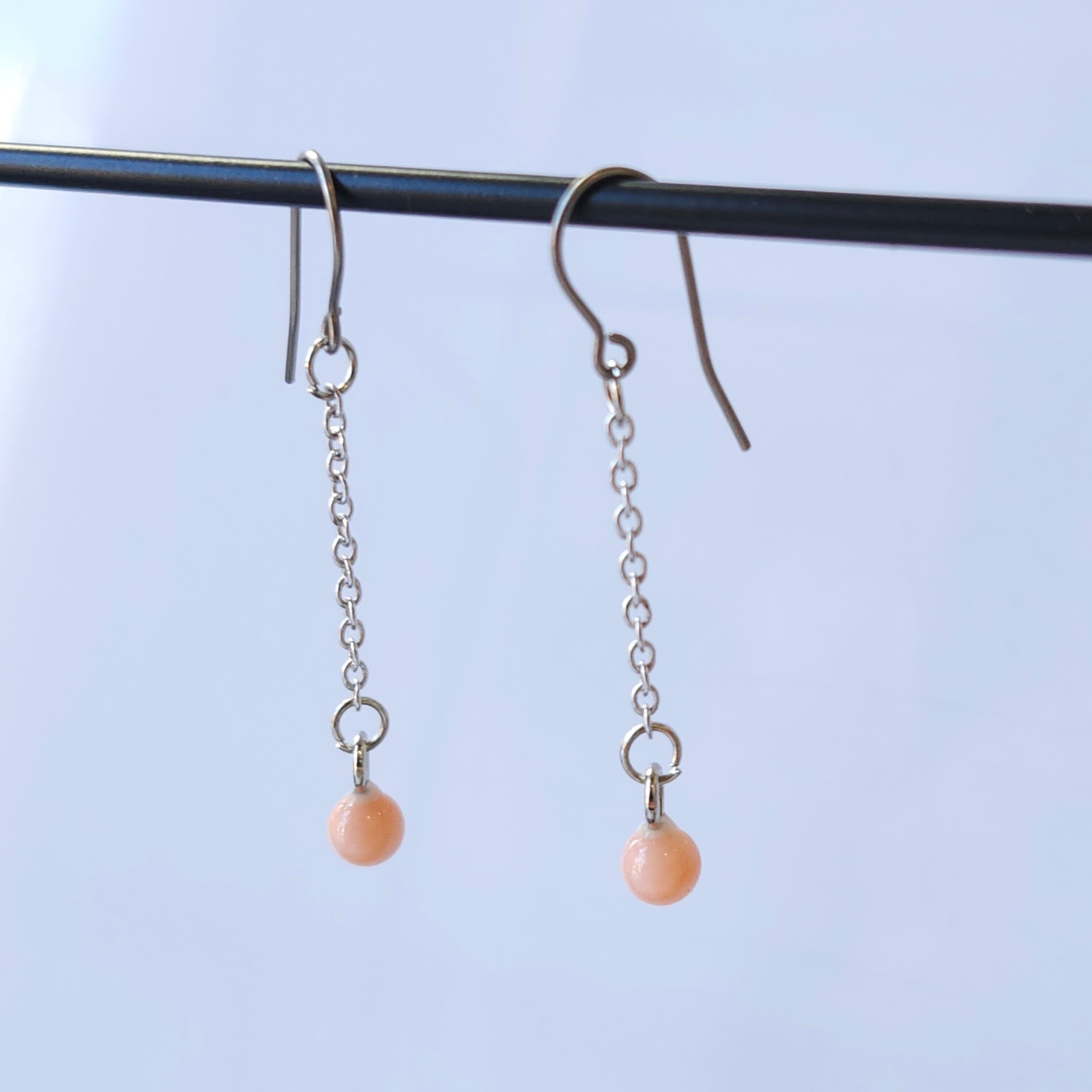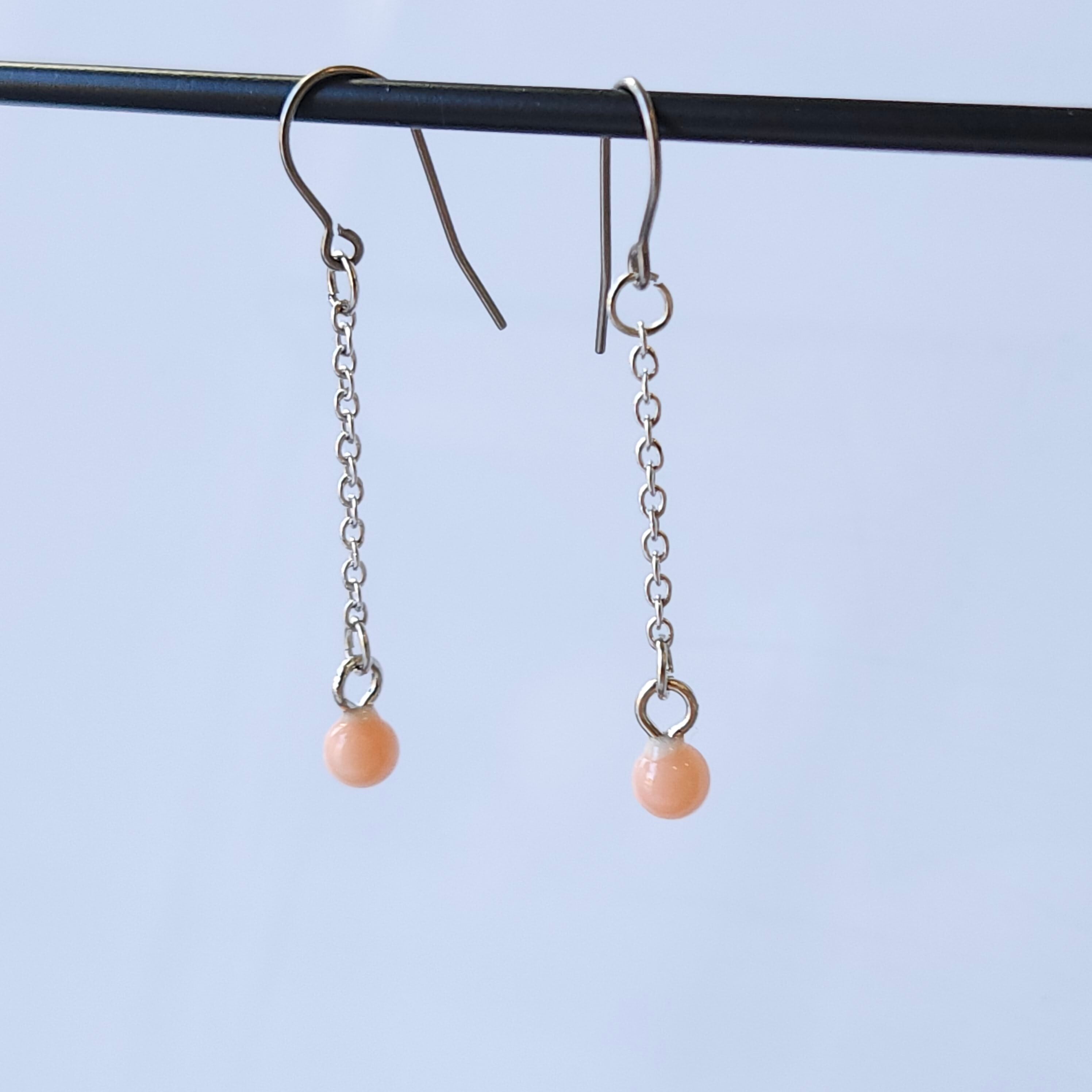珊瑚玉チェーンピアス (チタン)048