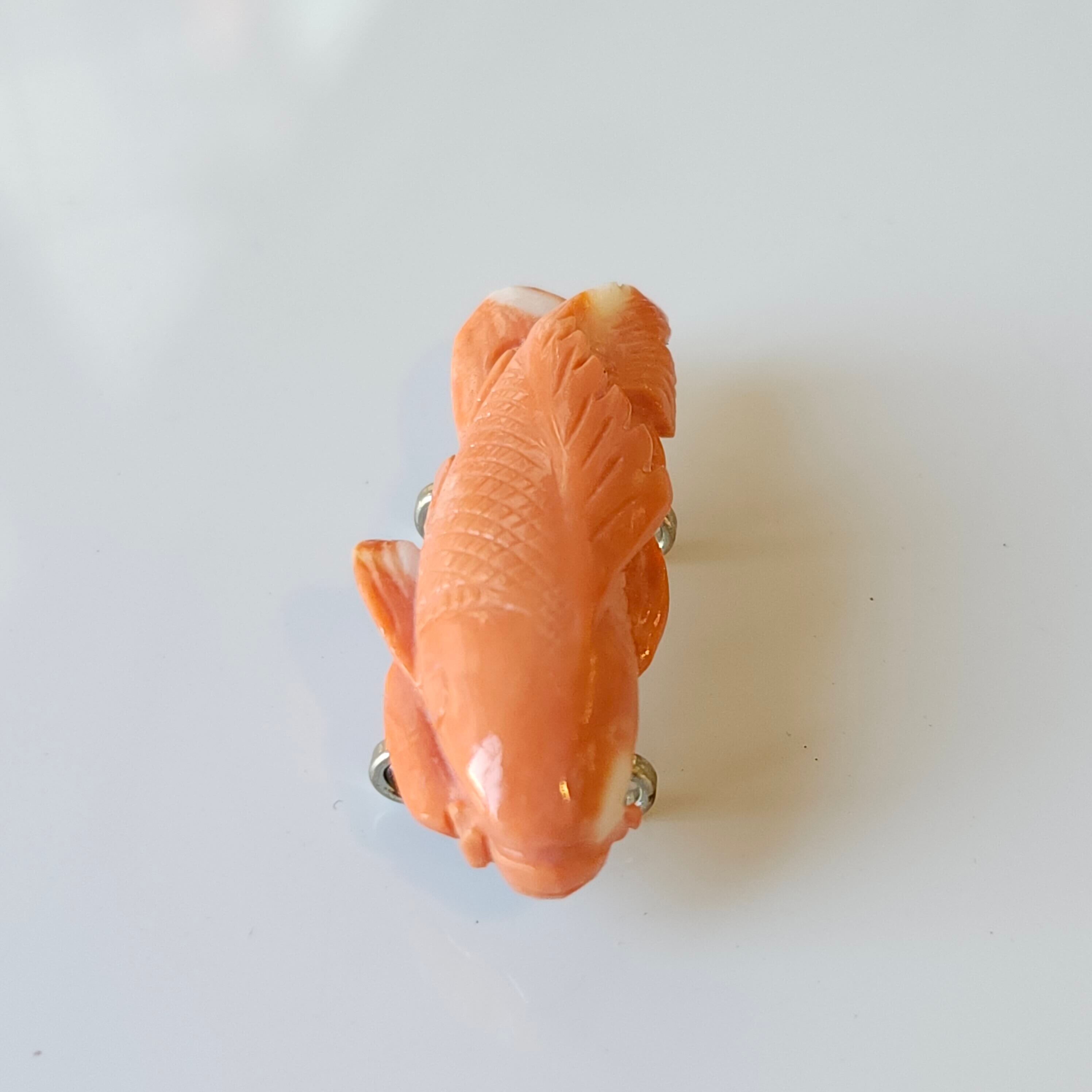 桃色珊瑚の色合いが彫の陰影をはっきりとさせております。