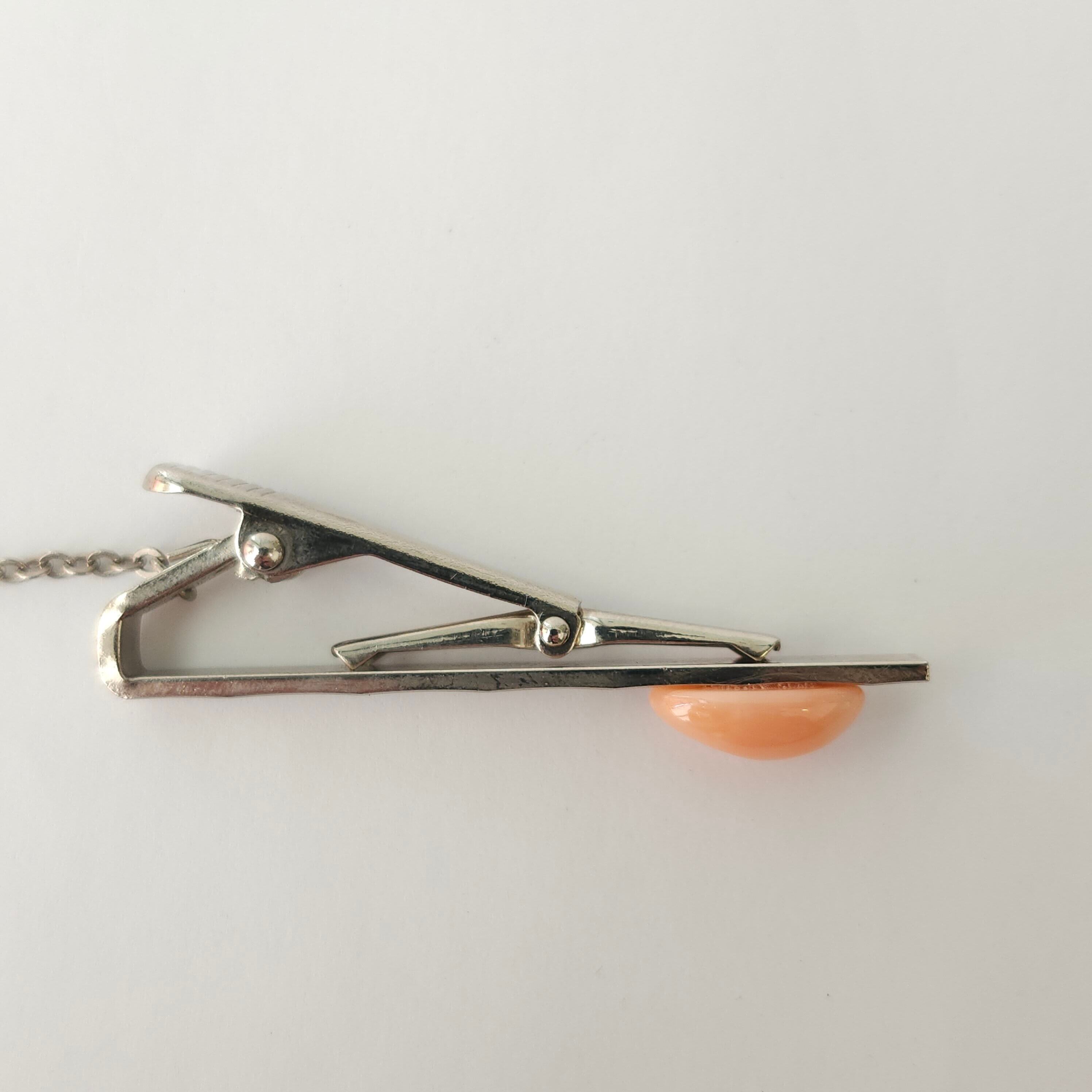 楕円形の珊瑚を配したシンプルなタイ止めです。