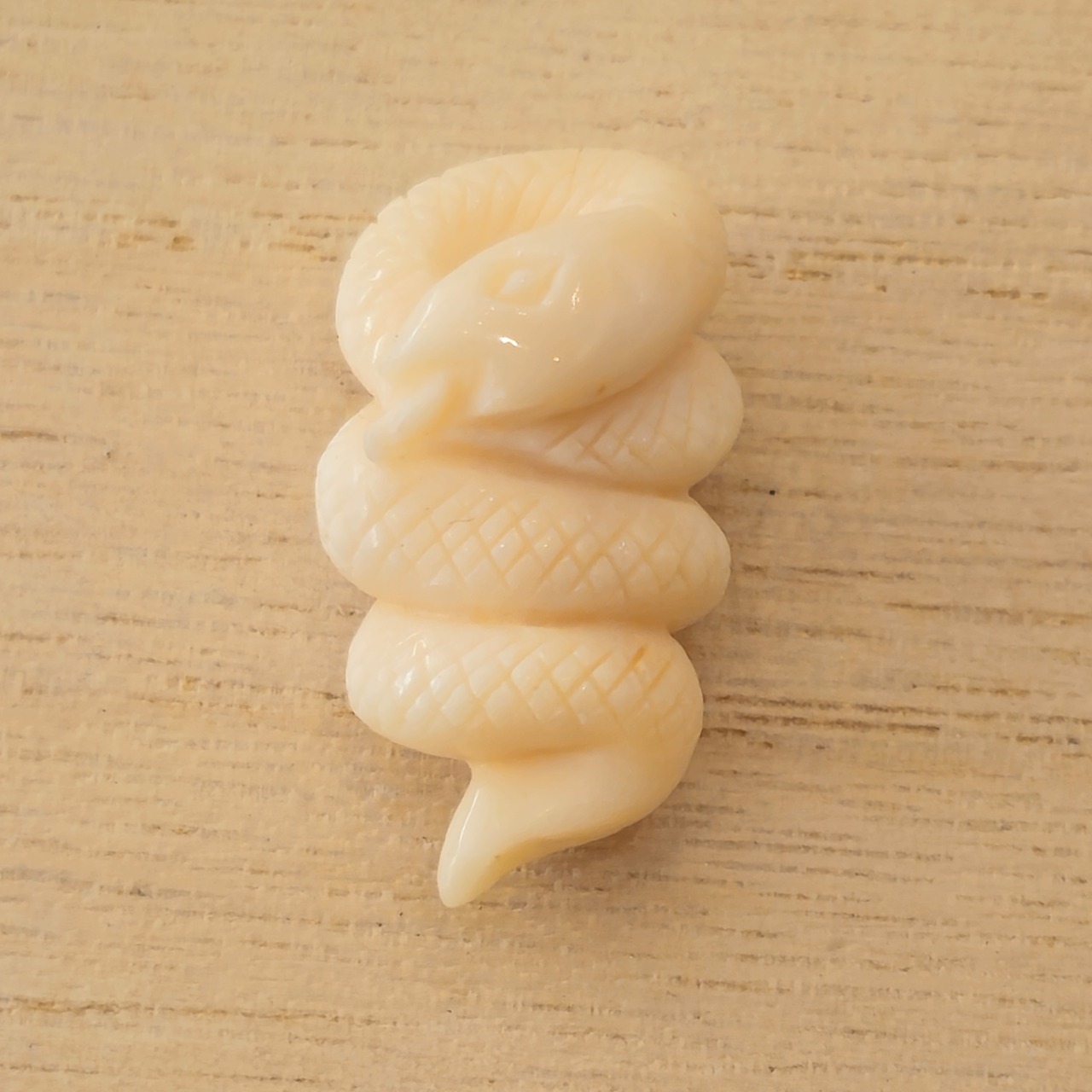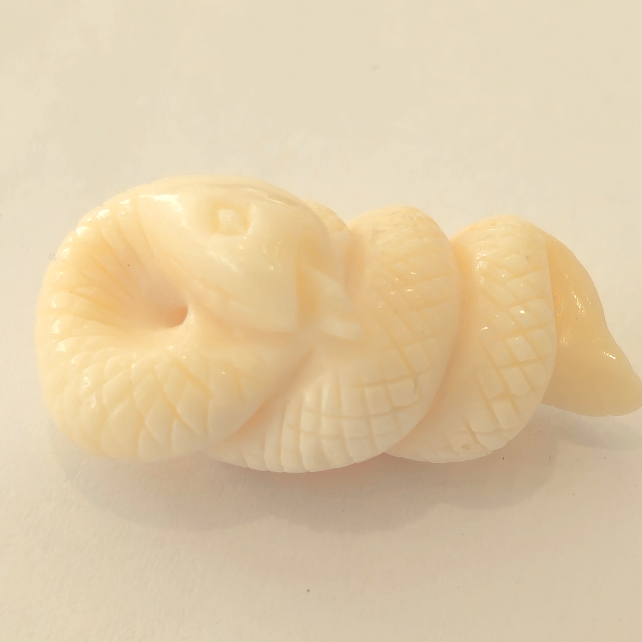 白珊瑚で製作した蛇の彫刻です。