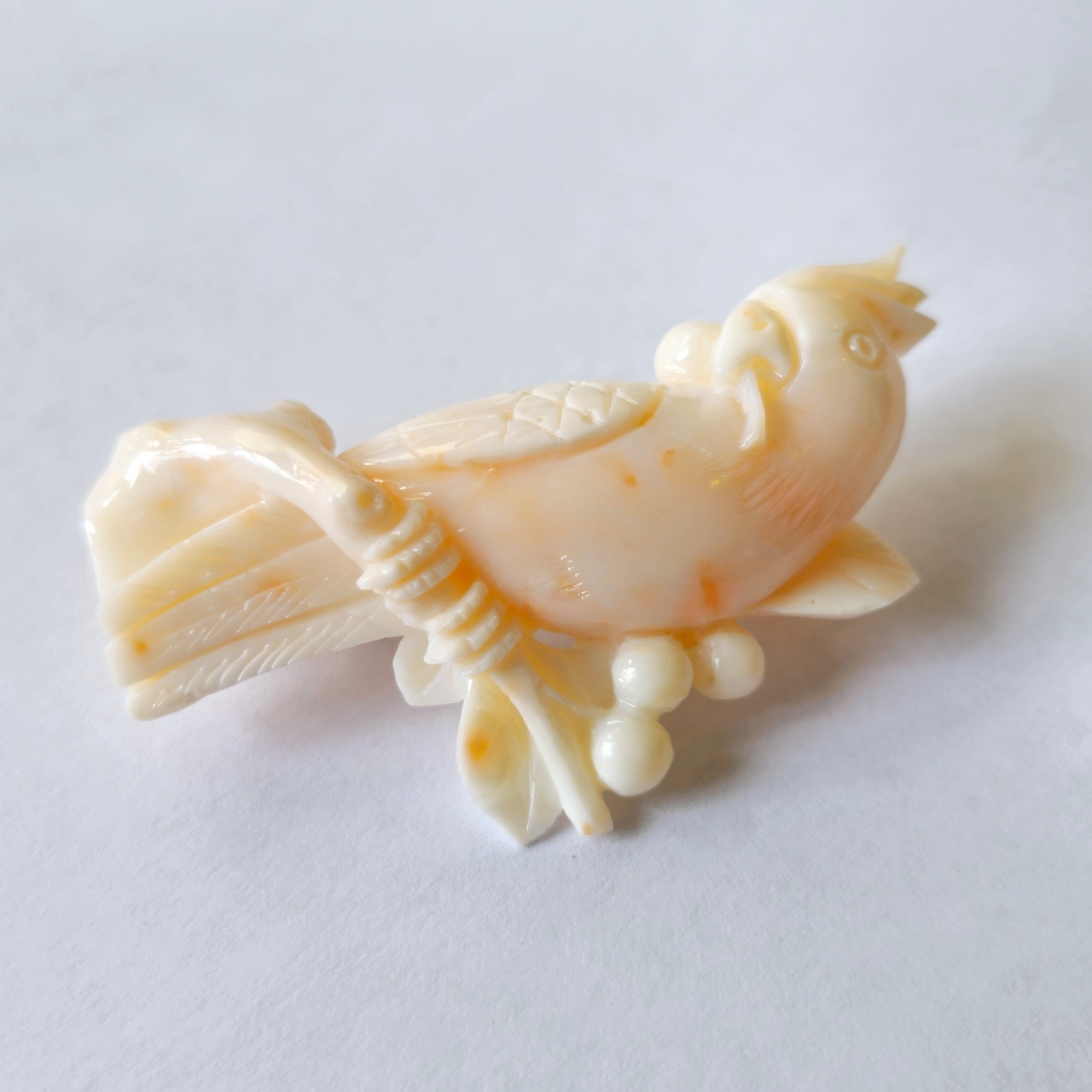 オウム 珊瑚彫刻ブローチ 018 【商品紹介動画が商品説明からご覧いただけます】