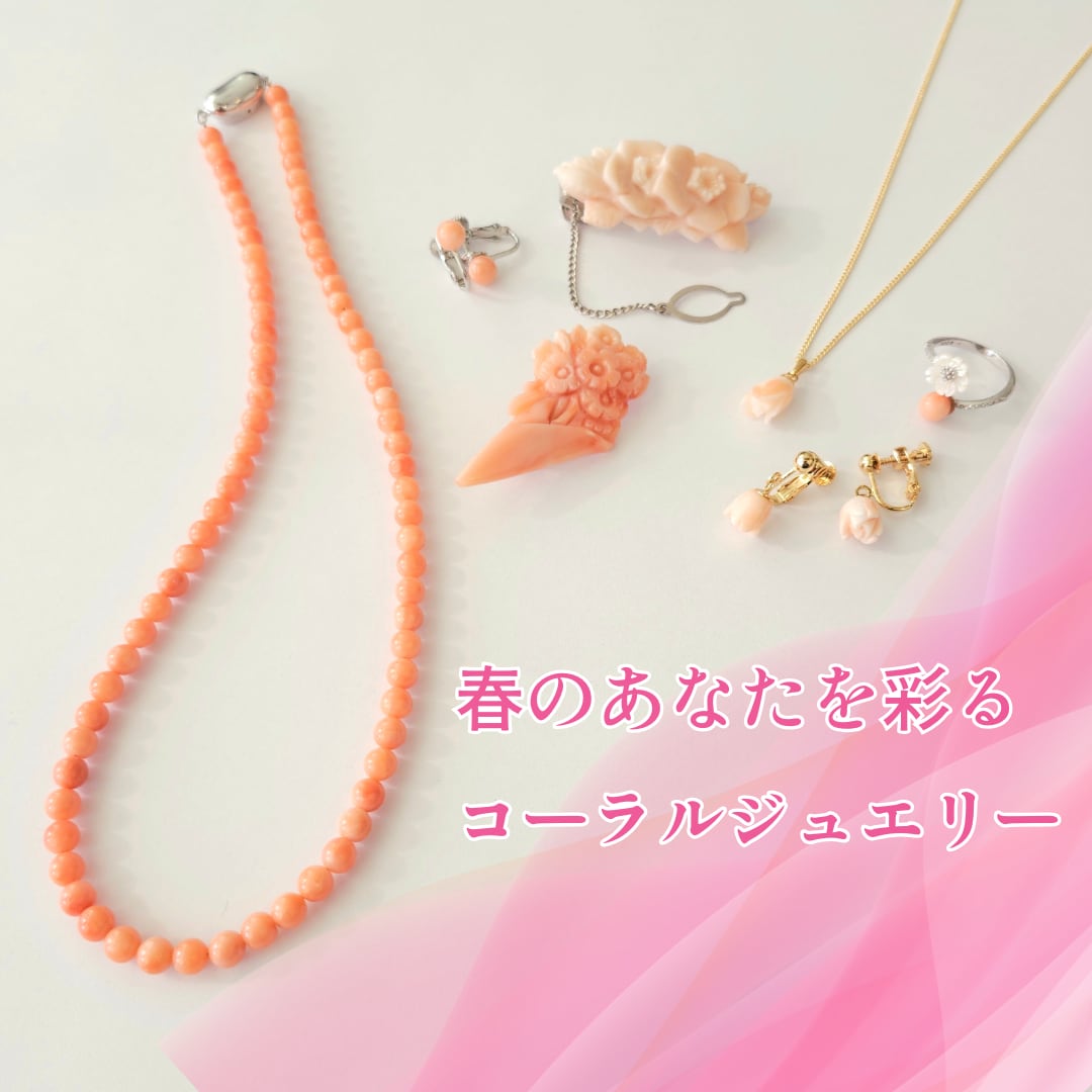 春のお出かけにぜひお使いいただきたいコーラルジュエリーのご紹介です