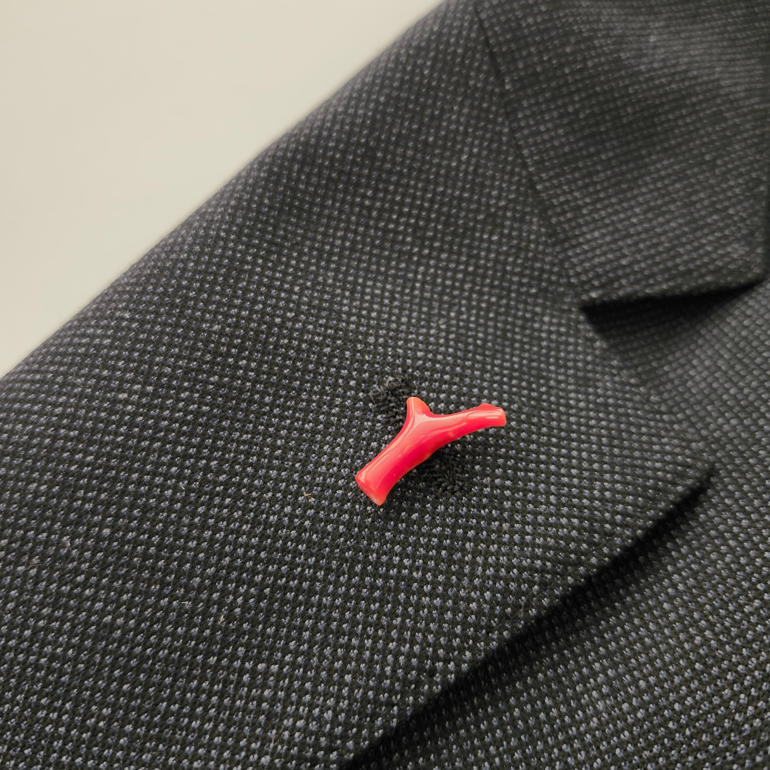ネクタイピンとしてはもちろんジャケットの襟元を飾るラペルピンとしてもお使いいただけるお品です。シンプルな珊瑚の枝はもちろん珊瑚彫刻のものも多くございます。
